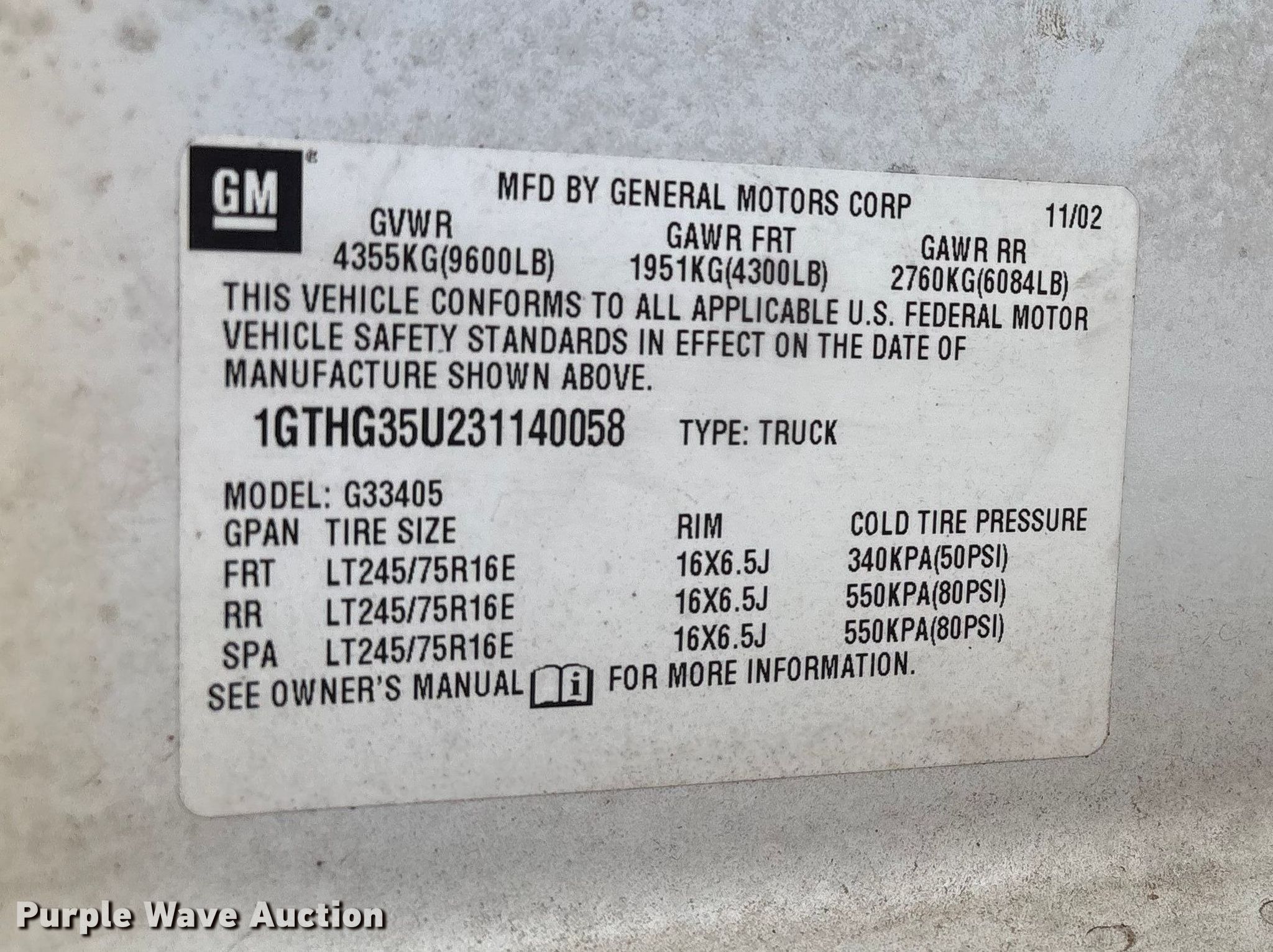 Purple Wave is selling a used 3/4 or 1 Ton Pickup or Van in Oklahoma. This item is a 2003 GMC Savana van with the following: Miles: 59,619 on odometer, VIN: 1GTHG35U231140058