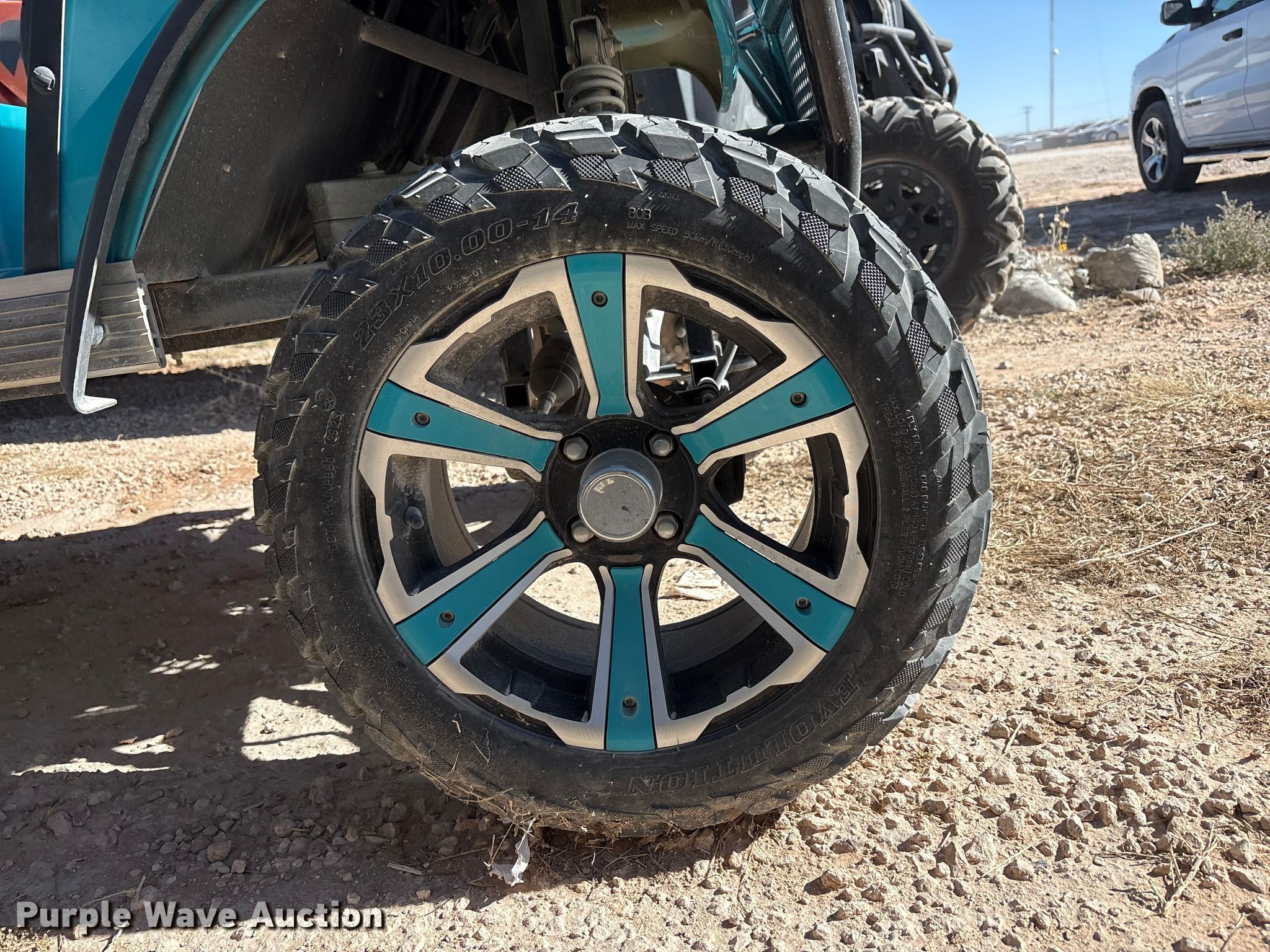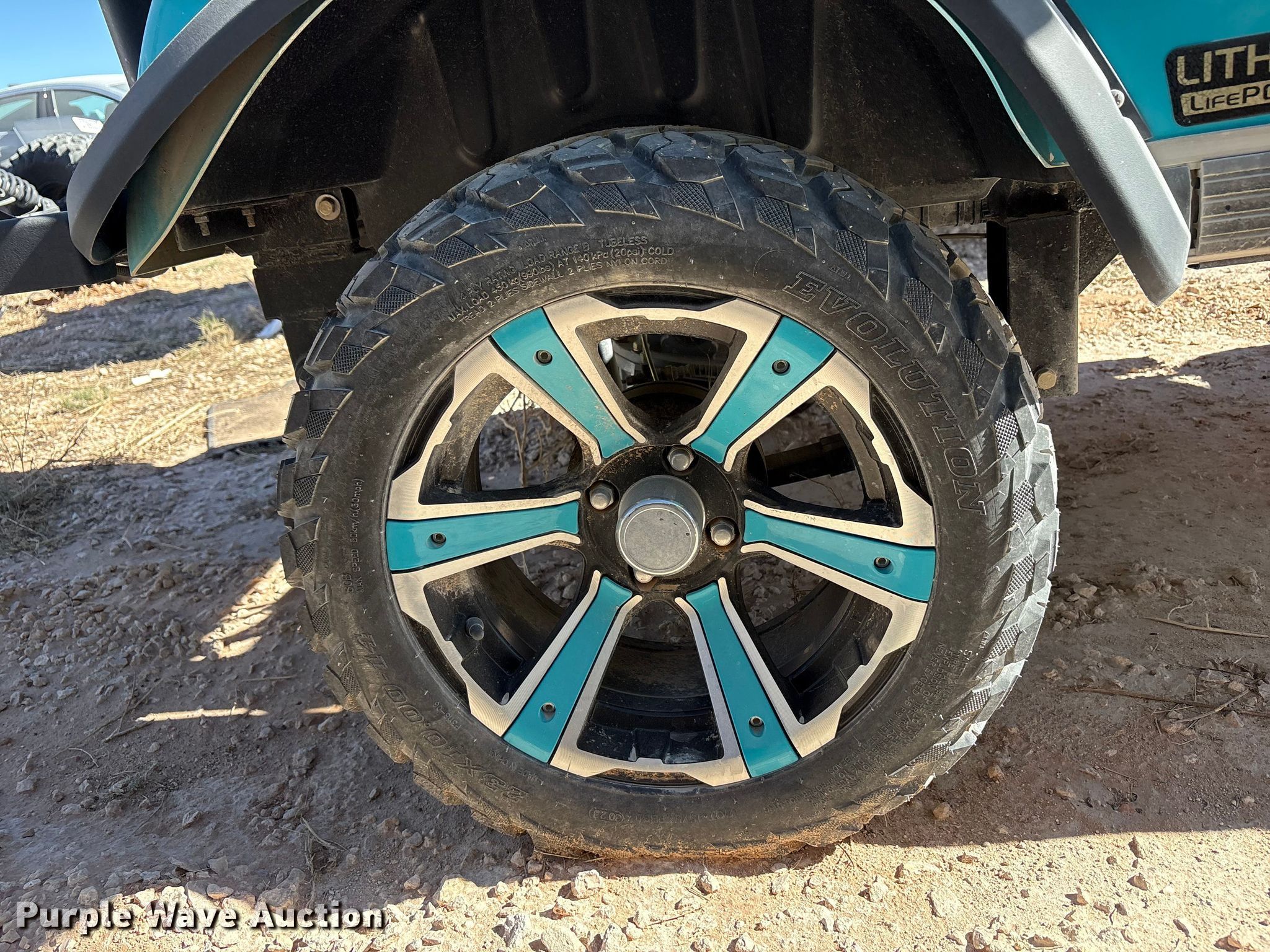 2023 Evolution Lithium LifePO4 golf cart. Miles: Unknown, Serial: EV-BD0732682, Unit #: 71470814. Electric Motor Volts: 51.2. Transmission Automatic. Operators station Canopy. Features Grille guard. Tires Size: 23x10.00-14. Notes Seats missing, Dead battery, Key not included, Tire flat, Unknown operating condition. Repossessed item, stored at a secured facility. Please review REQUIRED REMOVAL INSTRUCTIONS. Lender Owned. 1975 Southwest 860. Andrews, TX 79714