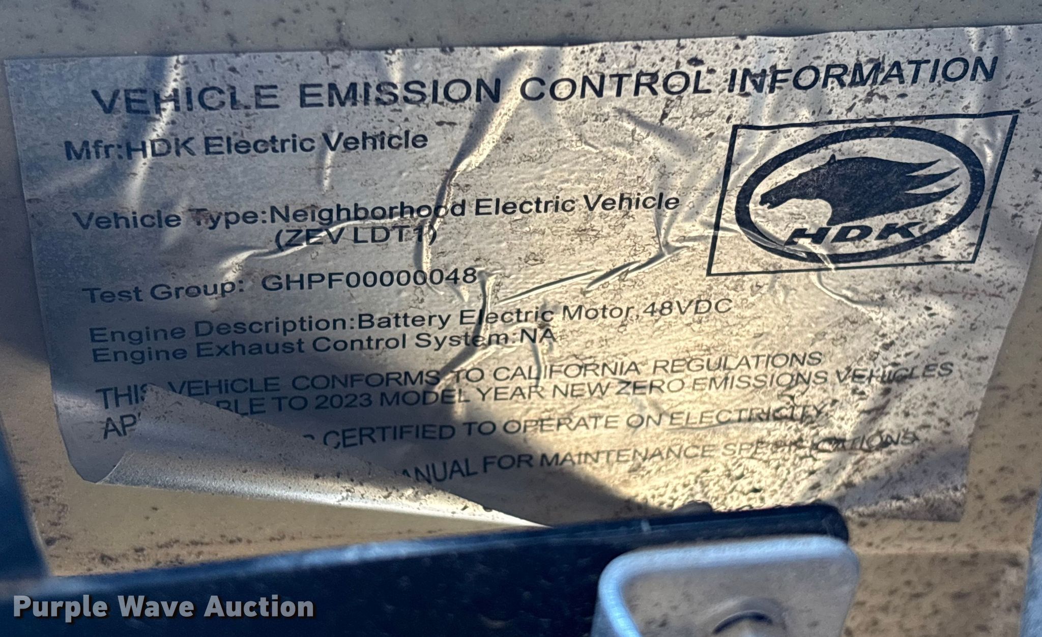 Purple Wave is selling a used Golf Cart in Georgia. This item is a 2023 HDK Evolution golf cart with the following: VIN: 7MZHTB1B0PC000461, Unit #: 66687194