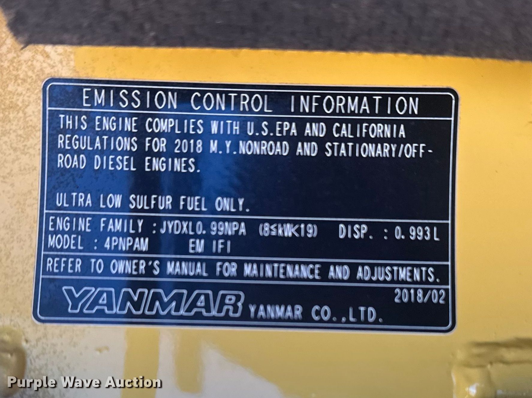 Purple Wave is selling a used Mini Excavator in Oklahoma. This item is a 2018 Yanmar ViO17-A mini excavator with the following: Hours: 2,195 on meter, Serial: YMRVIO17JJYJAF385