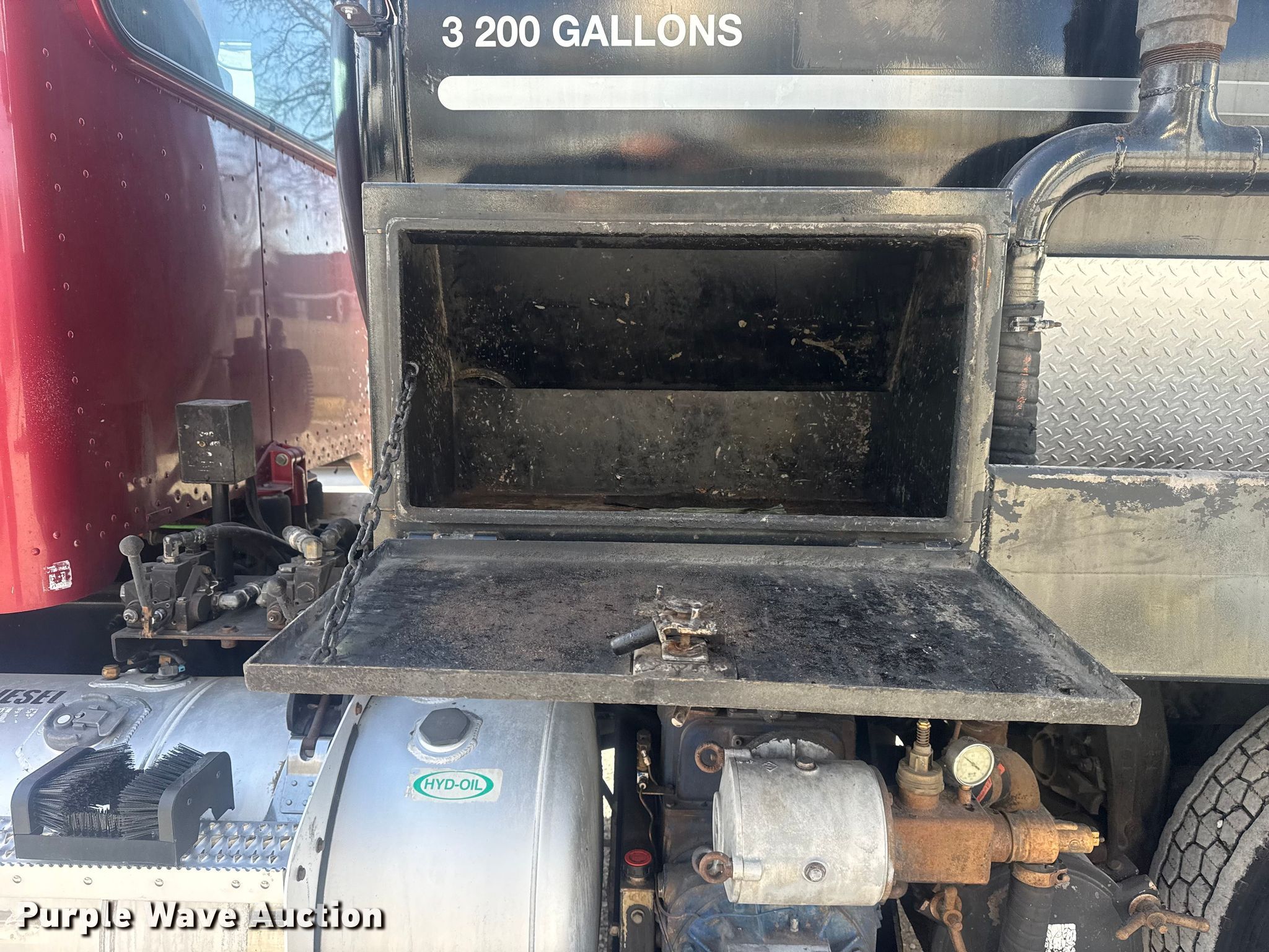 2011 Peterbilt 367 vacuum truck. Miles: 480,120 on odometer, Hours: 33,820 on meter, VIN: 1NPTL40X3BD114703. Engine Cummins ISX 455ST, Serial: 79401190, Displacement: 15.0L, Cylinders: 6, Fuel type: Diesel, HP: 455. Transmission Eaton Fuller, Manual, Speed: 10. Chassis Axles: Tandem, Differential lock: Inter-axle, Suspension: Air Dump valves, Brakes: Air, PTO, GVWR: 60,320 lbs. Interior AC, Heat, Heated mirrors, Power windows, Cruise control. Features Bed Tank bed, Length: 13' 10", Width: 96", Capacity: 3,200 gallons, Top hatches: 2, Rear outlet: 4", Vacuum pump Jurop. Tires Size: 11R24.5. Oklahoma title. Title distribution may be delayed up to 14 days from verification of funds. Brooks Grease Service. Tulsa, OK 74115