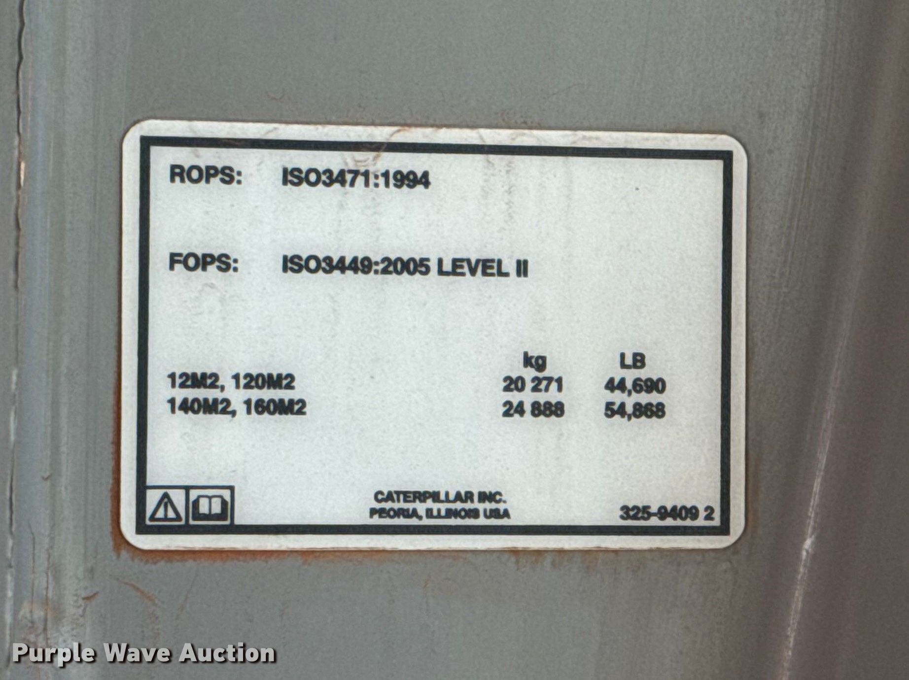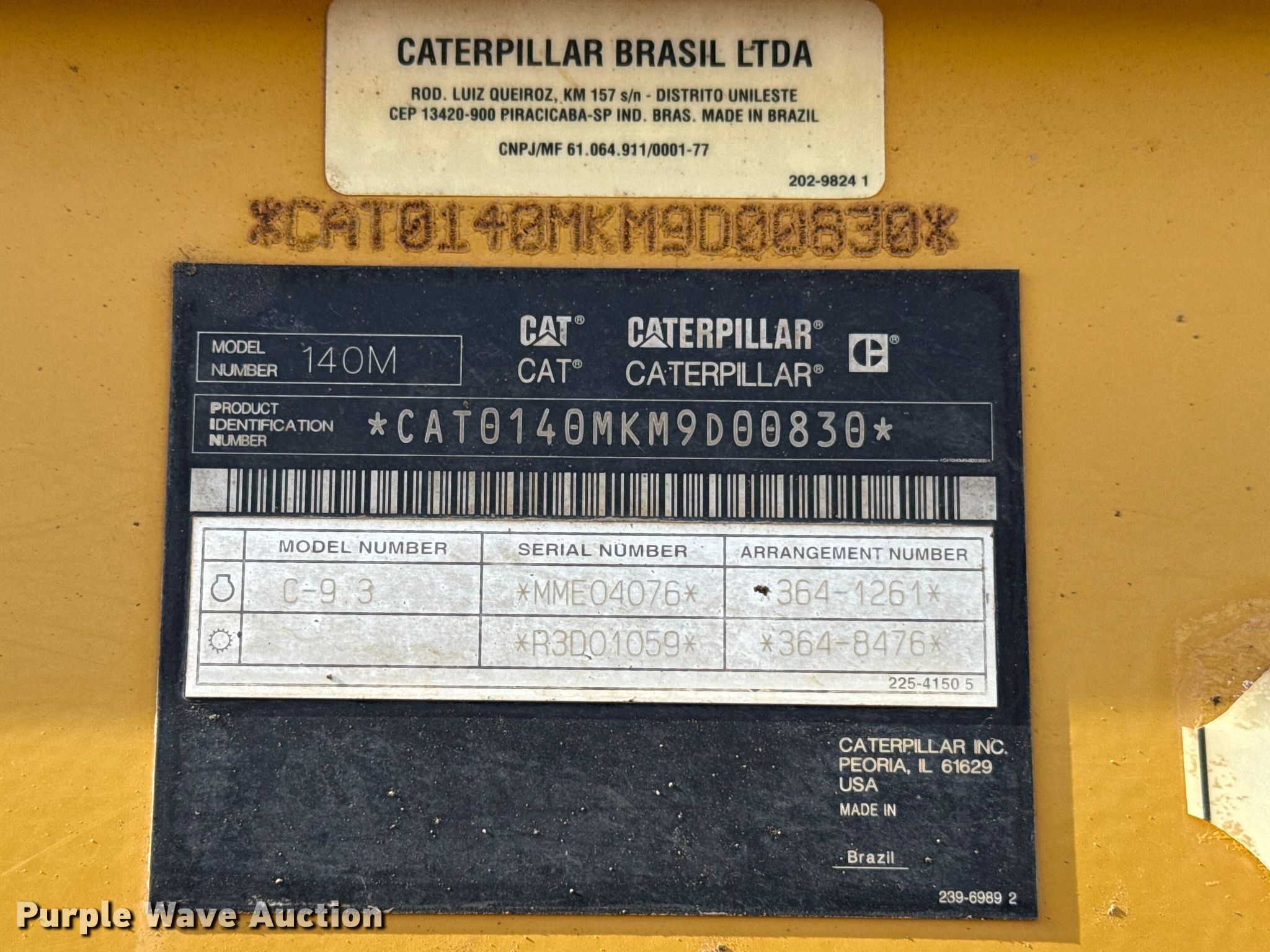Purple Wave is selling a used Motor Grader in Oklahoma. This item is a 2012 Caterpillar 140M2 motor grader with the following: Hours: 13,109 on meter, Serial: CAT0140MKM9D00830
