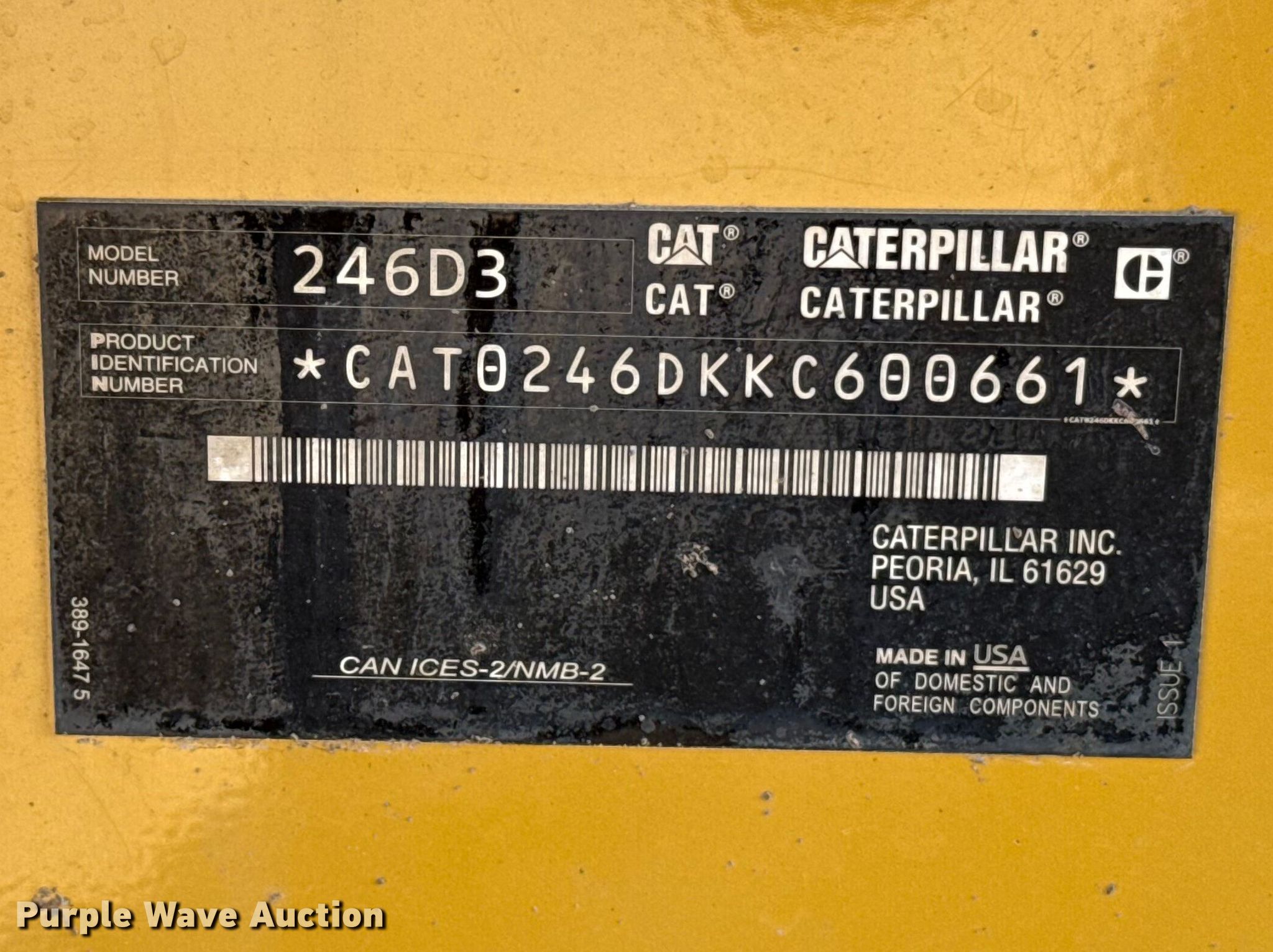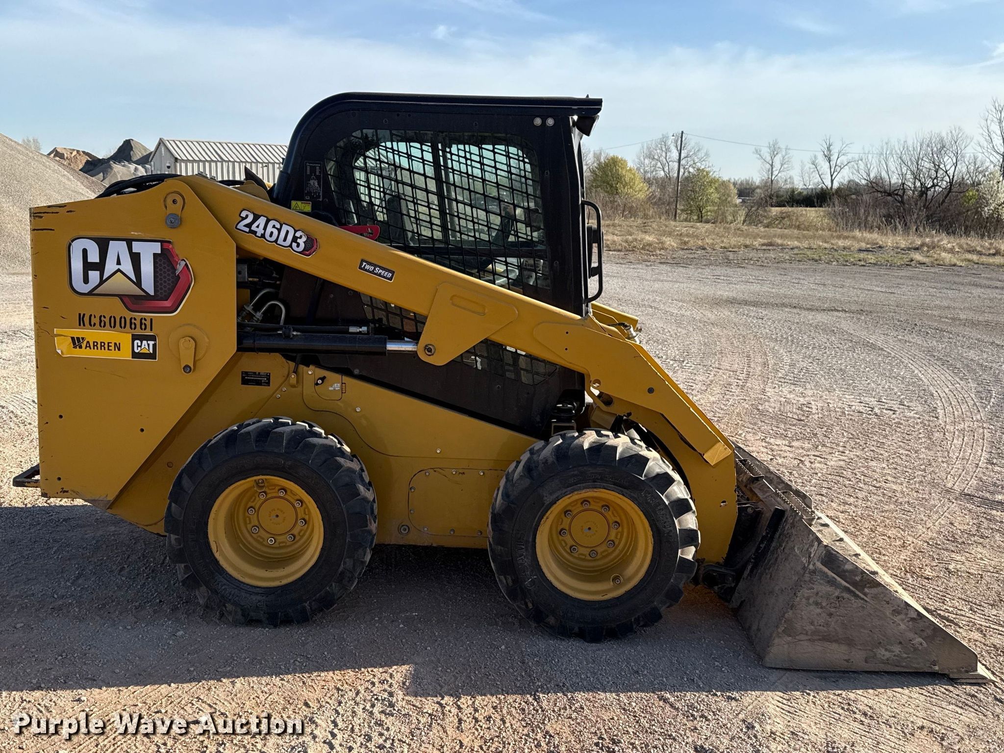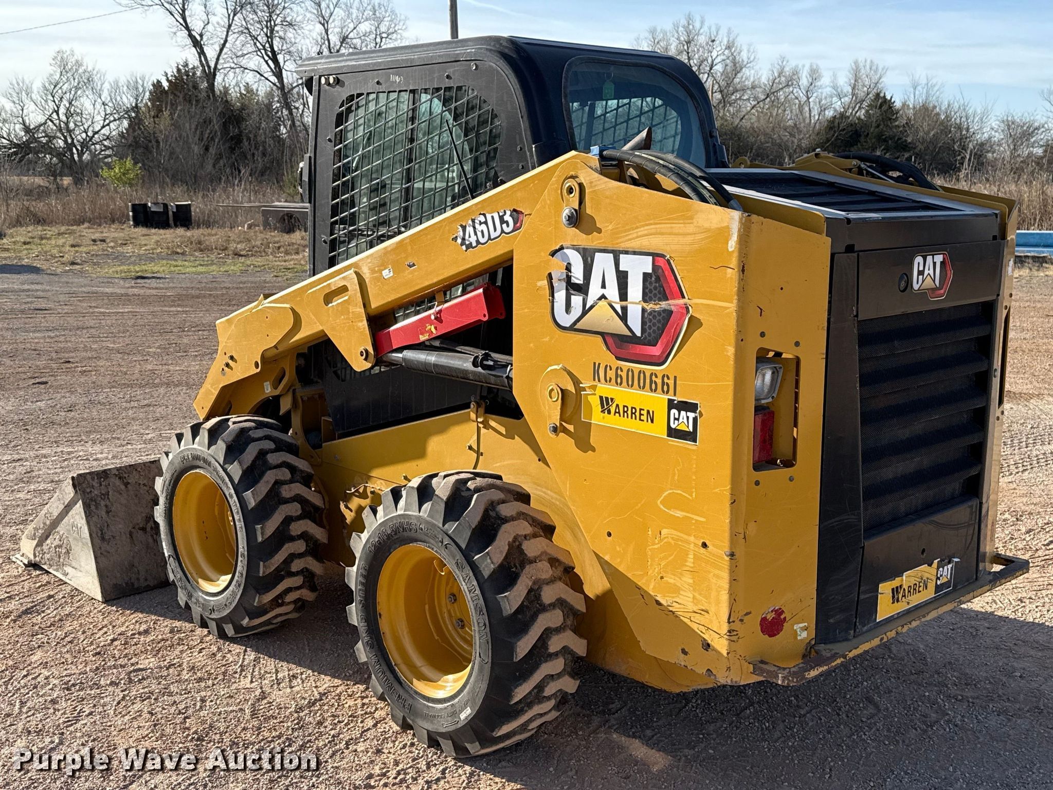 Purple Wave is selling a used Skid Steer Loader in Oklahoma. This item is a 2019 Caterpillar 246D3 skid steer loader with the following: Hours: 3,579 on meter, Serial: CAT0246DKKC600661