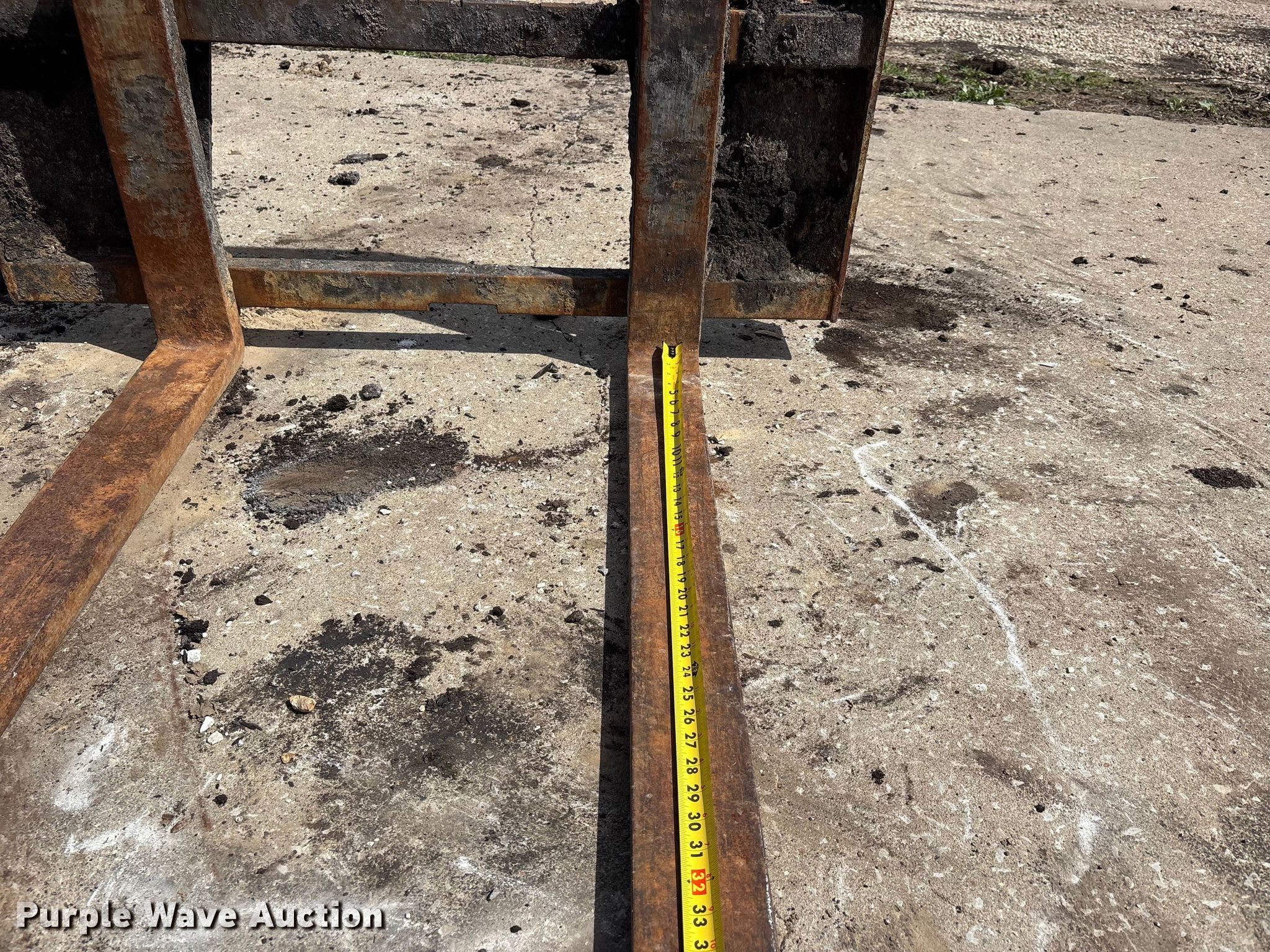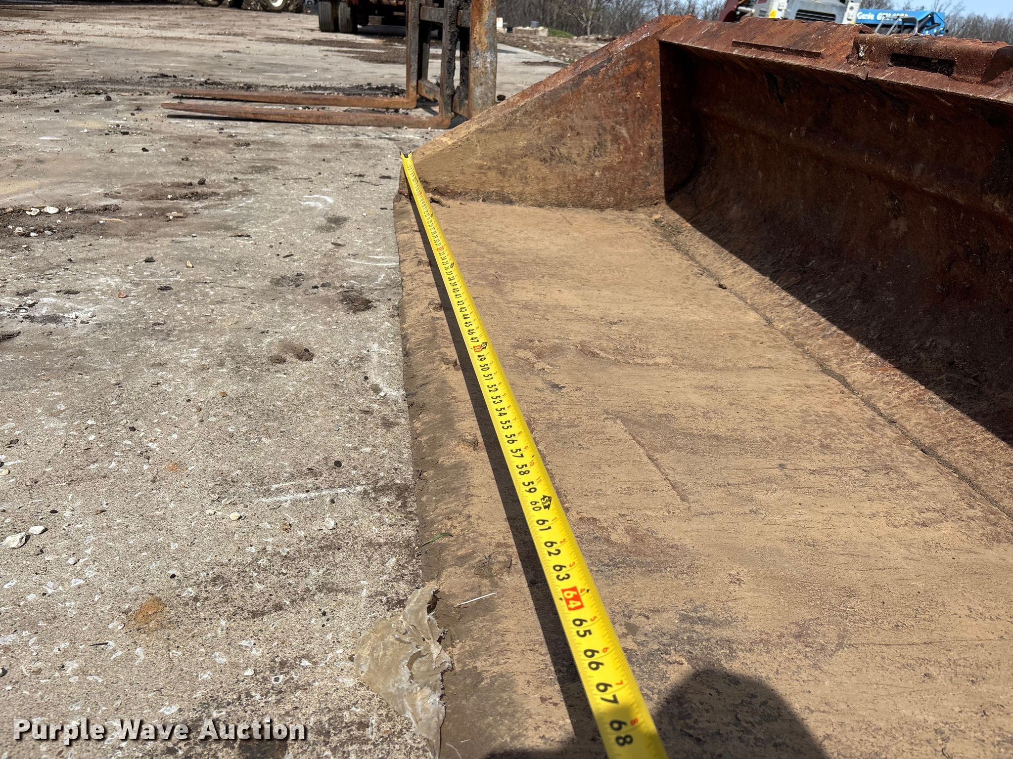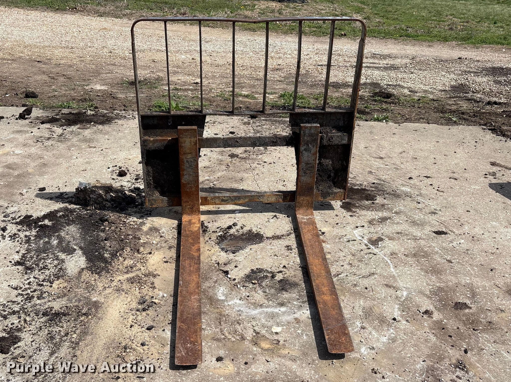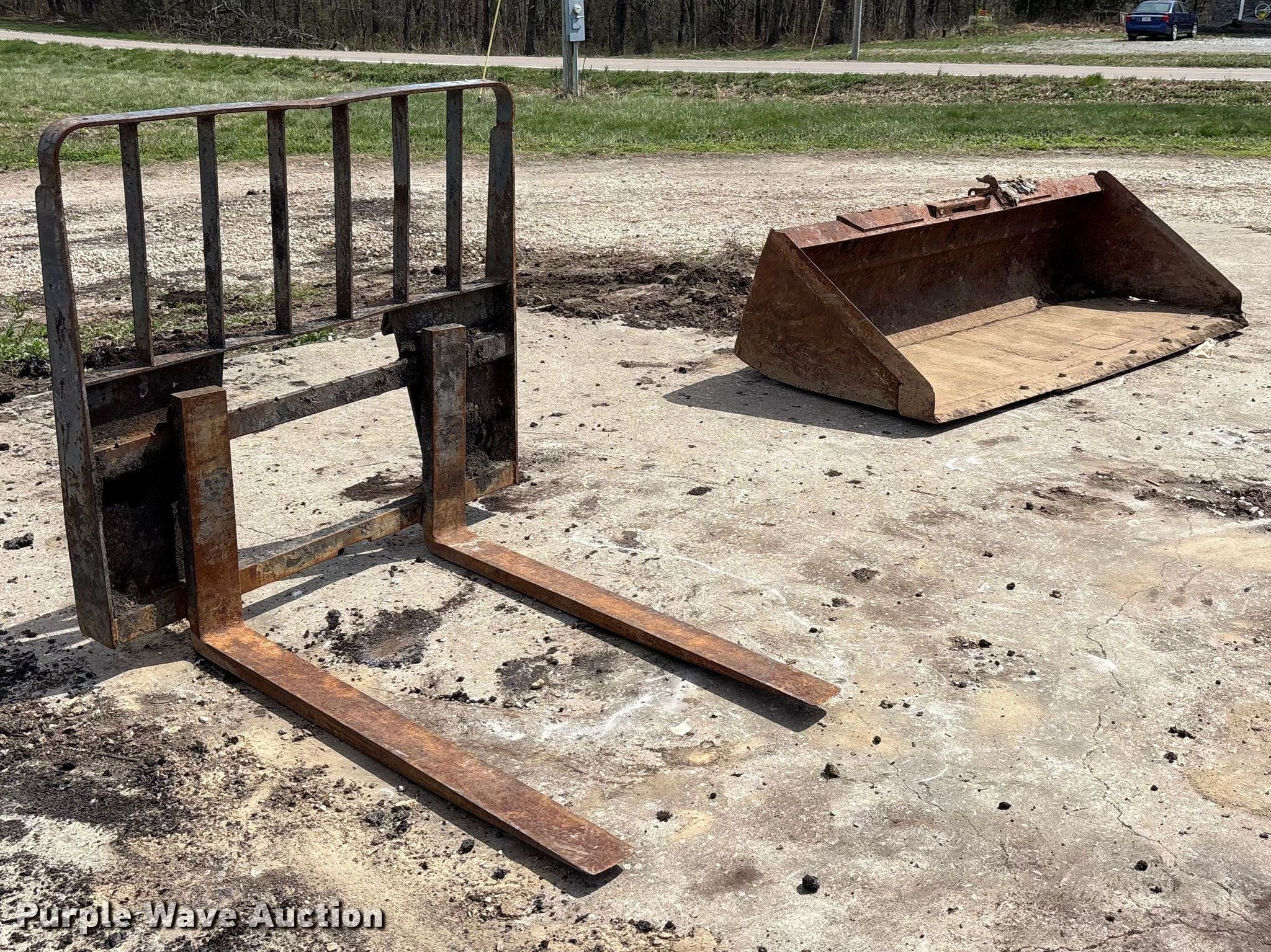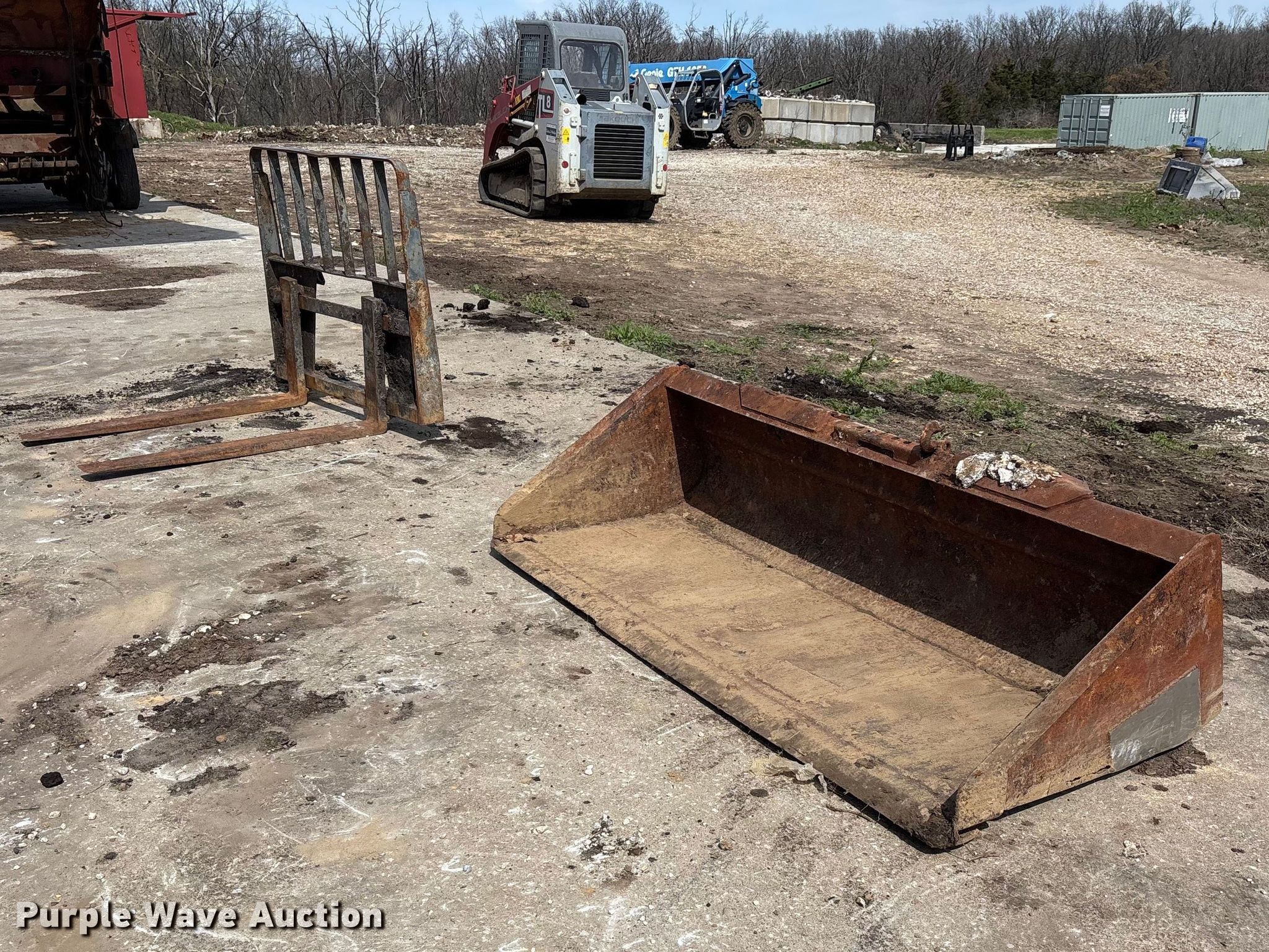 Purple Wave is selling a used Skid Steer Attach. in Missouri. This item is a Skid steer attachments with the following: Bucket, Width: 77", Cutting edge: Bolt-on, Forks, Length: 45"