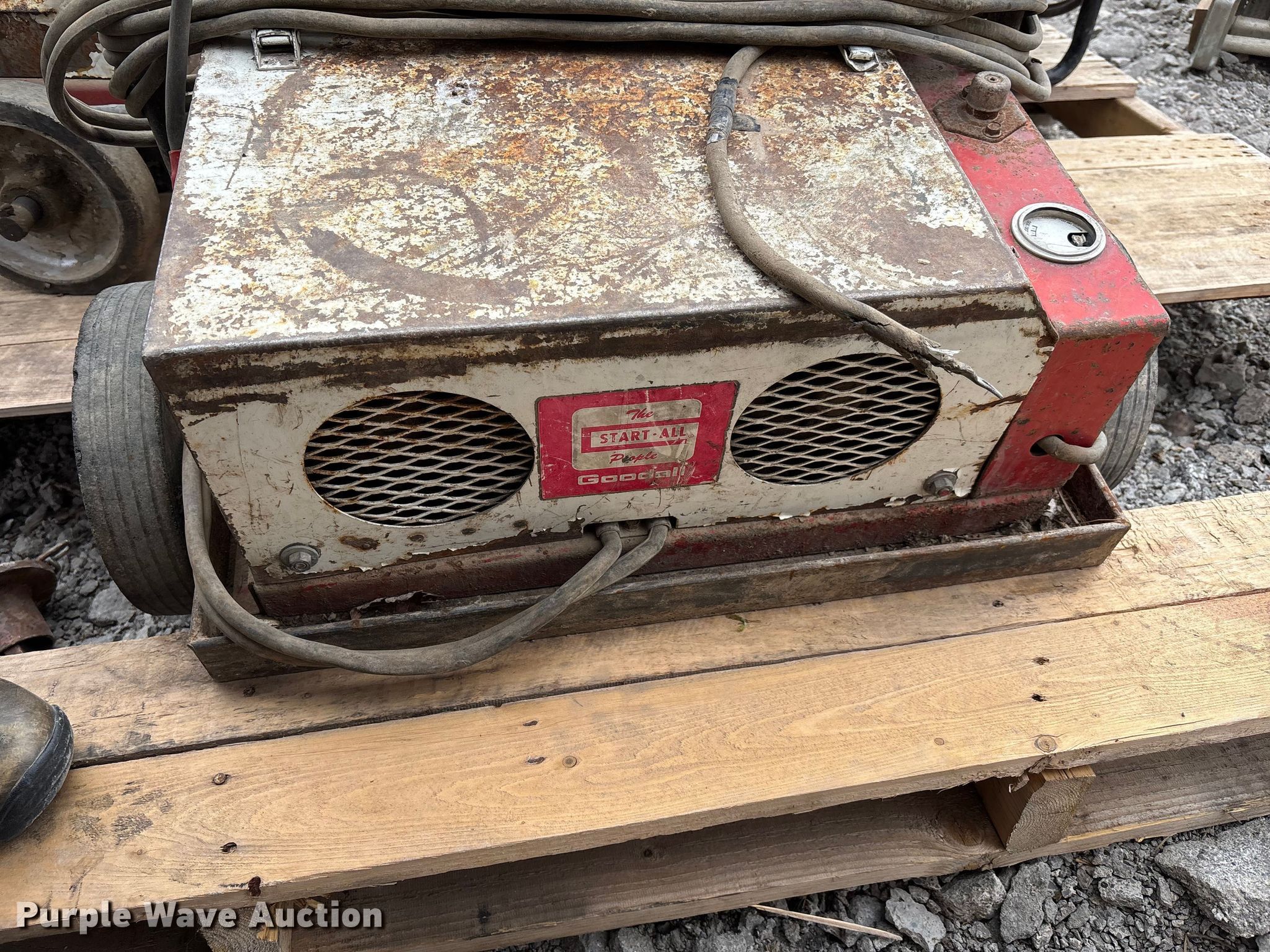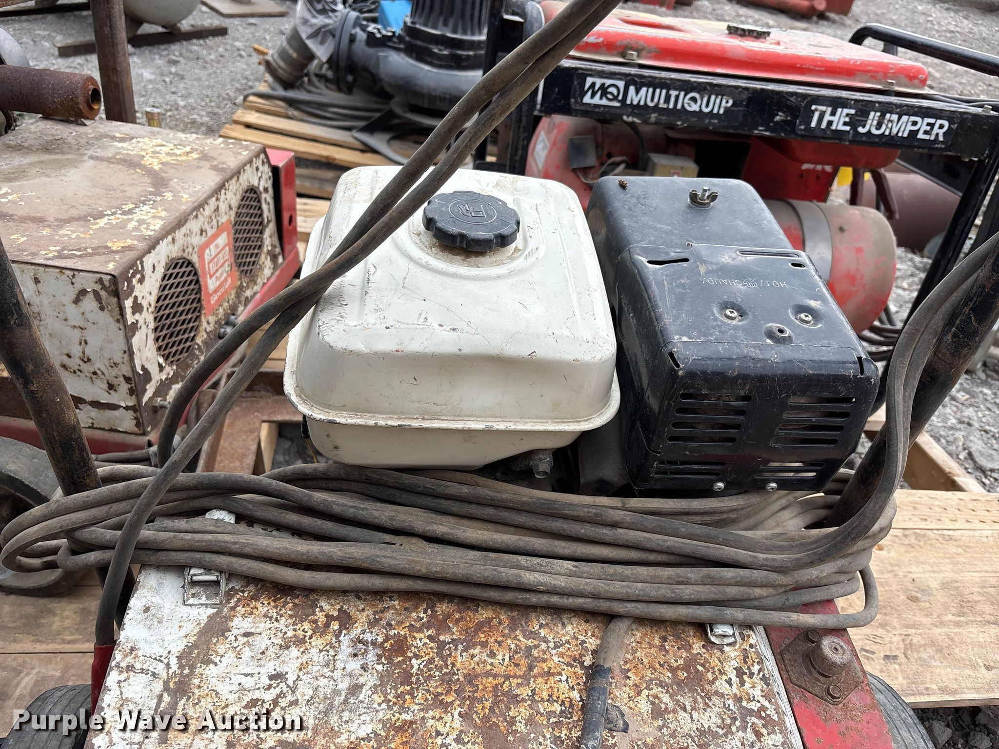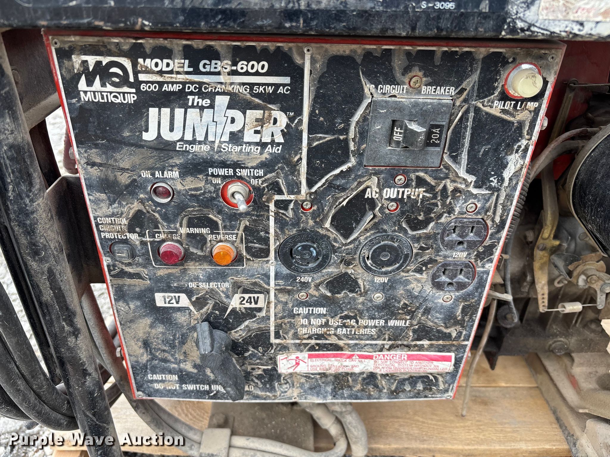 Purple Wave is selling a used Tools in Kansas. This item is a (3) jump packs with the following: (2) Goodall Start-All, Fuel type: Gas, Cables, MultiQuip GBS600 The Jumper, Wisconsin Robin engine, Fuel type: Gas, Cables