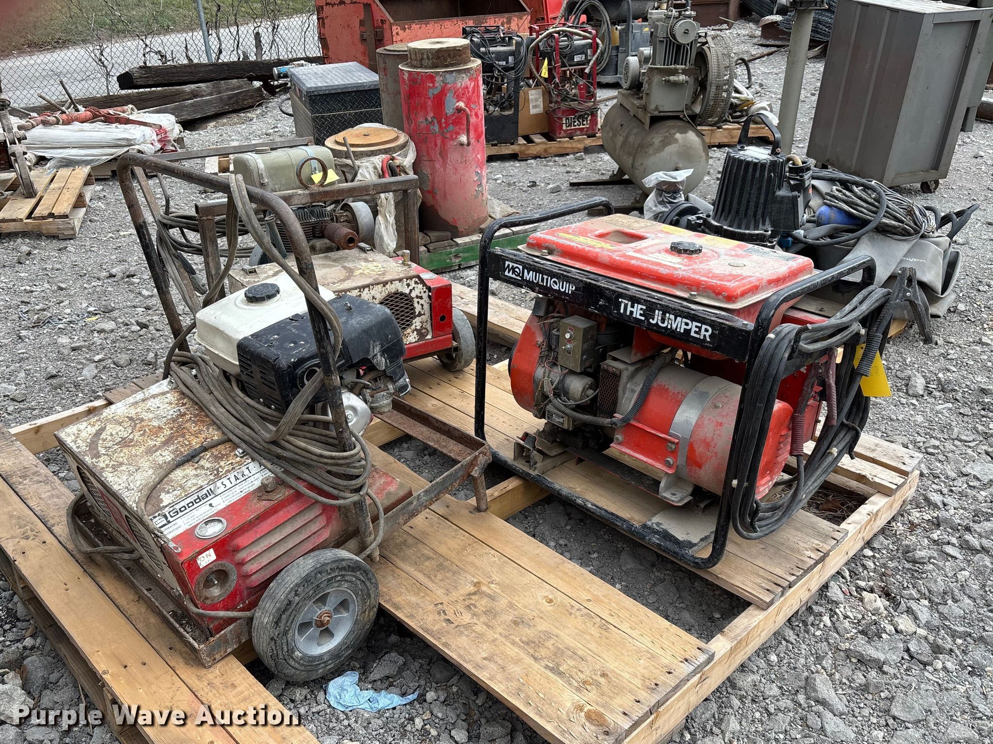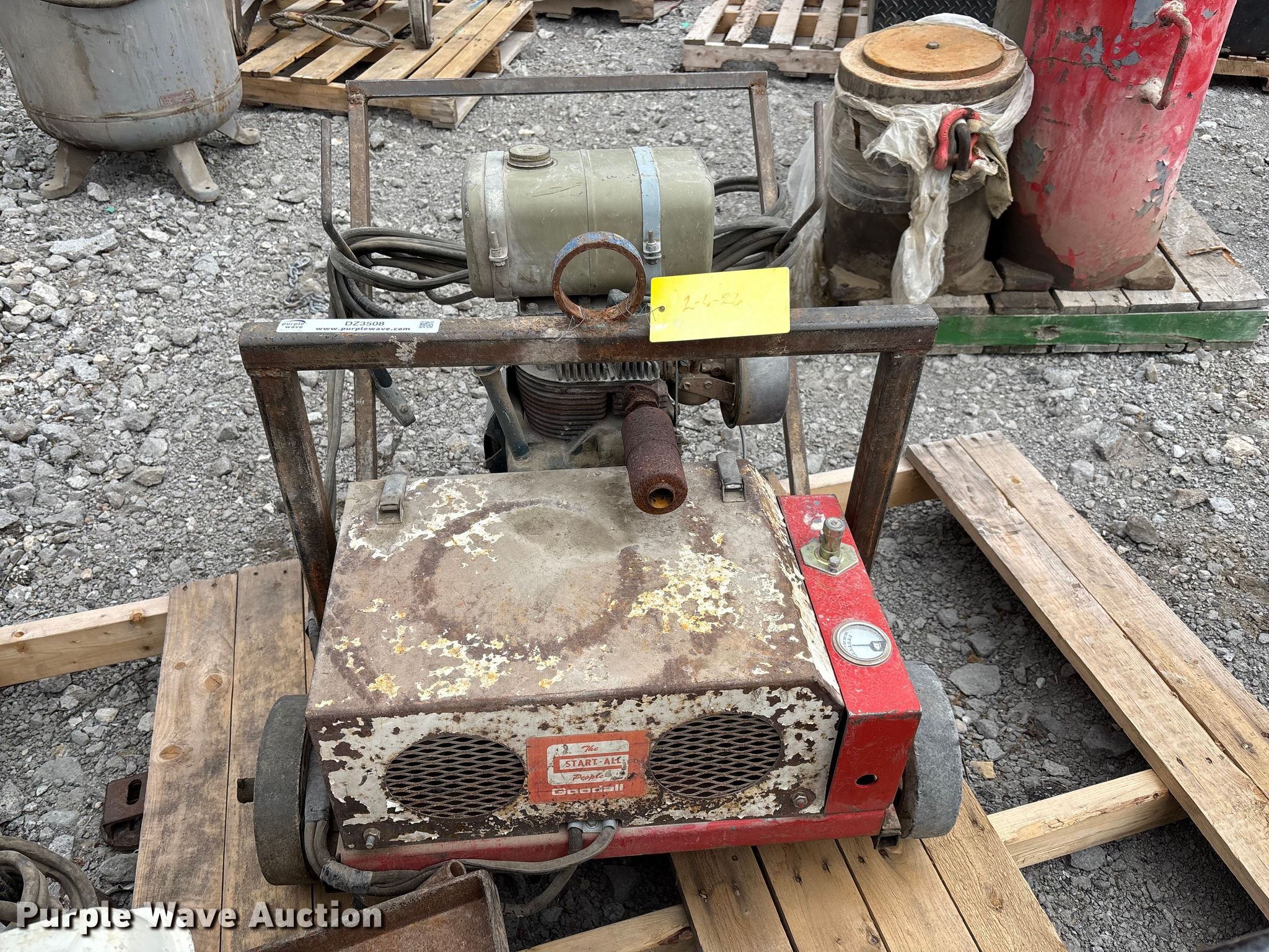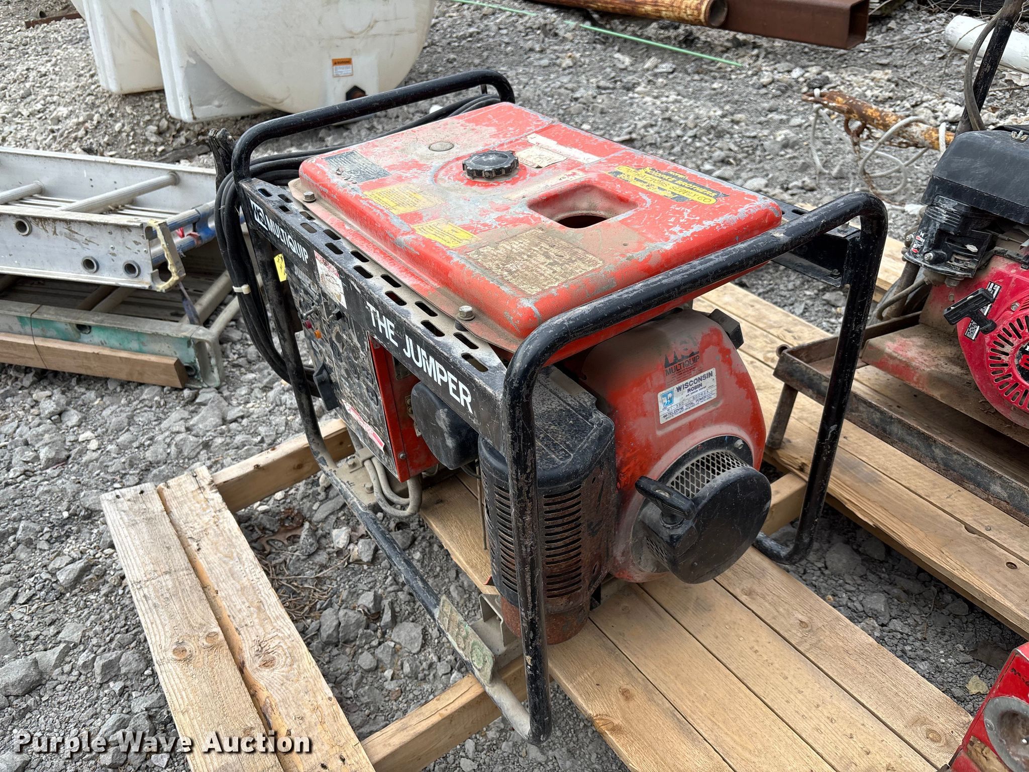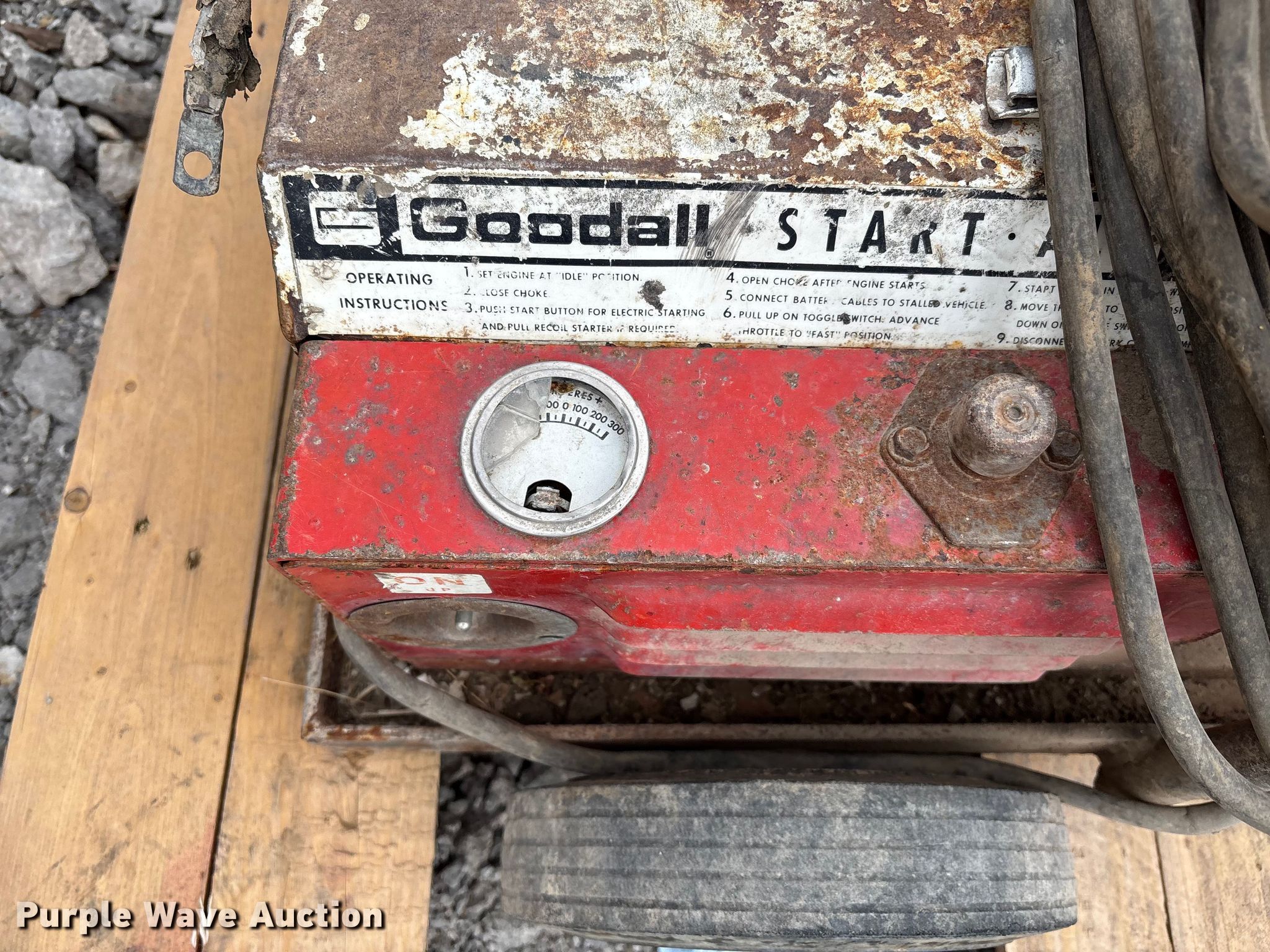 Purple Wave is selling a used Tools in Kansas. This item is a (3) jump packs with the following: (2) Goodall Start-All, Fuel type: Gas, Cables, MultiQuip GBS600 The Jumper, Wisconsin Robin engine, Fuel type: Gas, Cables