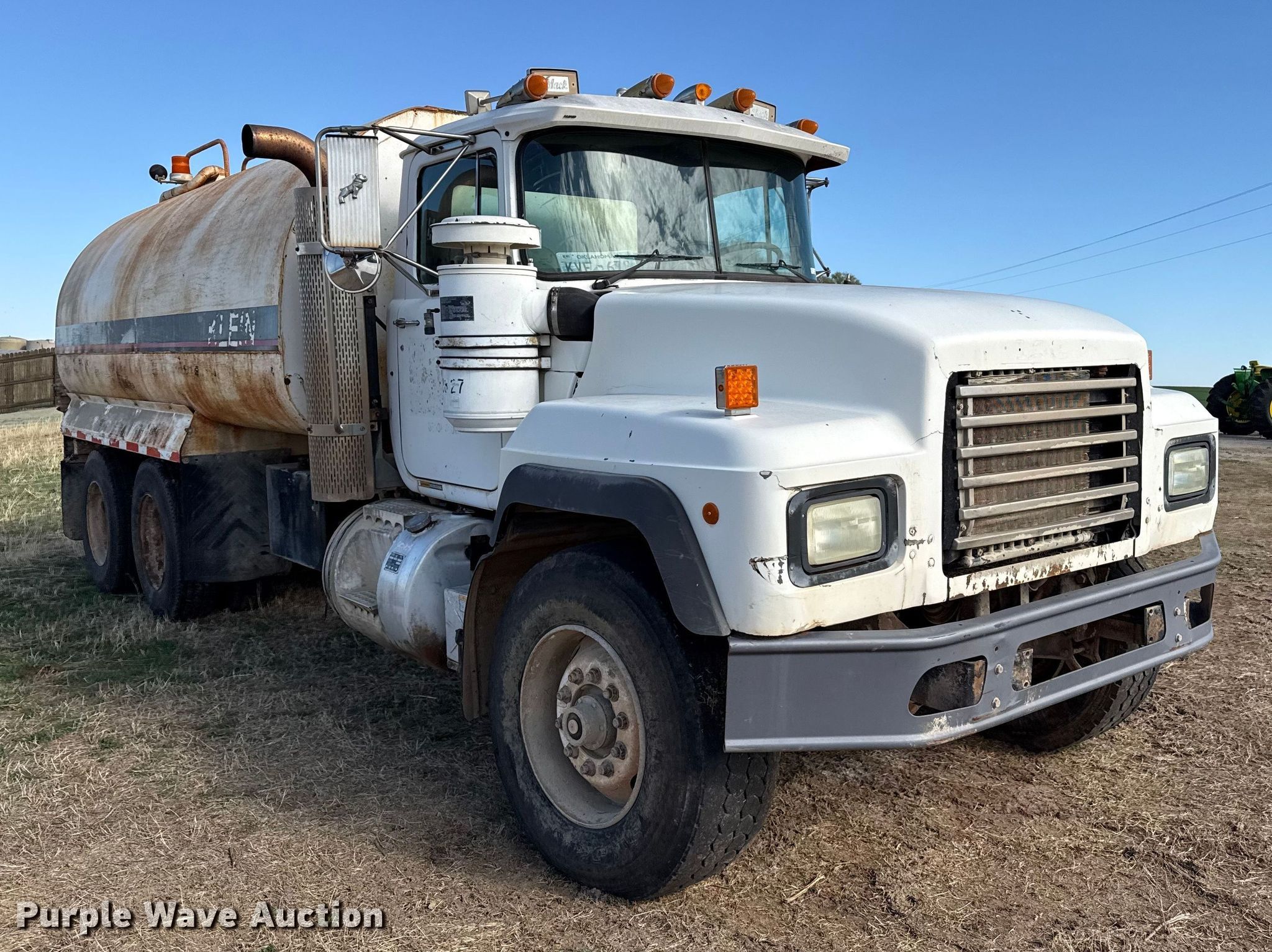 Purple Wave is selling a used Tank Truck or Water Truck in Oklahoma. This item is a 1997 Mack RD690S water truck with the following: Miles: 394,051 on odometer, Hours: 25,956 on meter, VIN: 1M2P264C9VM023031