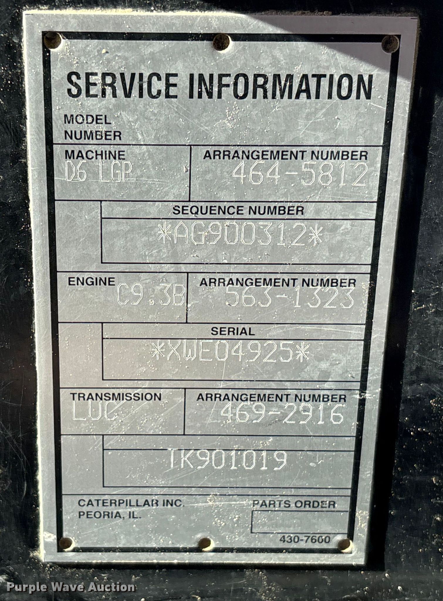 2020 Caterpillar D6 LGP dozer. Hours: 5,270 on meter, Serial: CAT000D6CAG900312. Engine Caterpillar C9.3, Displacement: 9.3L, Cylinders: 6, Fuel type: Diesel. Transmission Hydrostatic. Operators station Enclosed cab, AC, Heat, Backup camera, Electronic Monitoring System panel, Steering: Joystick. Features Auxiliary hydraulics, Dozer blade Blade type: 6-way, Blade shape: Straight, Width: 14'. Tracks Width: 36", Grouser pads: Single, Bottom rollers: 7, Track guards. Mustang CAT. Houston, TX 77040