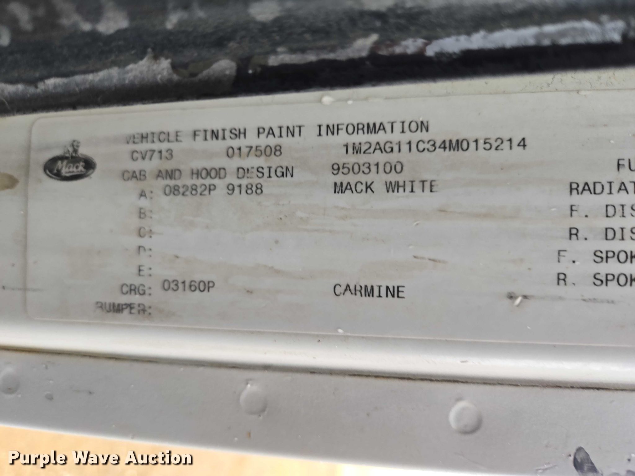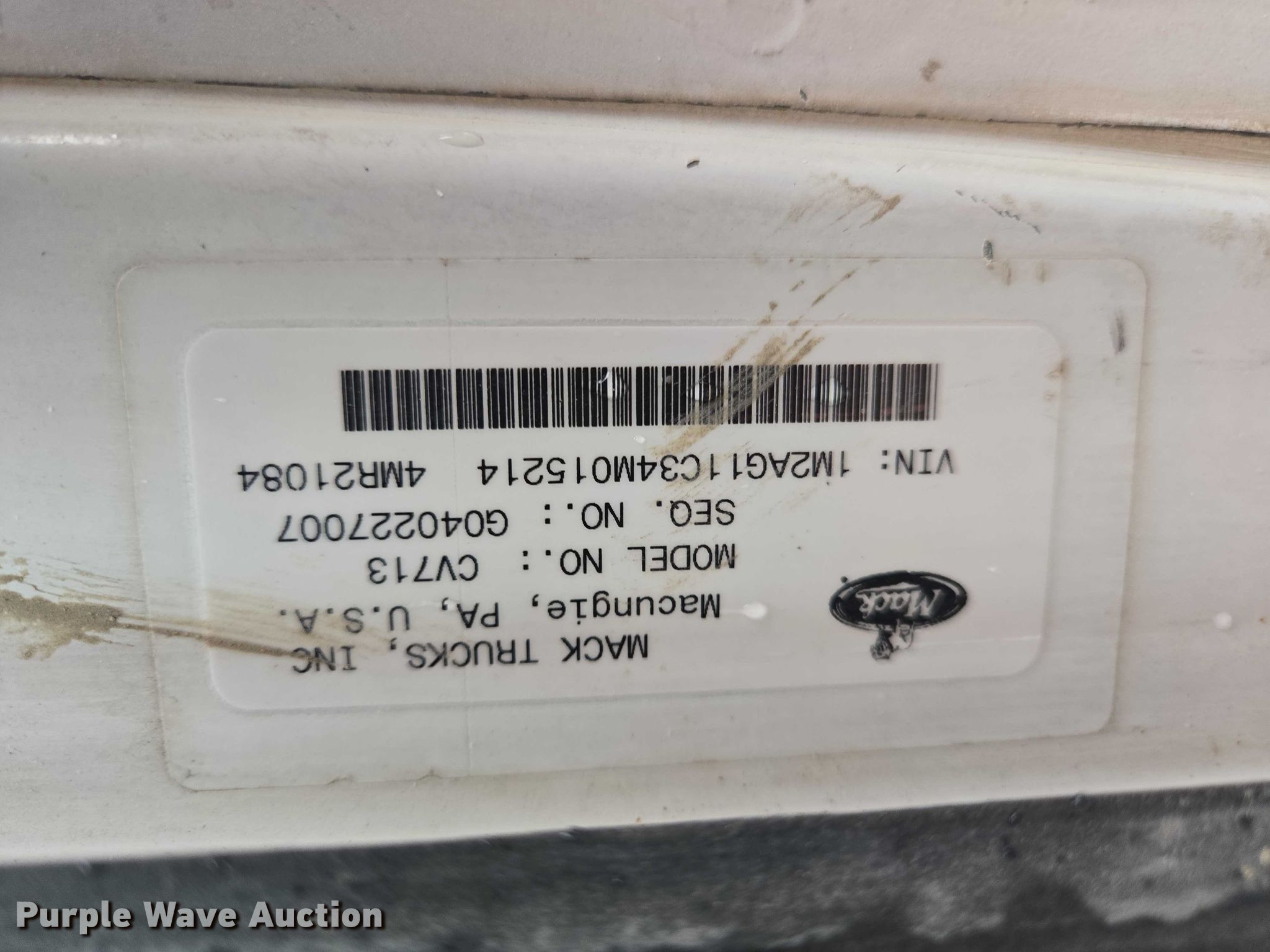 Take a look at this used 2004 Mack Granite CV713 ready mix truck being sold on April 23rd, 2026 in the Thursday April 23 Construction Equipment Auction made by Mack. Take a look at all of the item information below or take a look at similar auctions for Construction Trucks.