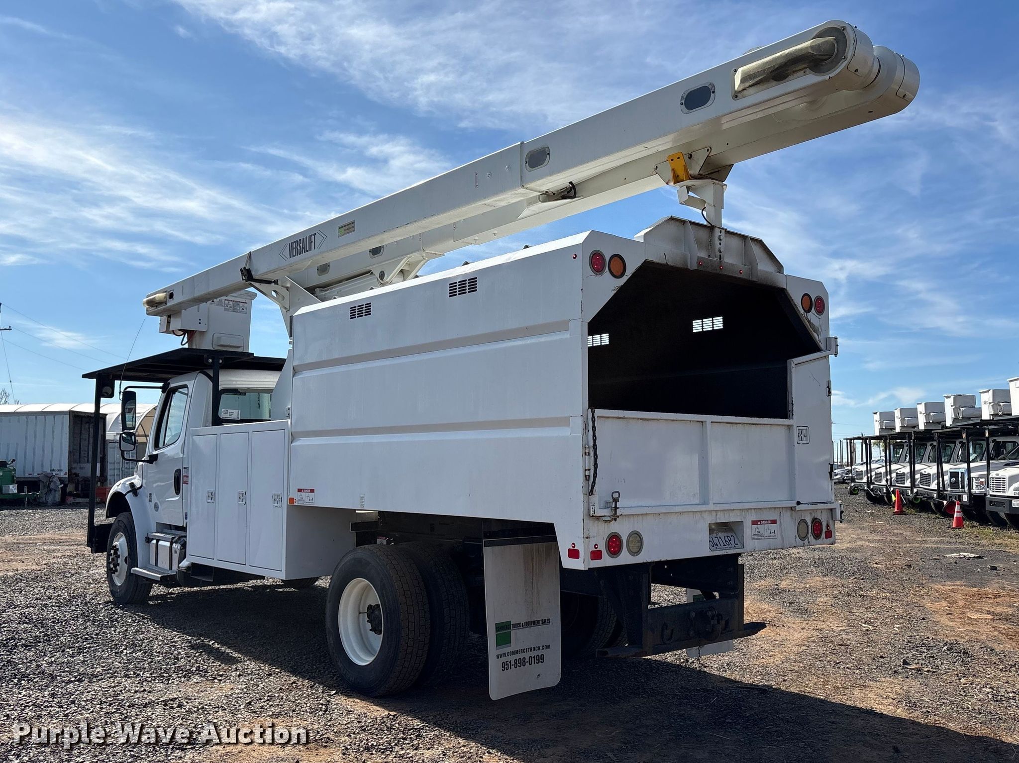 2018 Freightliner M2 forestry bucket truck. Miles: 22,185 on odometer, Hours: 2,923 on meter, VIN: 3ALACXFCXJDJX4046. Engine Cummins B6.7, Displacement: 6.7L, Cylinders: 6, Fuel type: Diesel. Transmission Eaton Fuller FS-6406A, Manual, Speed: 6. Chassis Axles: Single, Suspension: Spring, Brakes: Air, PTO, GVWR: 33,000 lbs. Interior AC, Heat, Heated mirrors, Cruise control. Features Bed Dump bed, Serial: 245-18-10949L, Length: 10' 10", Width: 8', Height: 12' 6", Boom 2017 VERSALIFT VO270EREV-03, Serial: VT170023, Boom length: 50', Mast height: 70', Maximum lift capacity: 350 lbs, Maximum lift height: 75', Boom type: Articulating, Insulated, Telescopic, Man basket, Boom controls Lower, Basket.. Tires Size: 11R22.5. Buyer responsible for all aspects of state emissions compliance. California title. Title distribution may be delayed up to 14 days from verification of funds. Greentek Fleet Liquidation. Oroville, CA 95965