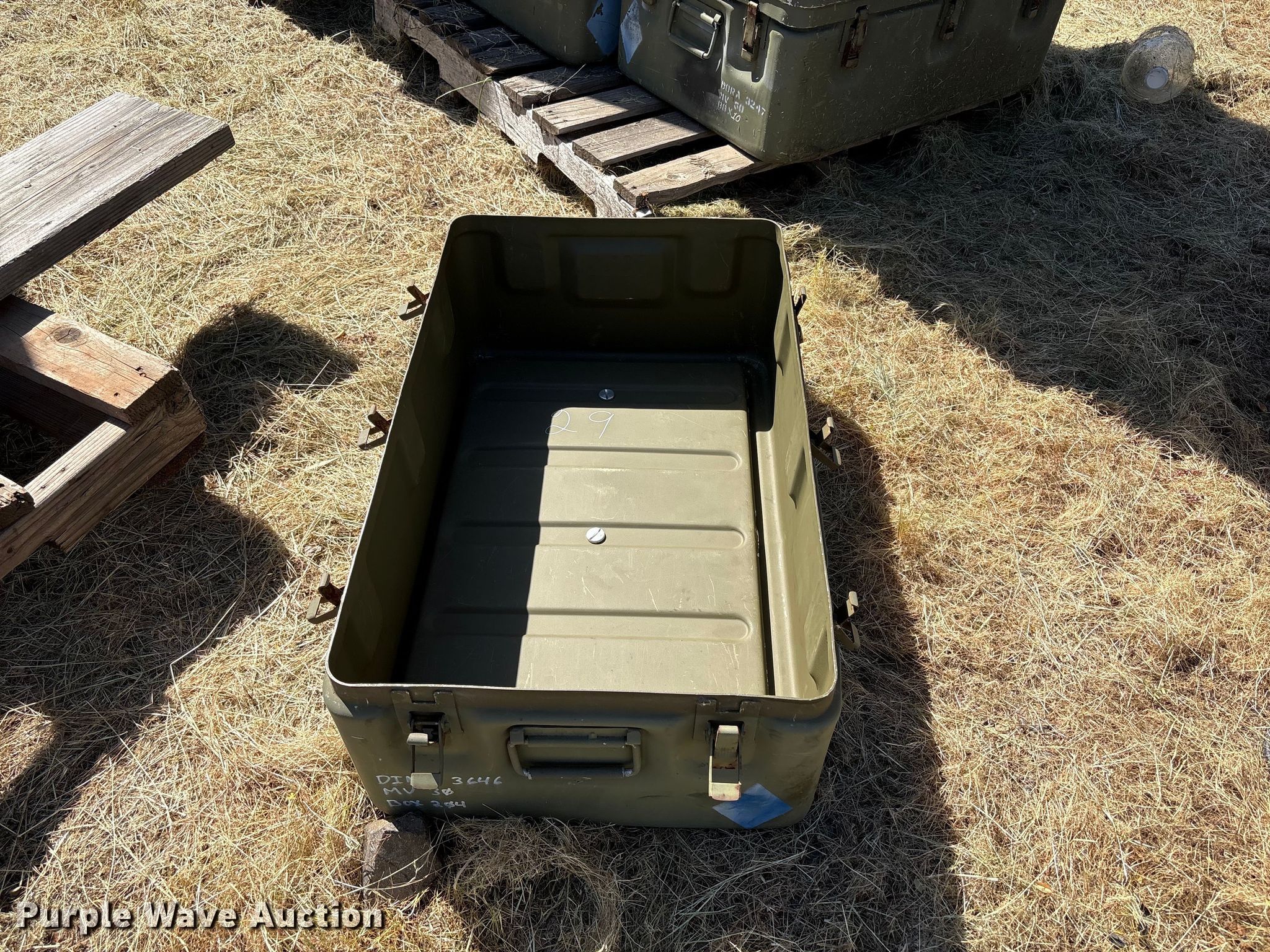 (3) pallets of storage containers | Thursday April 23 Construction Equipment Auction