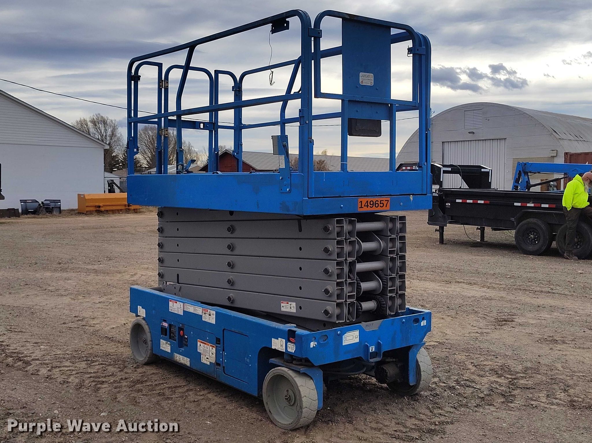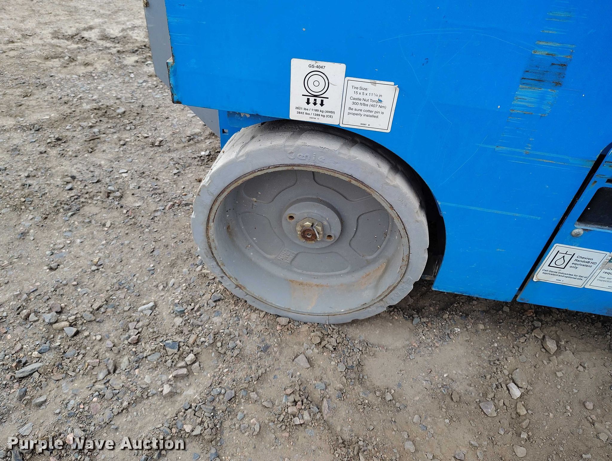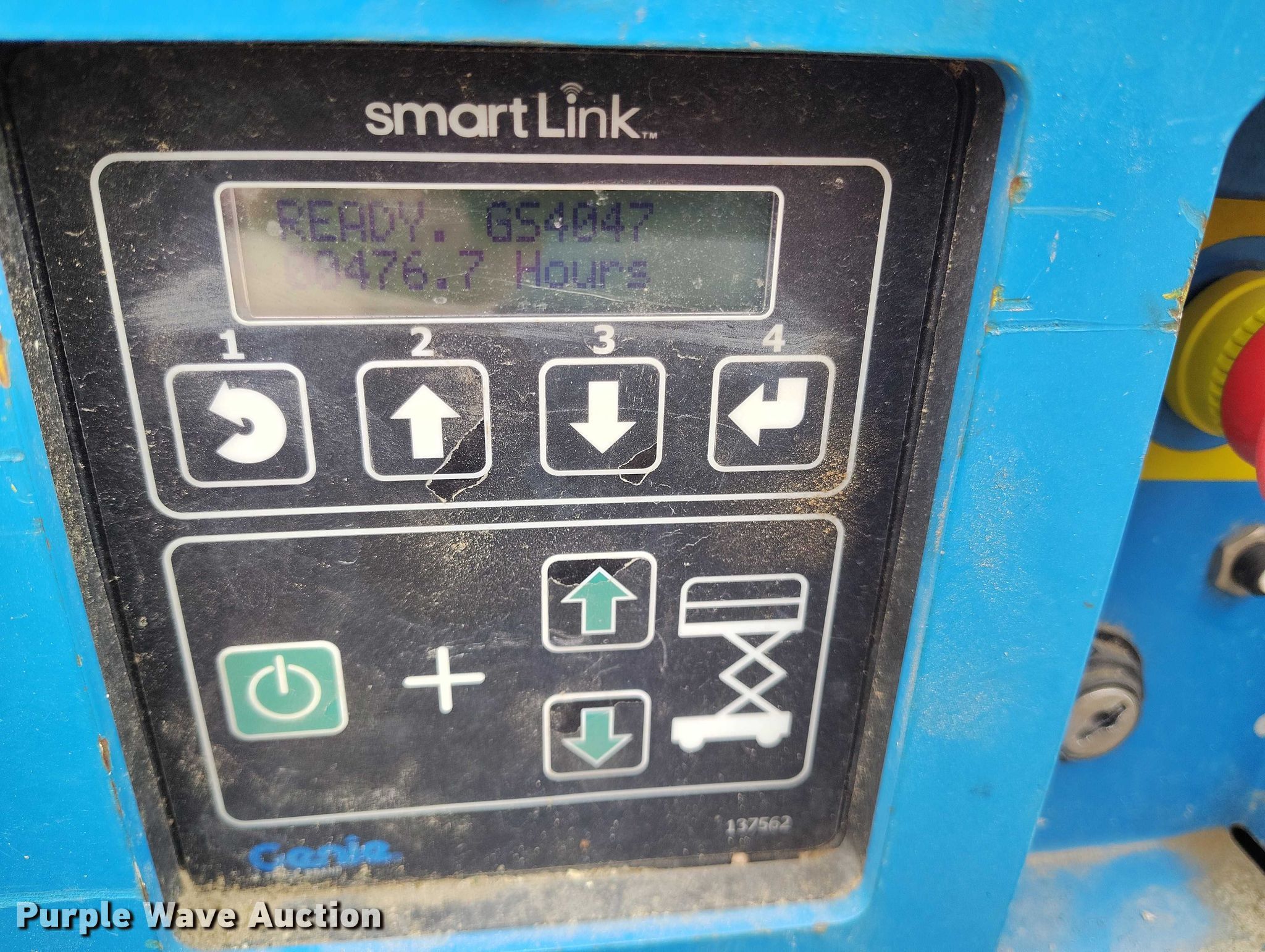 Purple Wave is selling a used Scissor or Vertical Lift in Wyoming. This item is a Genie GS4047 scissor lift with the following: Hours: 477 on meter, Serial: GS4715D-1246