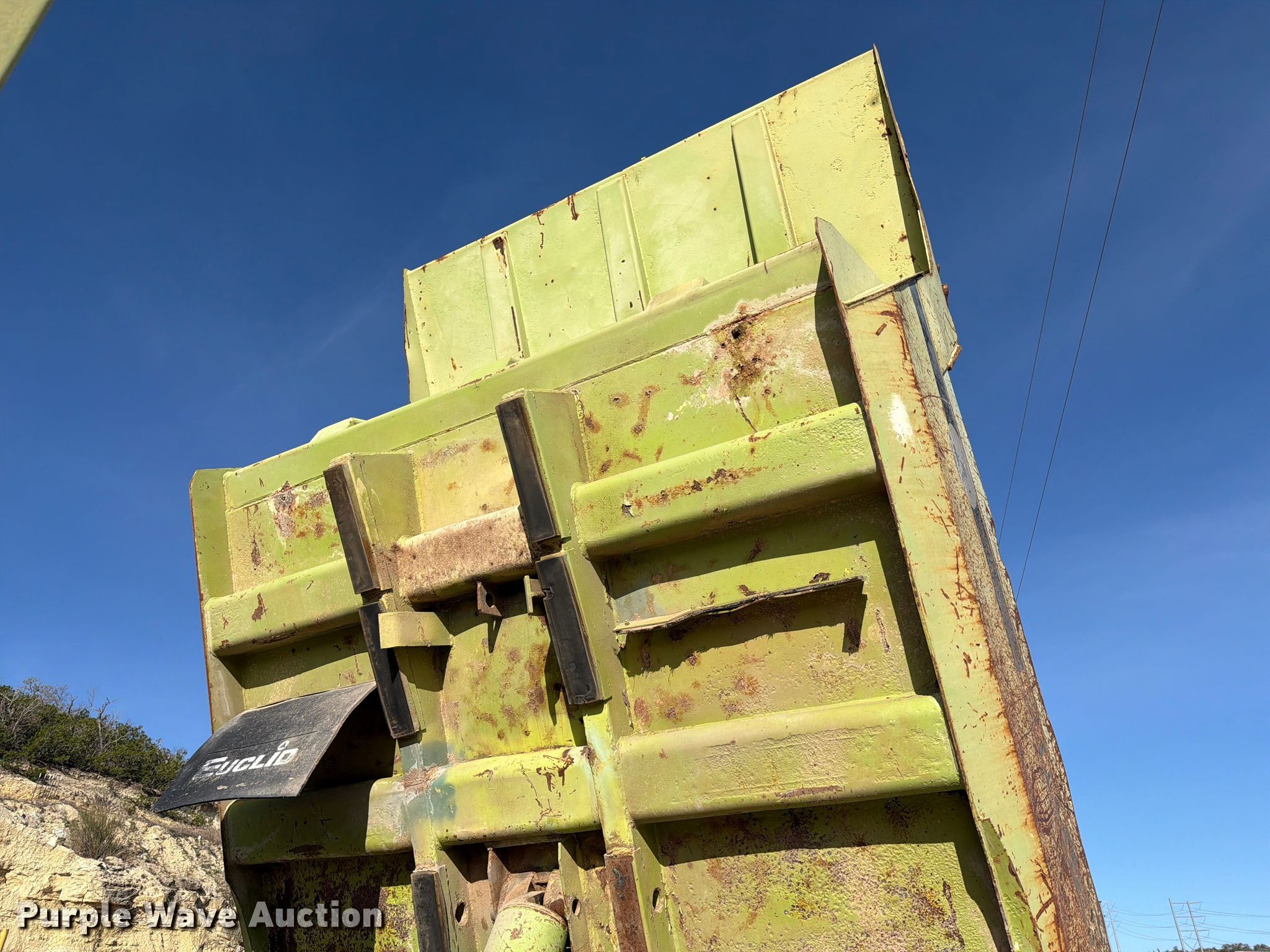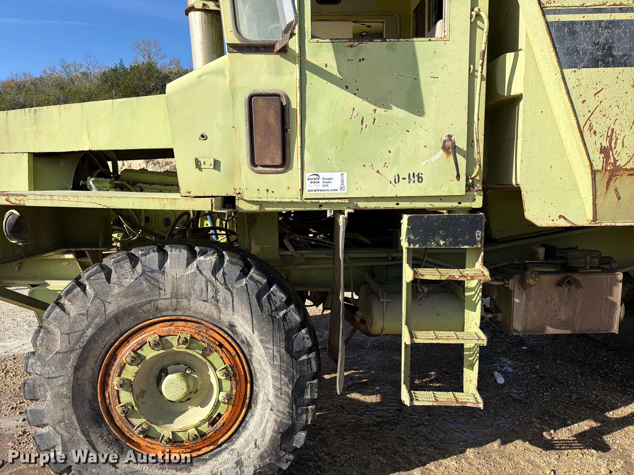 Euclid 215FD haul truck. Hours: Unknown, Serial: 68544. Engine Detroit Diesel, Cylinders: 6, Fuel type: Diesel. Transmission Powershift. Interior Heat. Features Dump bed Capacity: 14.7 cu.yd.. Tires Size: 16.00-25. Notes Glass missing, Exhaust parts missing, Windshield chipped or cracked. S & S Bridge Painting, Inc... Kerrville, TX 78028