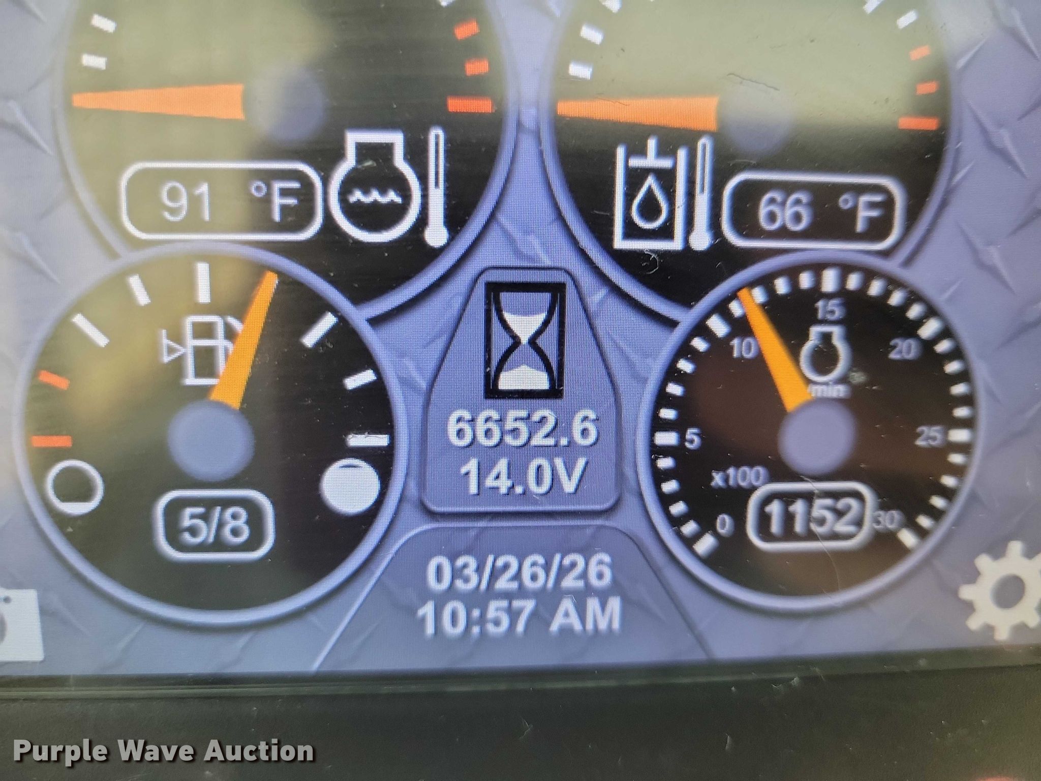 2020 Caterpillar 246D3 skid steer loader. Hours: 6,652 on meter, Serial: CAT0246DCKC600784. Engine Caterpillar C3.3B, Serial: 8KU1666, Displacement: 3.3L, Cylinders: 4, Fuel type: Diesel, kW: 54.6. Transmission Hydrostatic, Two speed travel. Operators station Enclosed cab, AC, Heat, Backup camera, Bucket control: Hand, Electronic Monitoring System panel. Features Auxiliary hydraulics, Auxiliary electrical outlet, Quick coupler: Hydraulic, Bucket Cat, Width: 74", Low profile, Cutting edge: Bolt-on. Tires Size: 12-16.5IND. L. R. Falk Construction. St. Ansgar, IA 50472