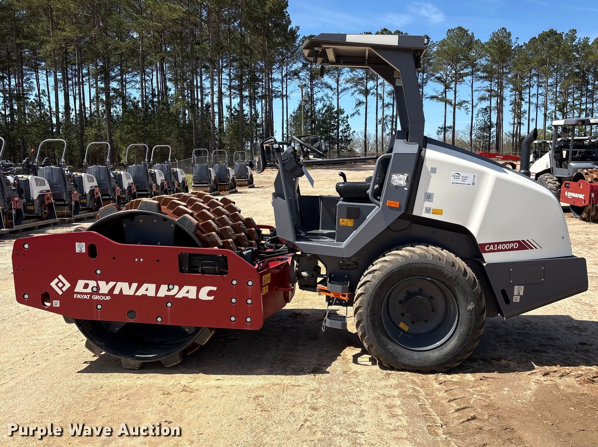Purple Wave is selling a used Single Drum Roller Compactor in Georgia. This item is a 2024 Dynapac CA1400PD single drum vibratory roller with the following: Hours: 1 on meter, Serial: 10000169ERA038900
