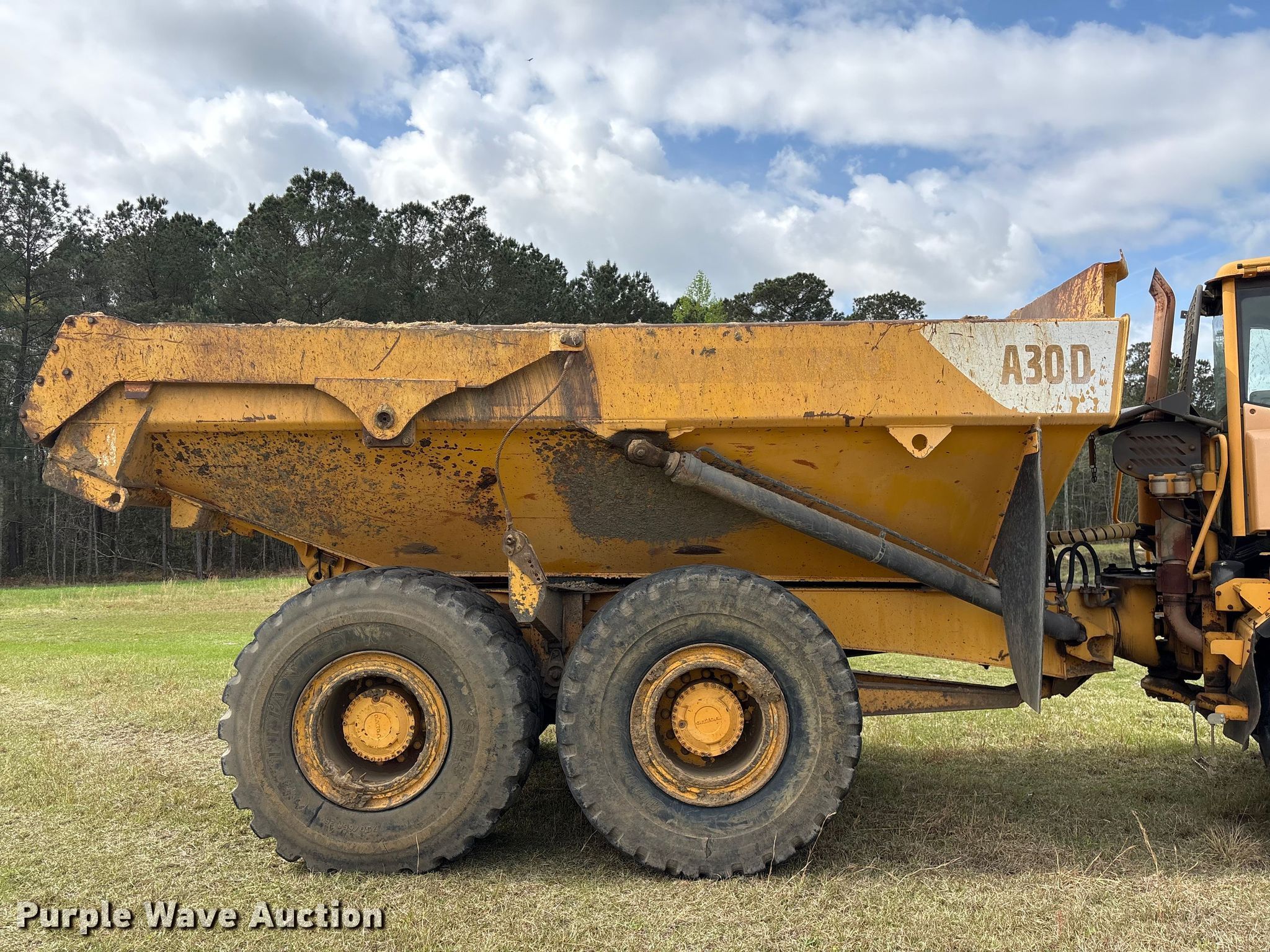 2007 Volvo A30D articulated haul truck. Hours: 16,544 on meter, Serial: A30DV74537. Engine Volvo, Cylinders: 6, Fuel type: Diesel. Transmission Automatic. Chassis Six wheel drive. Interior AC, Heat, Retarder. Features Dump bed Voco. Tires Size: 750/65R25. Notes Door glass broken, Windshield chipped or cracked. Yearly Construction Liquidation. Hemingway, SC 29554