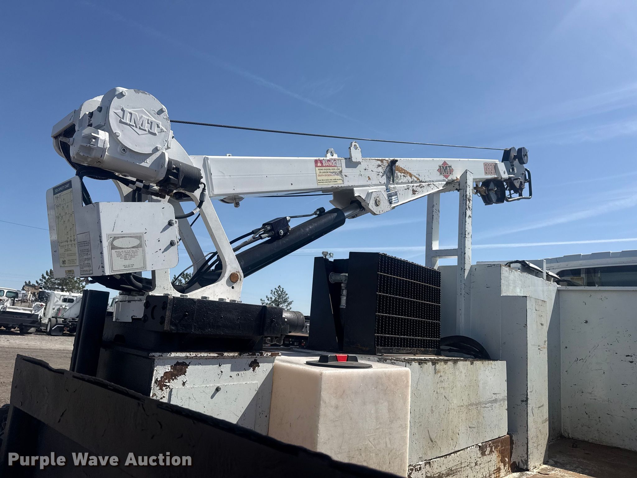 2011 International 7500 utility / service truck. Miles: 137,563 on odometer, Hours: 14,878 on meter, VIN: 1HTWKAZN5BJ349230. Engine Displacement: 9.34L, Cylinders: 6, Fuel type: Diesel. Transmission Eaton Fuller, Manual, Speed: 10. Chassis Axles: Single, Suspension: Spring, Brakes: Air, PTO, GVWR: 33,000 lbs. Interior AC, Heat, Heated mirrors, Cruise control. Features Bed Utility bed, Length: 12' 1", Width: 96", Oil/lube system Hose reels, Crane IMT 2820, Maximum boom length: 22' Maximum lift capacity: 5,000 lbs.. Tires Size: 11R22.5. Oklahoma title. Seller is an Oklahoma licensed motor vehicle dealer. Buyers may be required to provide identification to the licensed dealer to comply with state laws. Title will be assigned and distributed by the dealer. Please contact the seller for distribution questions. Title distribution may be delayed up to 30 days from verification of funds. Collinsville, OK 74021