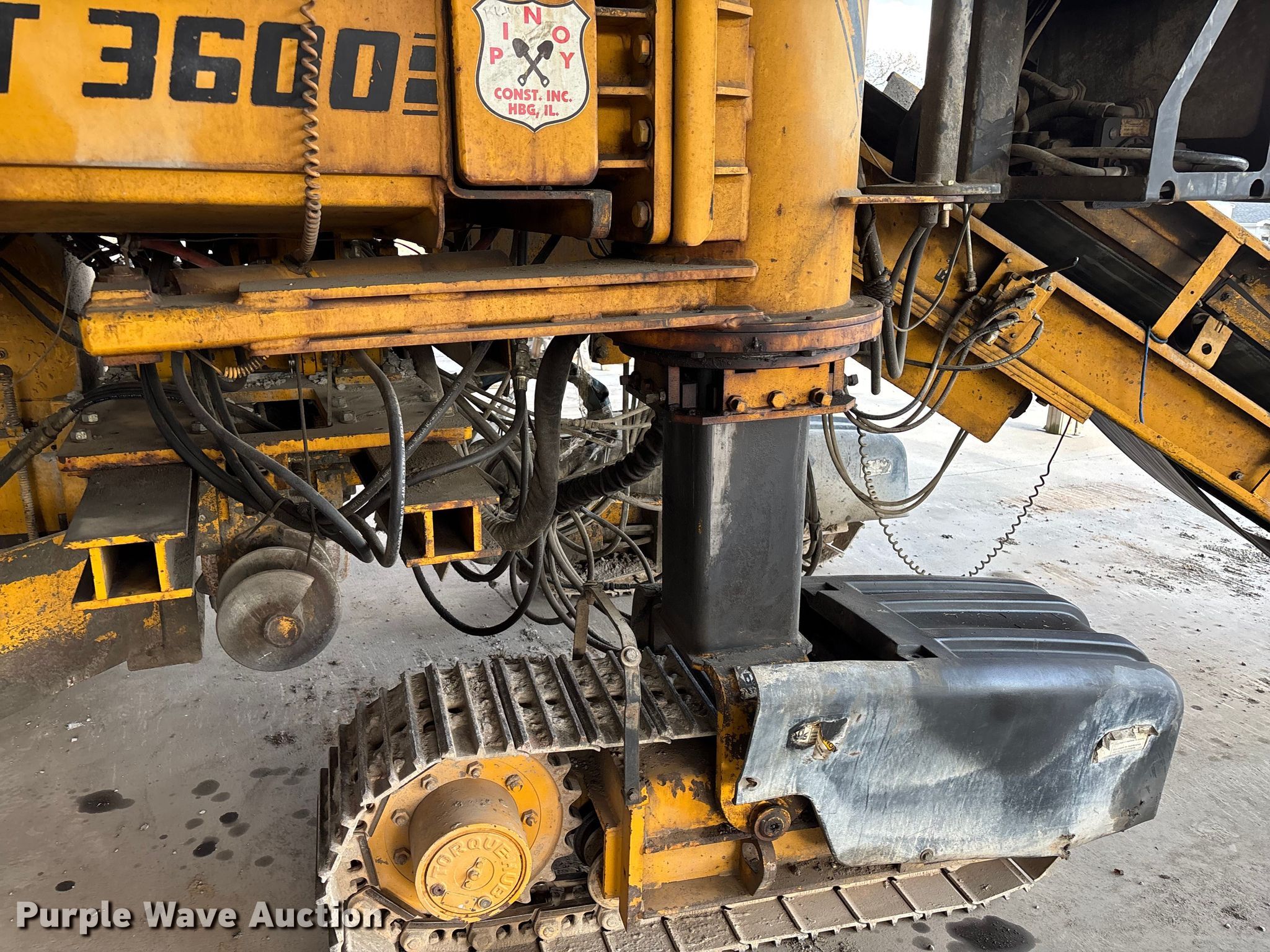 Gomaco GT-3600 slipform paver. Hours: 934 on meter, Serial: 902900-745. Engine John Deere, Fuel type: Diesel. Transmission Hydrostatic. Features Molds: 6, Cutting head Width: 48", Auger Diameter: 12", Conveyor 14' L x 24" W, Additional features 78" W trimmer head, Side walk forms and barrier forms included. Tracks Width: 12", Steel, Grouser pads: Triple. Notes Conveyor belt issues, Jump start required during on-site data collection. Buyer is responsible for all aspects of loadout and removal. Harrisburg, IL 62946