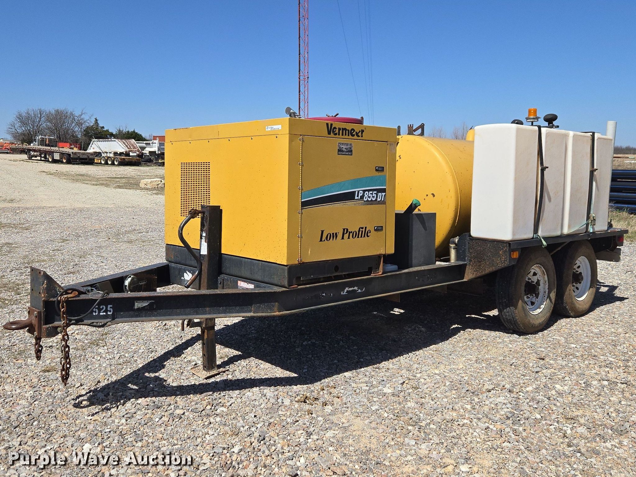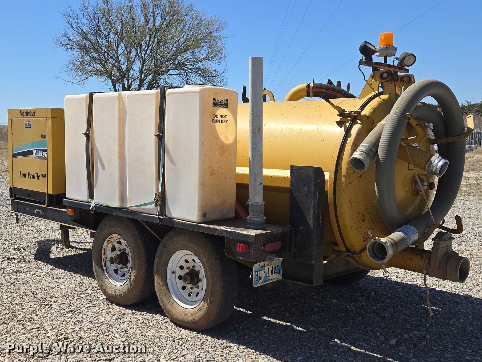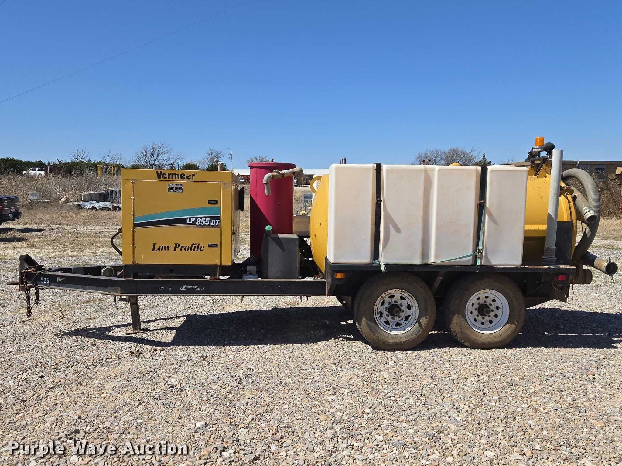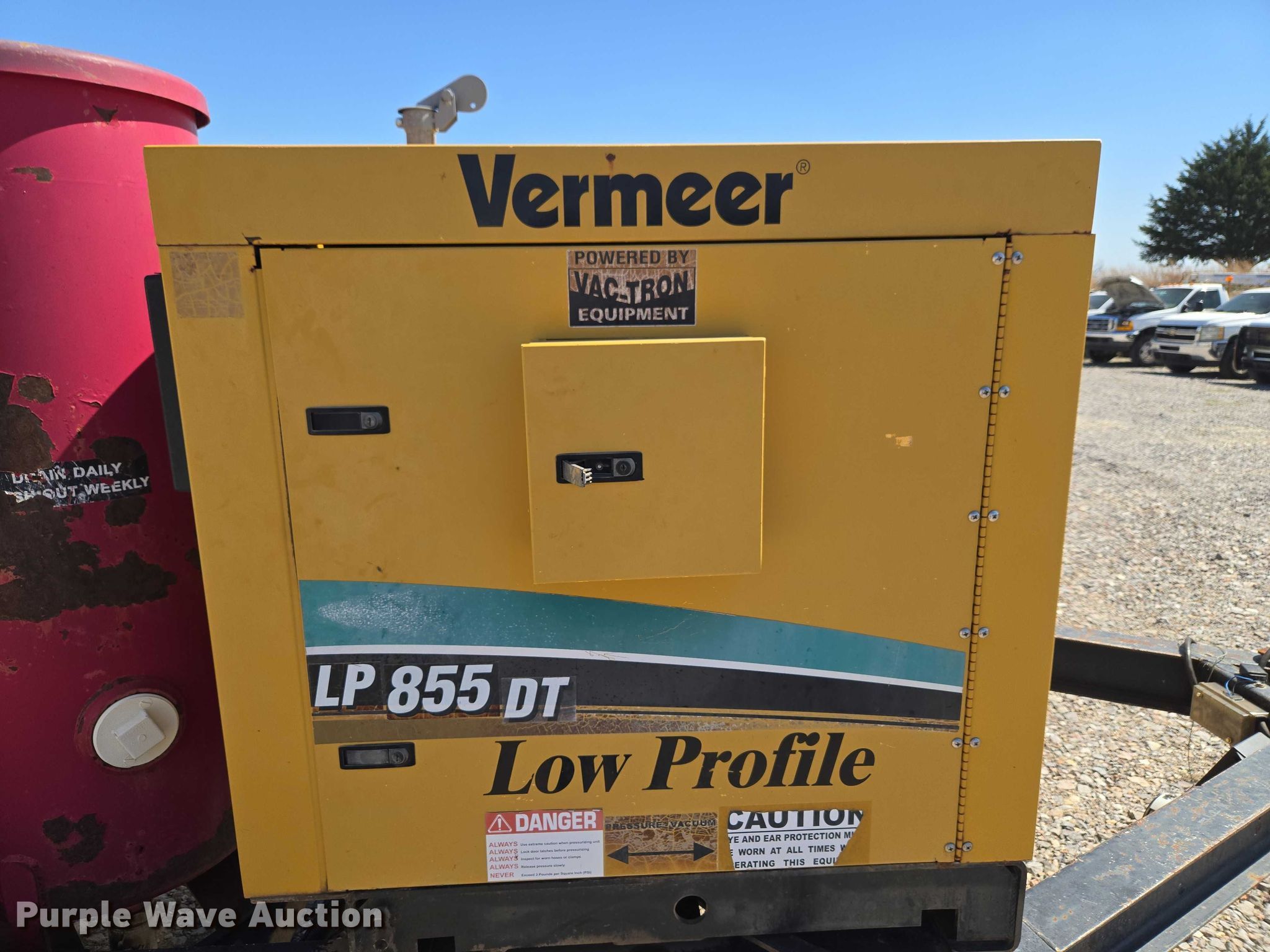2012 Vermeer LP855DT vacuum excavator. Hours: 1,375 on meter. Engine Yanmar 3TNV88-BDSA, Cylinders: 3, Fuel type: Diesel. Features Spoils tank Capacity: 800 gallons, Water tank Capacity: 200 gallons, Water pump, Vacuum pump Vac-Tron, Inlet valve size: 4", Outlet valve size: 6", Reverse flow. Trailer 2012 Vac-Tron, 5HZBF192XCLAC2107, 22' L x 90" W, Hitch: Pintle, Suspension: Torsion, Brakes: Electric, Axles: Tandem, Tire size: 235/85R16, GVWR: 14,000 lbs. Notes Engine issues, surges. Oklahoma title. Title distribution may be delayed up to 30 days from verification of funds. CD Brown Construction. Sulphur, OK 73086