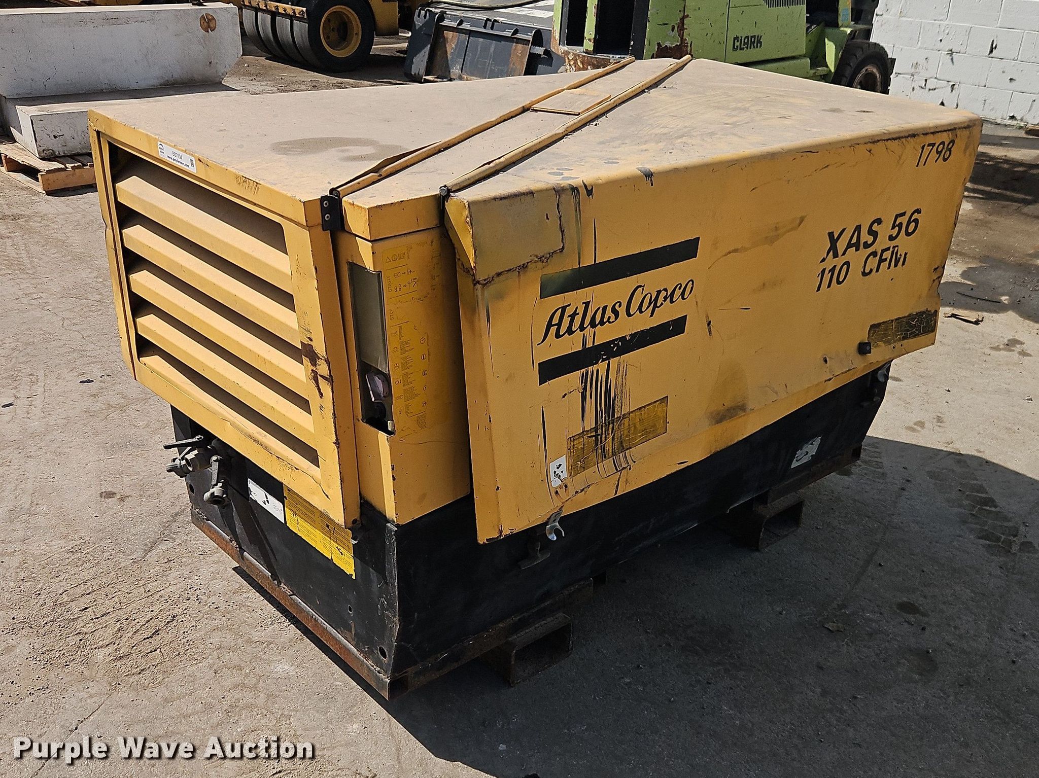 Purple Wave is selling a used Air Compressor in Missouri. This item is a Atlas Copco XAS 56 Air Compressor with the following: Hours: 3,049 on meter, Unit #: 1798