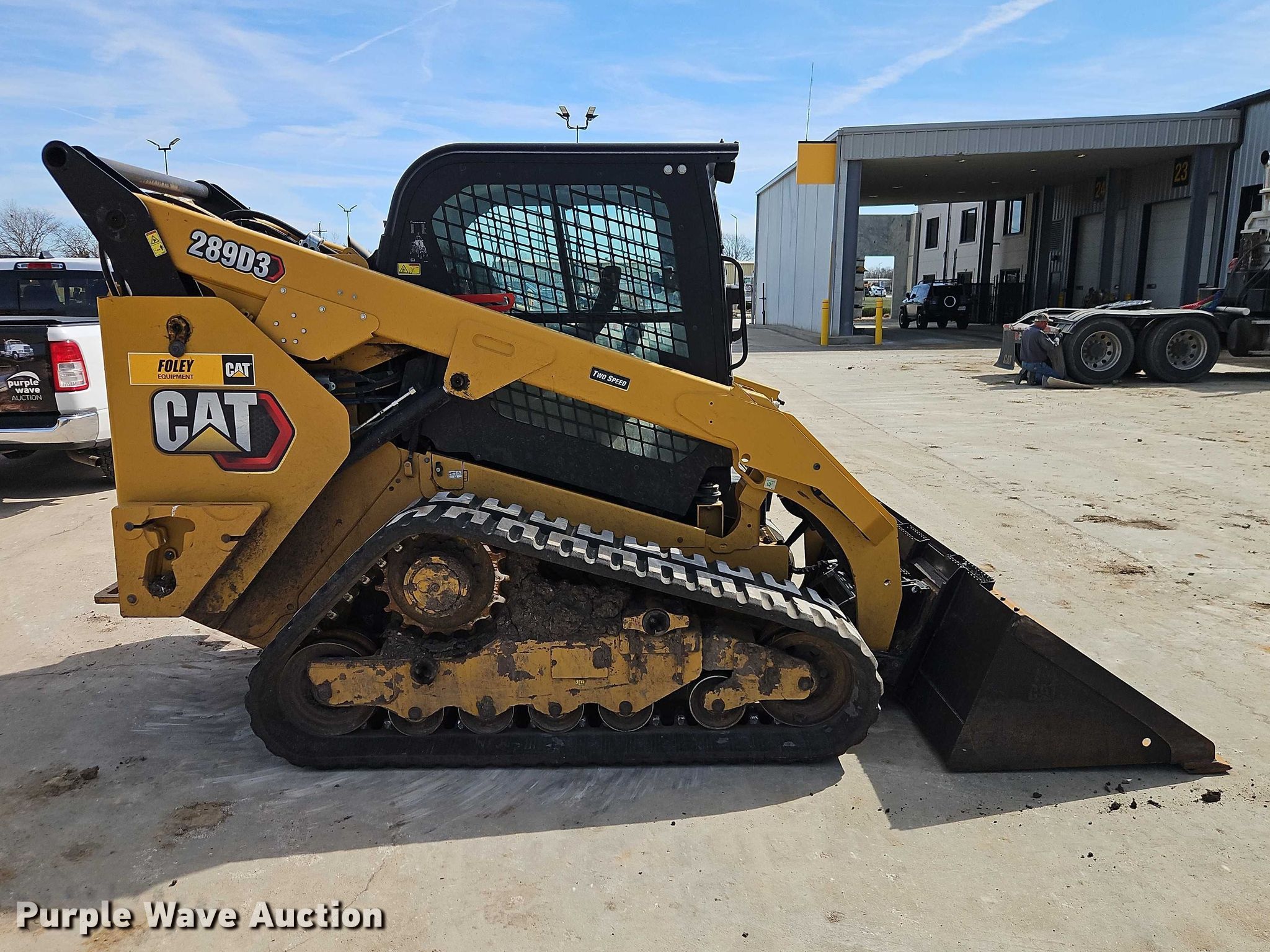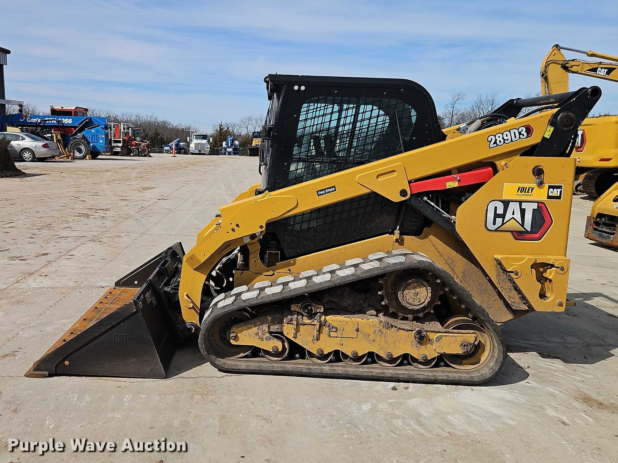 2021 Caterpillar 289D3 tracked skid steer loader. Hours: 7,579 on meter, Serial: JX907580, Unit #: ZUC0040. Engine Caterpillar C3.3B, Displacement: 3.3L, Cylinders: 4, Fuel type: Diesel. Transmission Hydrostatic, Two speed travel. Operators station Enclosed cab, AC, Heat, Backup camera, Bucket control: Hand, Electronic Monitoring System panel. Features Auxiliary hydraulics, Auxiliary electrical outlet, Quick coupler: Hydraulic, Counter weights, Bucket Caterpillar, Capacity: 0.82 cu.yd., Width: 86", Low profile, Cutting edge: Bolt-on. Tracks Width: 17.5". Foley Equipment. Olathe, KS 66062