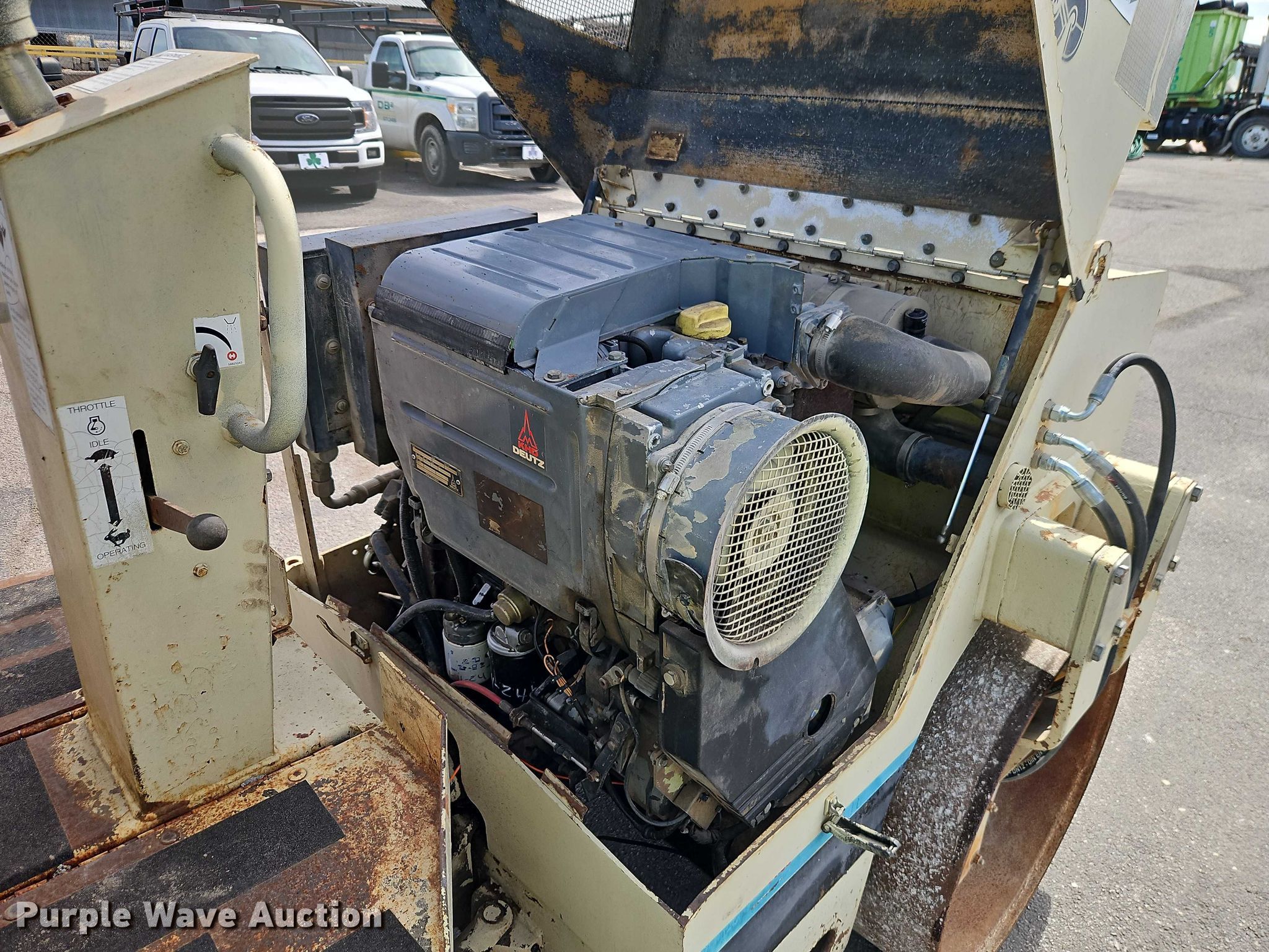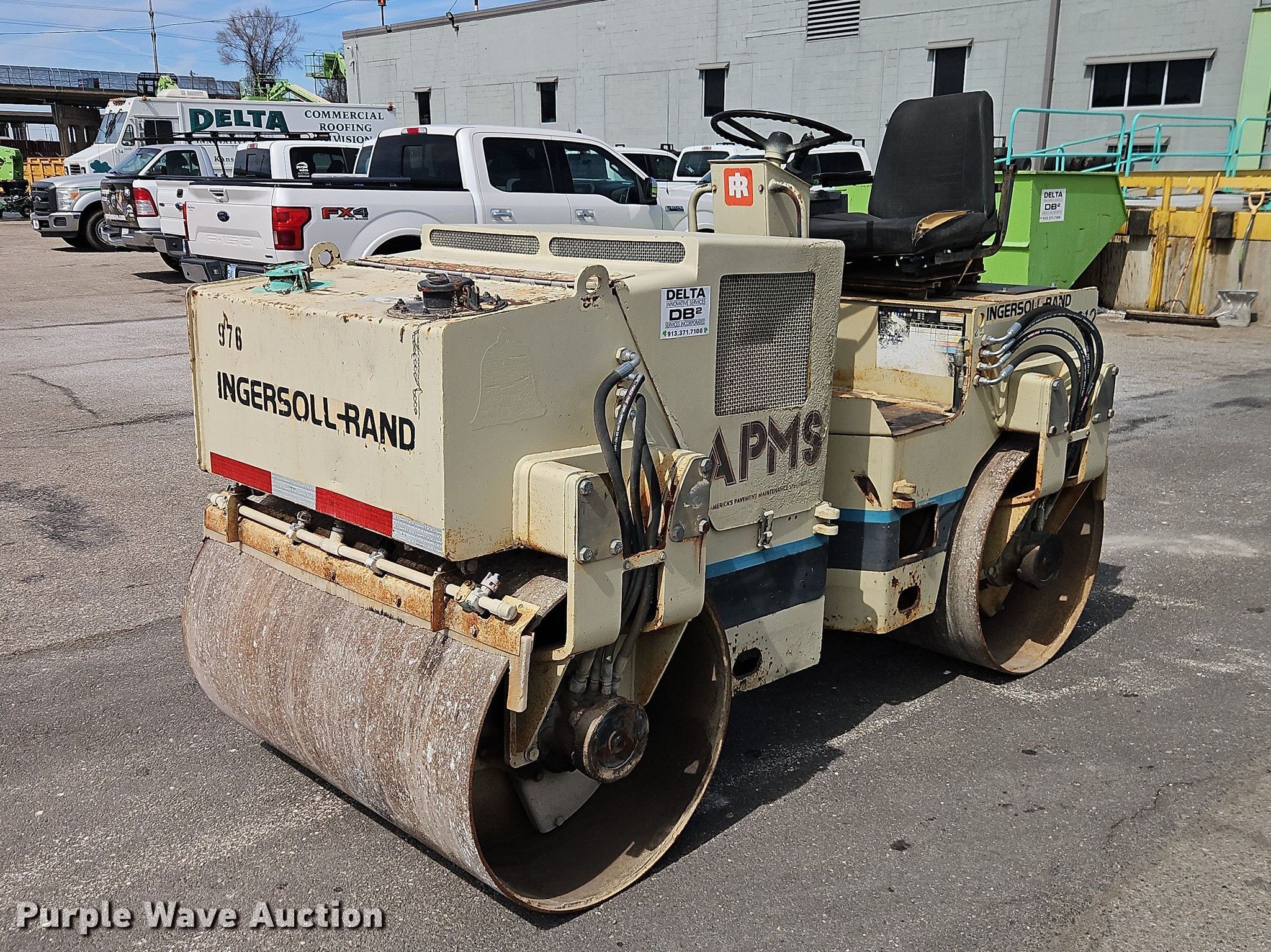 1994 Ingersoll Rand DD-24 double drum vibratory roller. Hours: 55 on meter, Hours: 1 on second meter, Actual hours unknown, Serial: 6435 SBD. Engine Deutz F3L1011, Cylinders: 3, Fuel type: Diesel. Transmission Hydrostatic. Features Drum type: Smooth, Vibratory system: Single, Double, Front drum Width: 46", Diameter: 29", Rear drum Width: 46", Diameter: 29", Drum scrapers: Front, Rear, Water spray applicator: Front, Rear. Delta Innovative Services. Kansas City, KS 66106