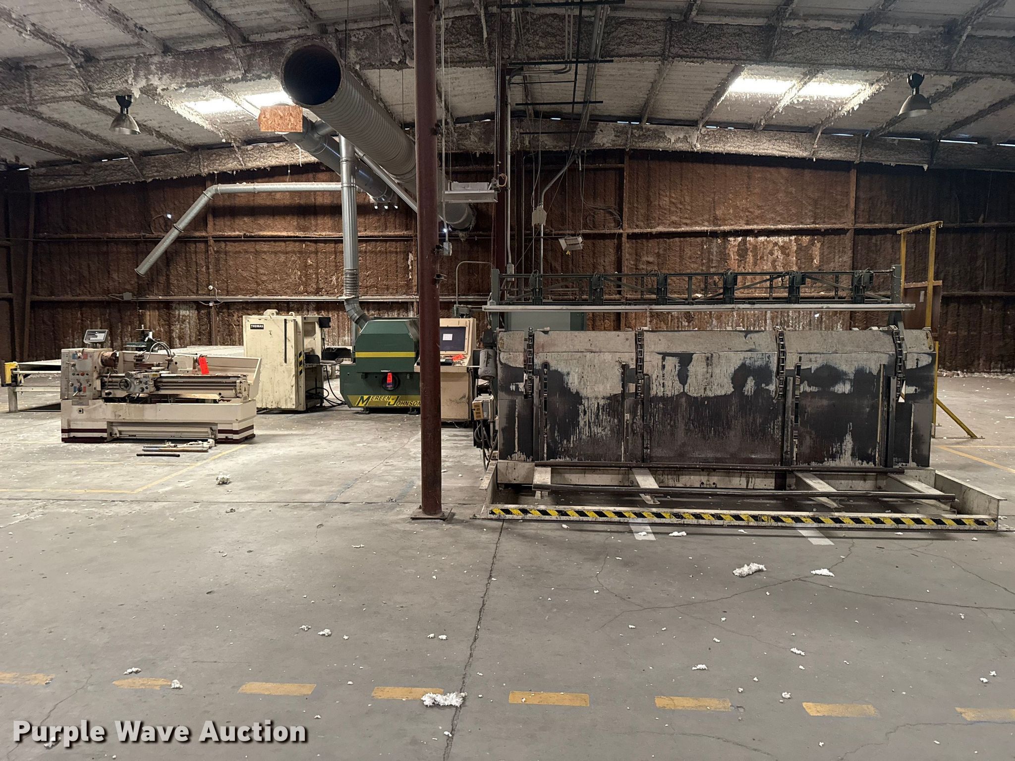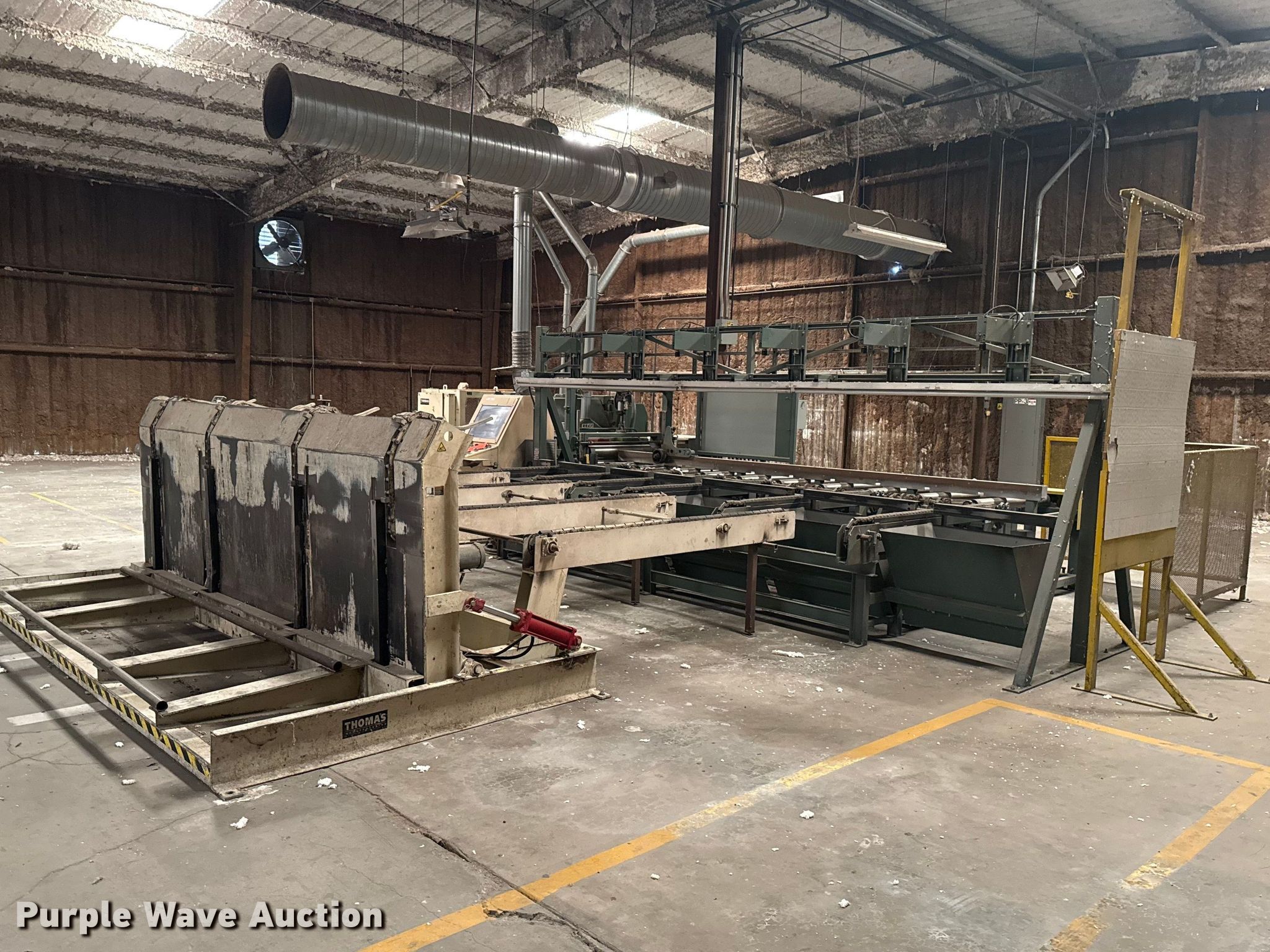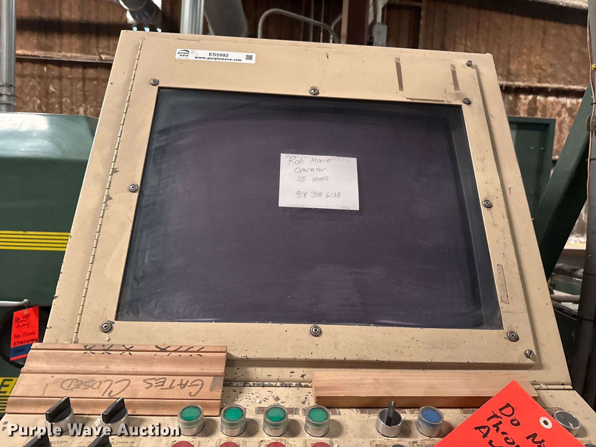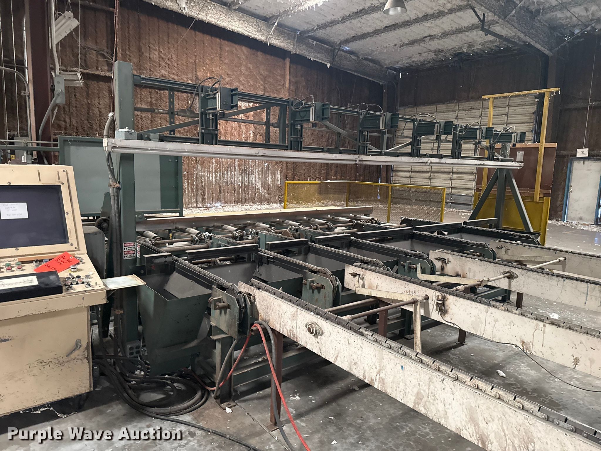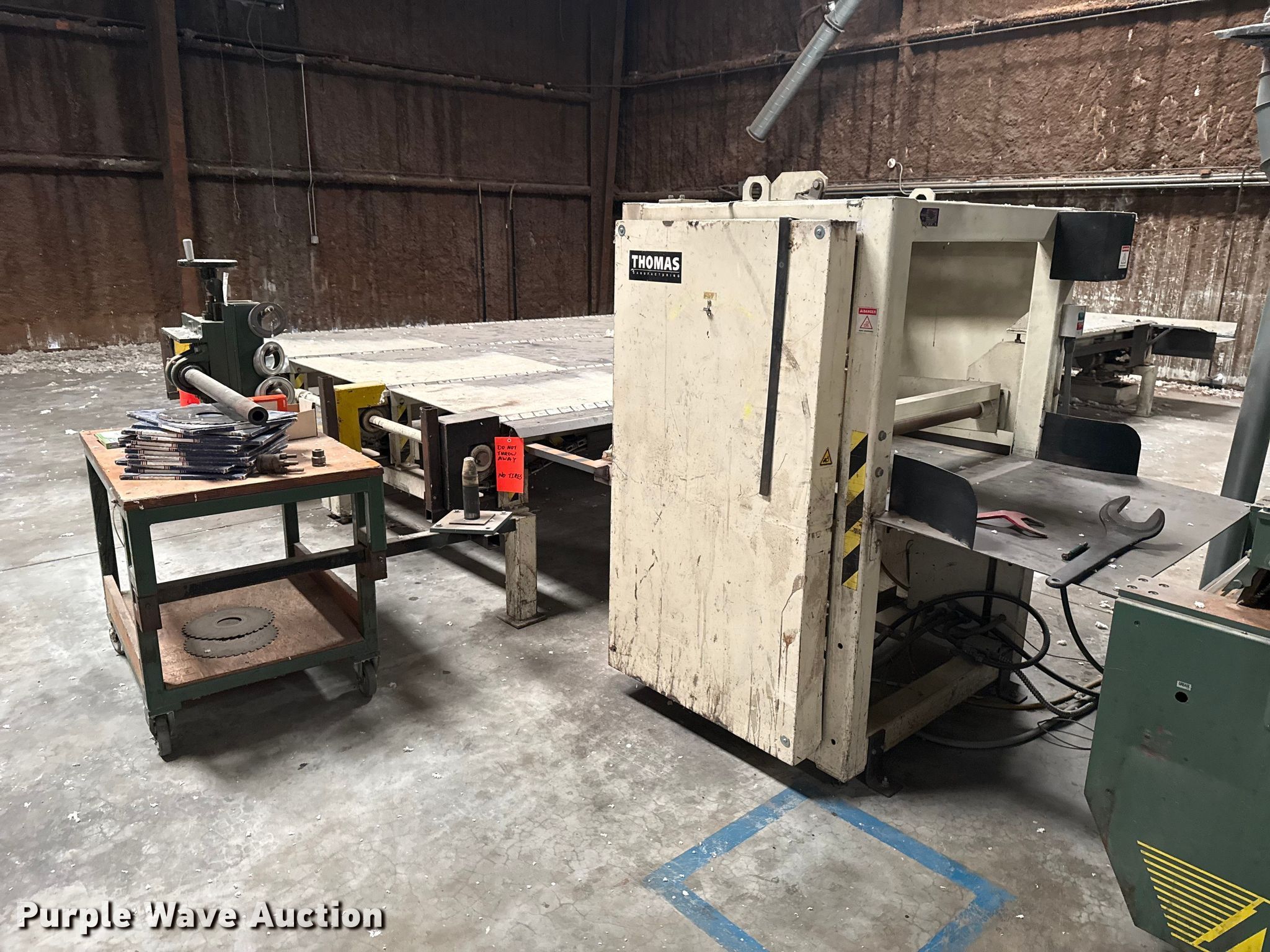 Woodworking equipment. Hours: 8,529 on meter, Serial: MJ-5699. Electric Motor Volts: 460, Phase: Three. Features Thomas bundle dumper, Thomas conveyor, Group 7 Systems conveyor Volts: 460, Phase: Three, Hertz: 60, Mereen-Johnson 431 gang rip saw Serial: MJ5699, Control panel, Thomas roller, Thomas conveyor table, GMC GML-1660HD lathe. Mark Brewer. Broken Arrow, OK 74014
