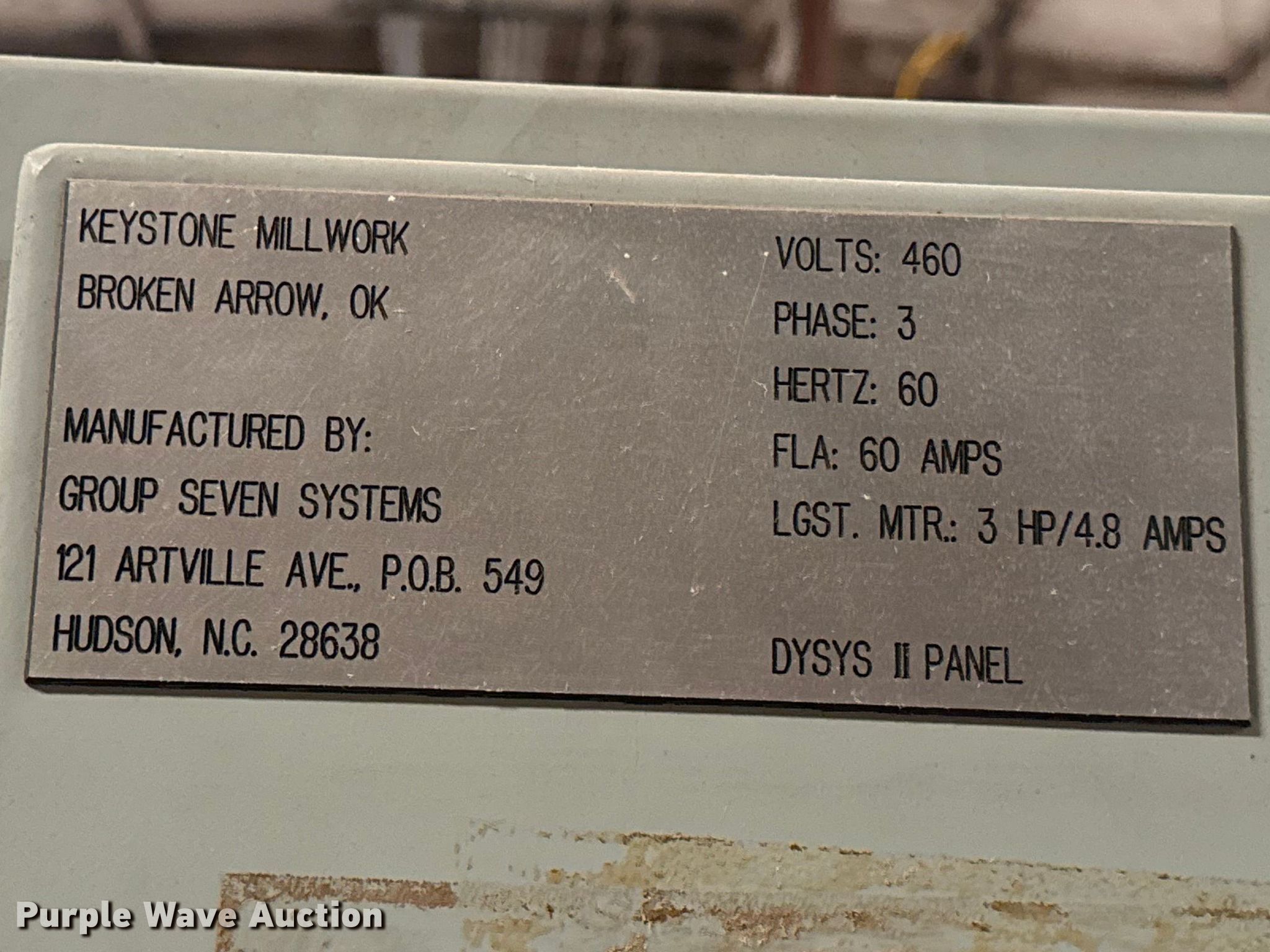 Purple Wave is selling a used Woodworking Equip. in Oklahoma. This item is a Woodworking equipment with the following: Hours: 8,529 on meter, Serial: MJ-5699