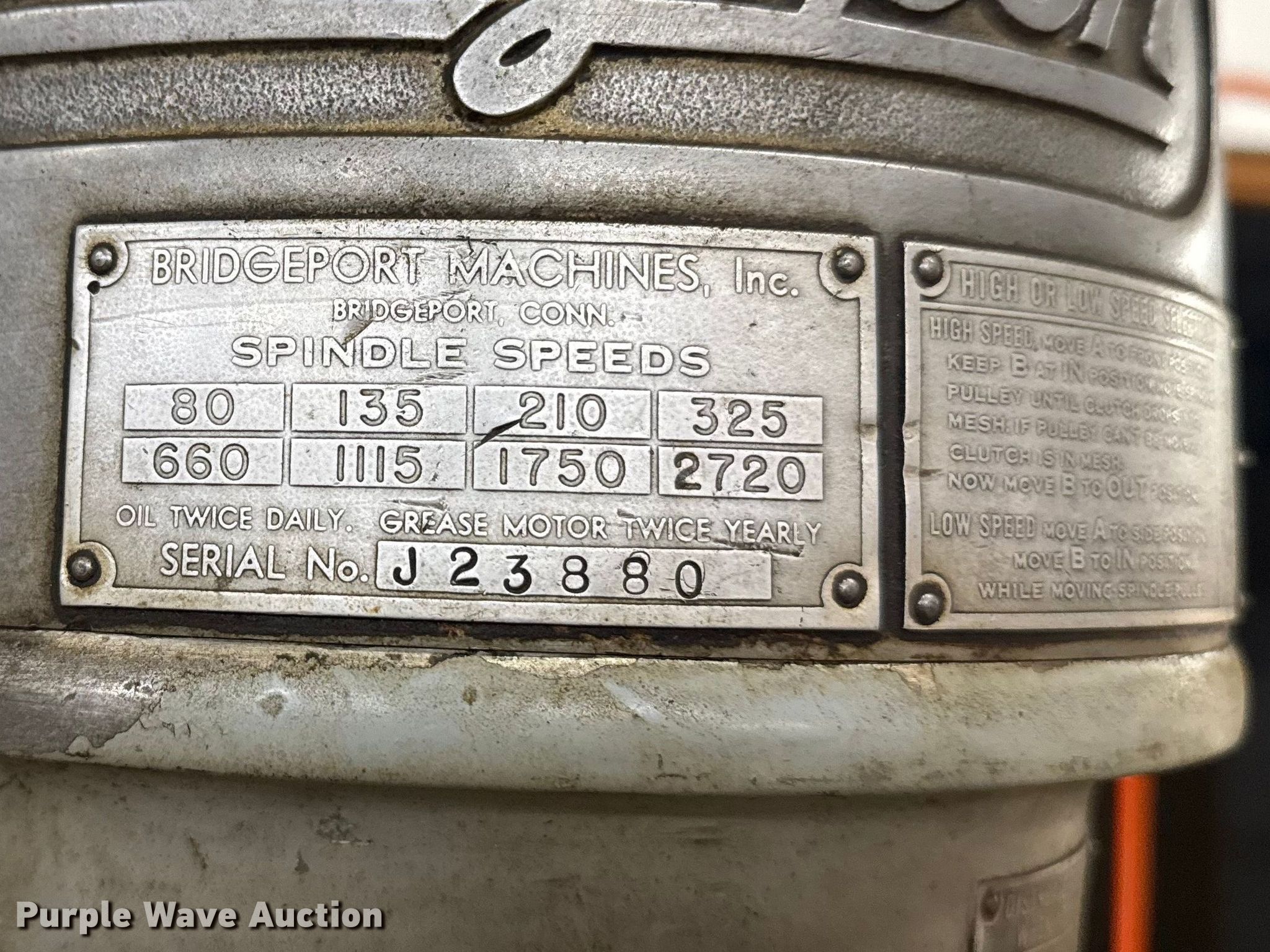 Purple Wave is selling a used Tools in Oklahoma. This item is a Bridgeport drill press with the following: Serial: J23880