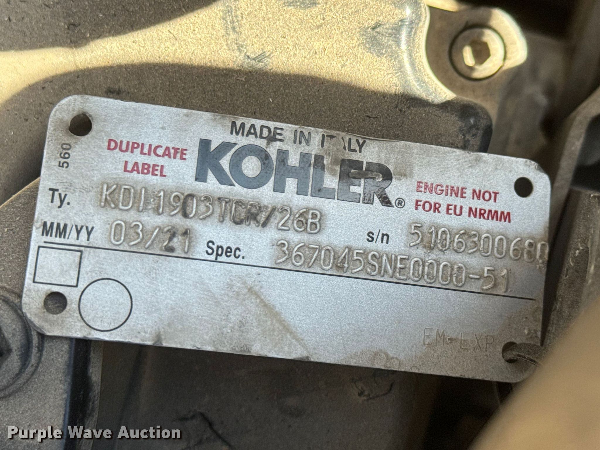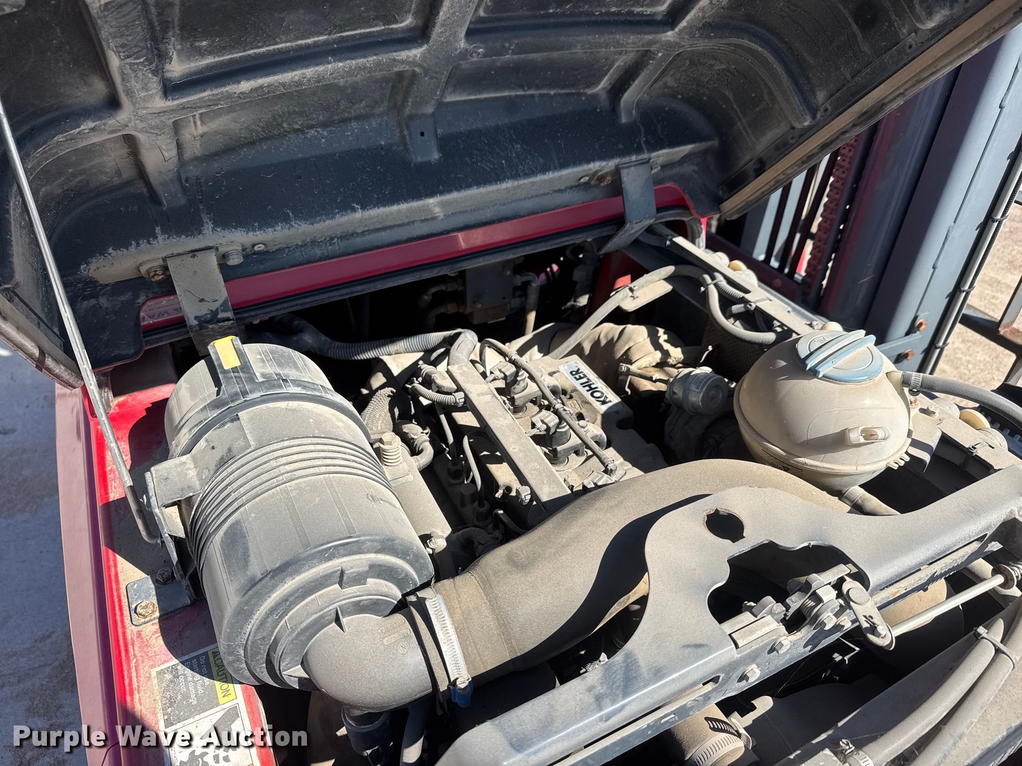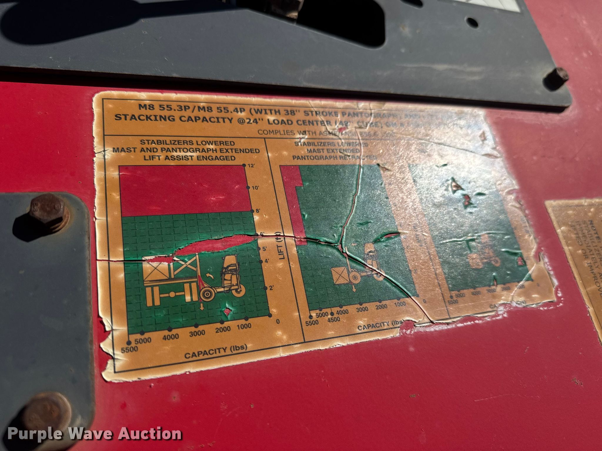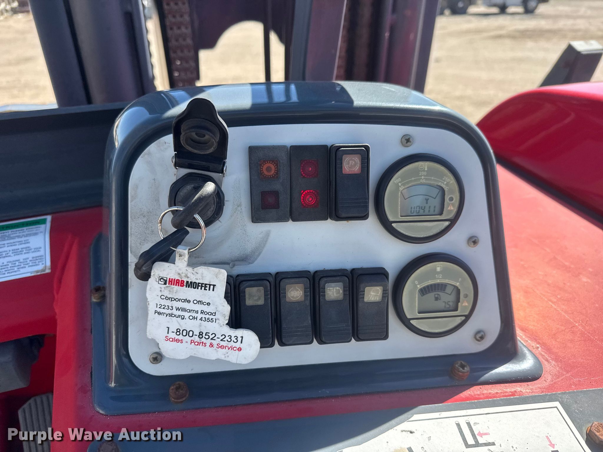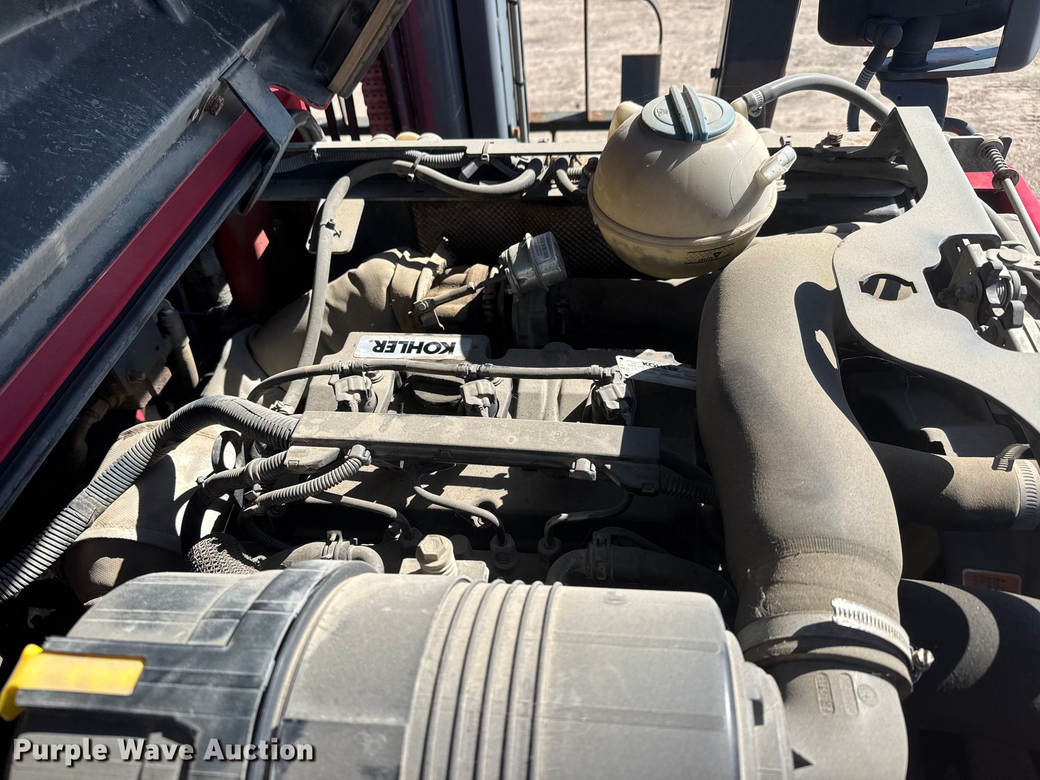 2014 Cargotec Ireland M8 55.3PL forklift. Hours: 747 on meter, Serial: N360128. Engine Kohler, Serial: 5106300680, Displacement: 1.861L, Cylinders: 4, Fuel type: Diesel. Transmission Hydrostatic. Chassis Differential lock. Operators station OROPS. Features Maximum lift capacity: 5,500 lbs, Maximum lift height: 144", Collapsed mast height: 96", Mast stages: 2, Side shift, Mast tilt, Reach / retract, Fork length: 48". Tires Front: 31x15.5-15. Notes Flat tire, Engine issues , Non-operational unit. The Monarch Cement Company. Wichita, KS 67209