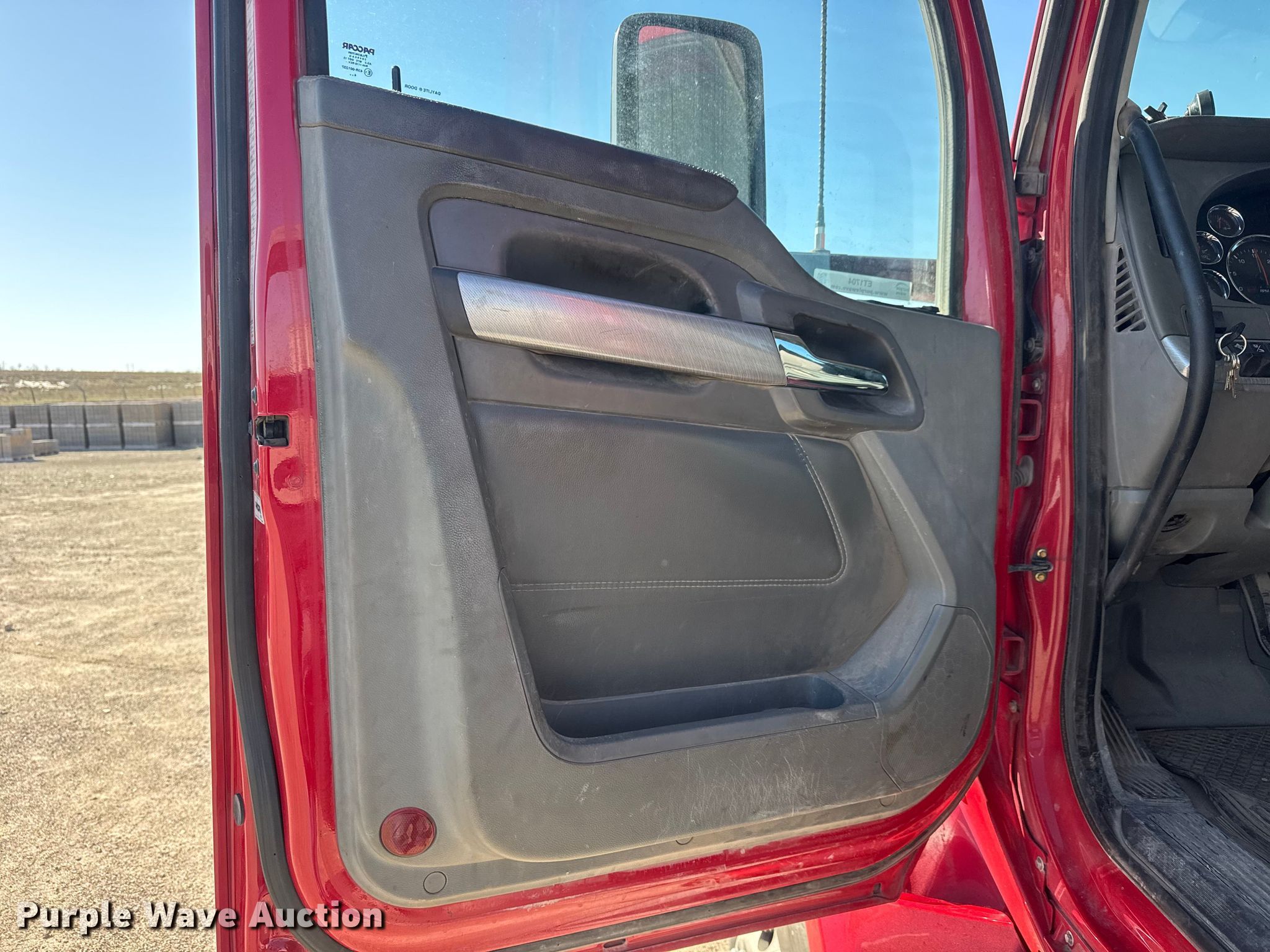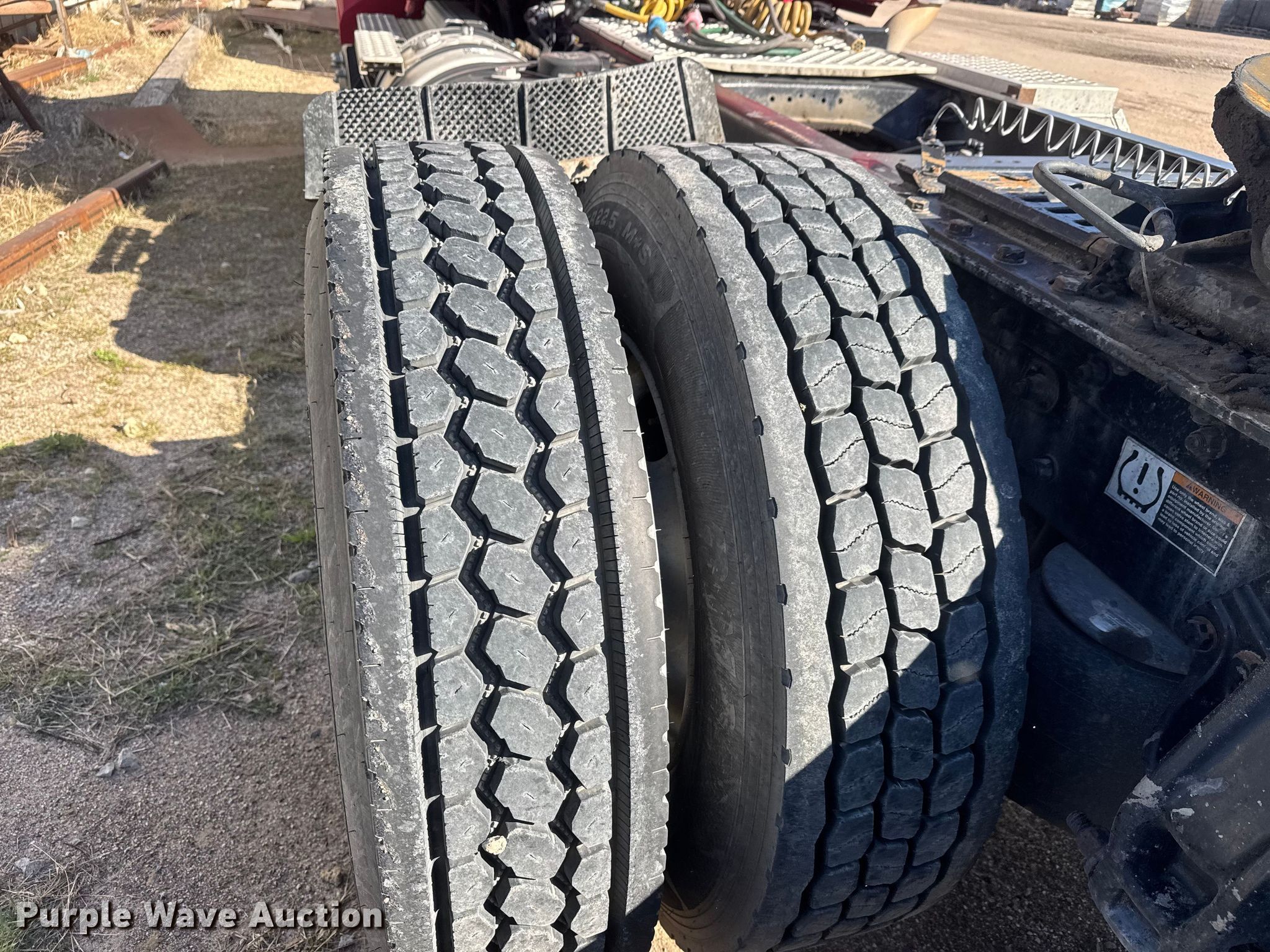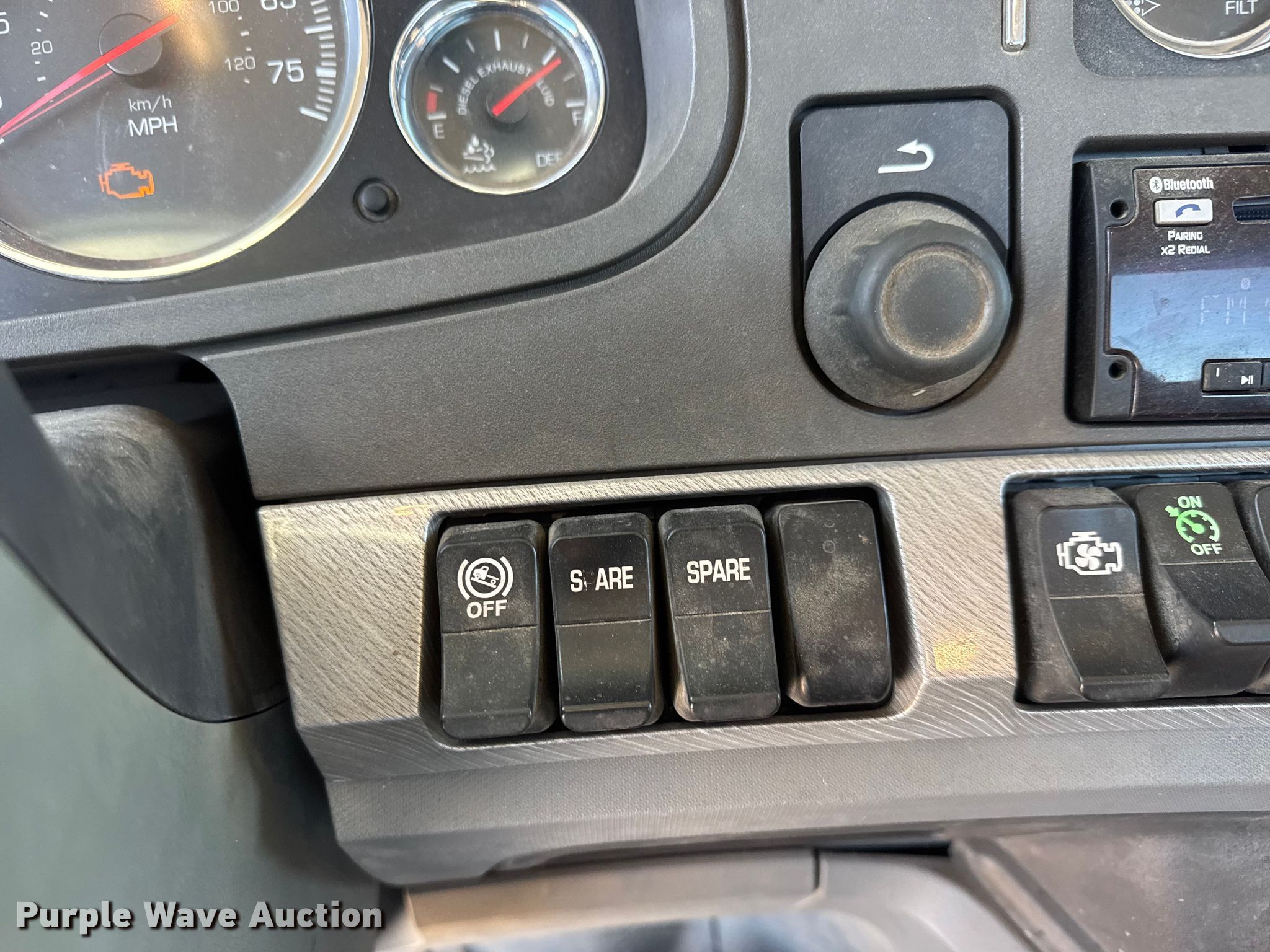 2015 Kenworth T880 semi truck. Miles: 582,380 on odometer, Hours: 2,404 on meter Actual hours: Unknown, VIN: 1XKZDP9X0FJ471061, Unit #: 15. Engine Paccar MX-13, Serial: Y063111, Displacement: 12.9L, Cylinders: 6, Fuel type: Diesel, Engine brake. Transmission Automated manual. Chassis Axles: Tandem, Differential lock: Inter-axle, Suspension: Air Dump valves, Brakes: Air, GVWR: 53,200 lbs FAWR: 13,200 lbs, IAWR: 20,000 lbs, RAWR: 20,000 lbs. Interior AC, Heat, Heated mirrors, Power windows, Power locks, Cruise control, Air ride cab, Auxiliary controls. Features Deck plate: Aluminum, Fifth wheel type: Air operated, Sliding, Fuel tank: Dual. Tires Size: 295/75R22.5. Notes Dash warning indicator: Check engine, ABS, Traction control, Windshield chipped or cracked. Kansas title. The Monarch Cement Company. Wichita, KS 67209
