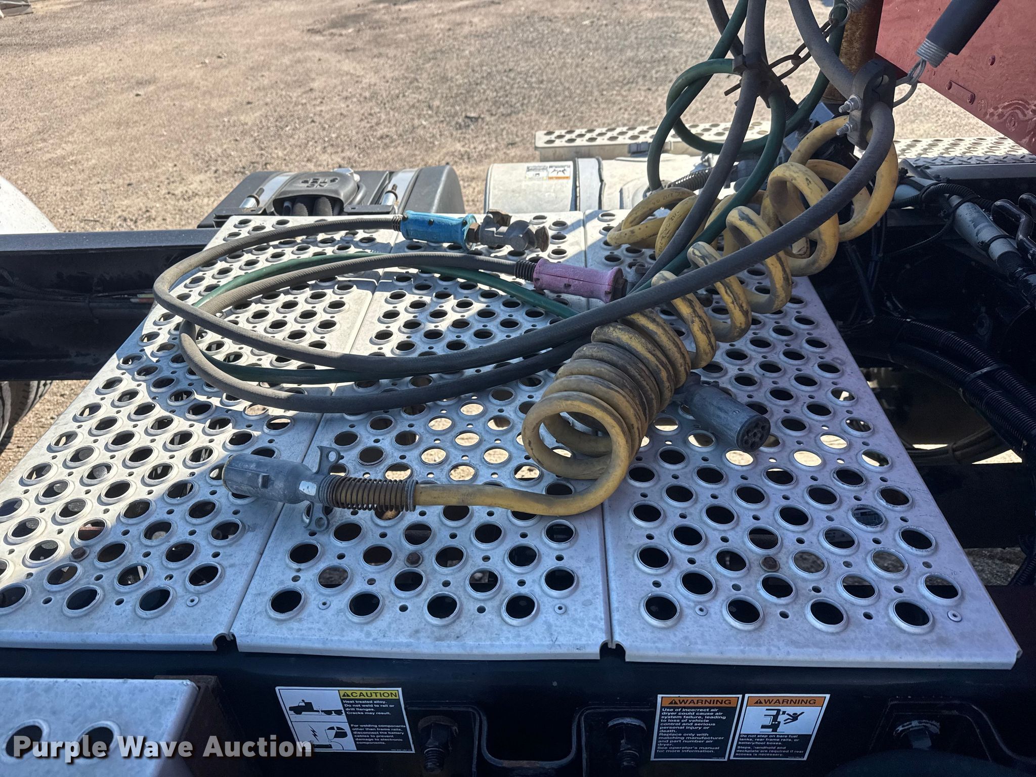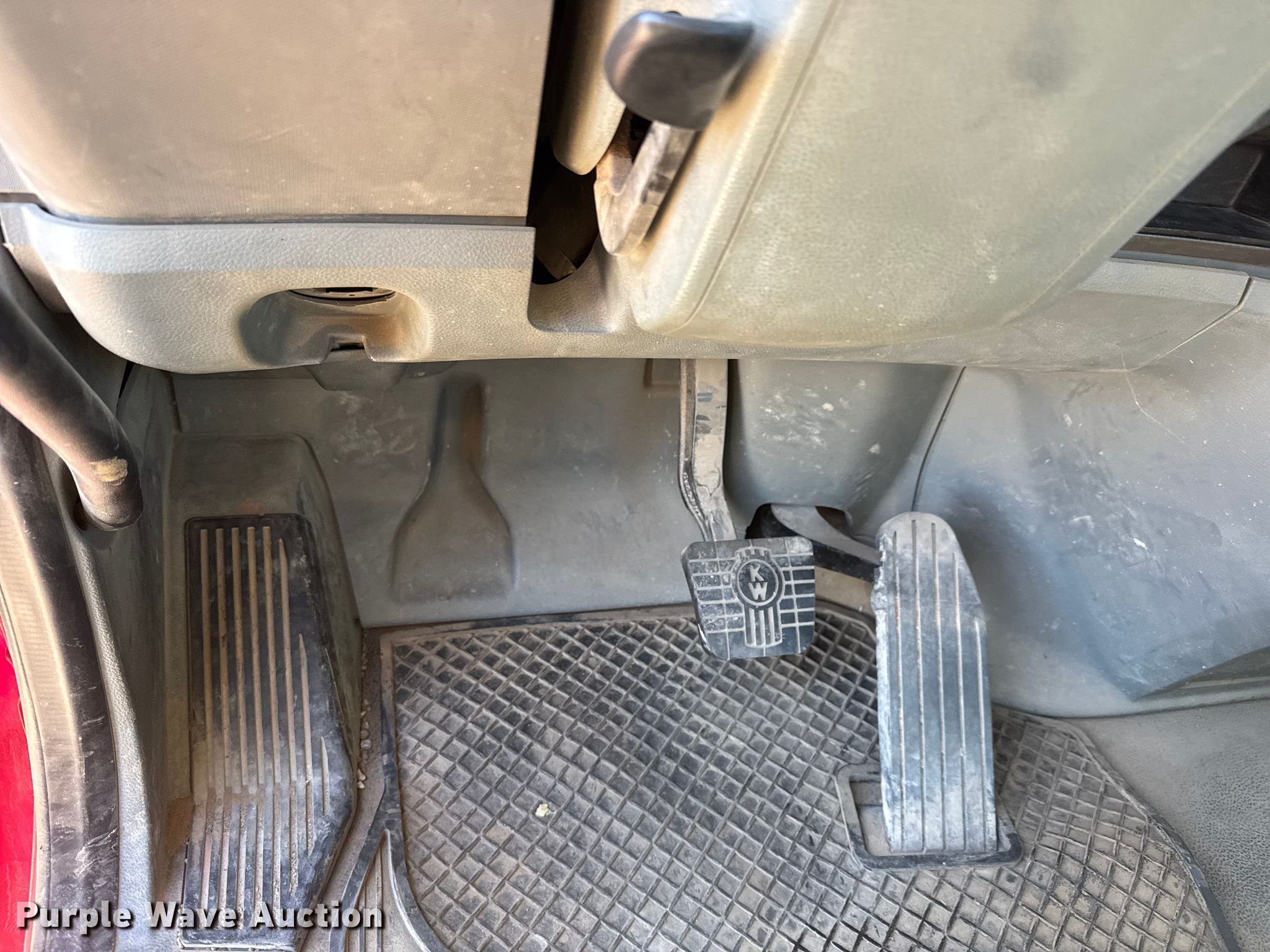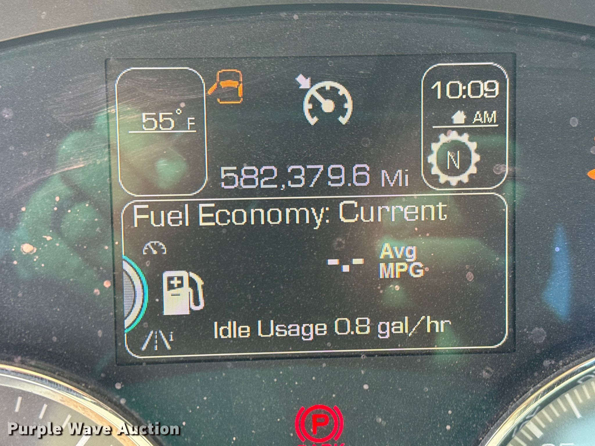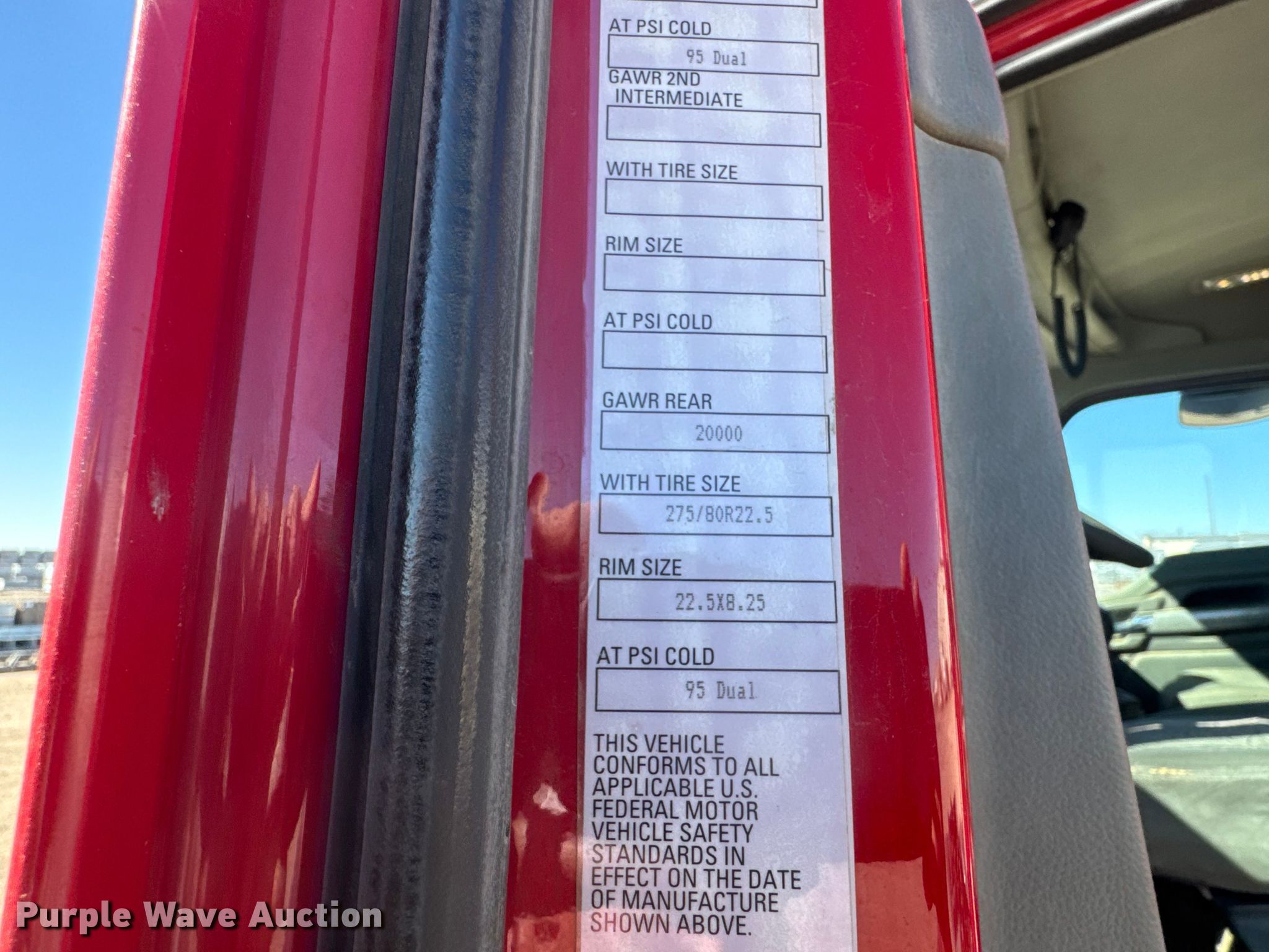 2015 Kenworth T880 semi truck. Miles: 582,380 on odometer, Hours: 2,404 on meter Actual hours: Unknown, VIN: 1XKZDP9X0FJ471061, Unit #: 15. Engine Paccar MX-13, Serial: Y063111, Displacement: 12.9L, Cylinders: 6, Fuel type: Diesel, Engine brake. Transmission Automated manual. Chassis Axles: Tandem, Differential lock: Inter-axle, Suspension: Air Dump valves, Brakes: Air, GVWR: 53,200 lbs FAWR: 13,200 lbs, IAWR: 20,000 lbs, RAWR: 20,000 lbs. Interior AC, Heat, Heated mirrors, Power windows, Power locks, Cruise control, Air ride cab, Auxiliary controls. Features Deck plate: Aluminum, Fifth wheel type: Air operated, Sliding, Fuel tank: Dual. Tires Size: 295/75R22.5. Notes Dash warning indicator: Check engine, ABS, Traction control, Windshield chipped or cracked. Kansas title. The Monarch Cement Company. Wichita, KS 67209