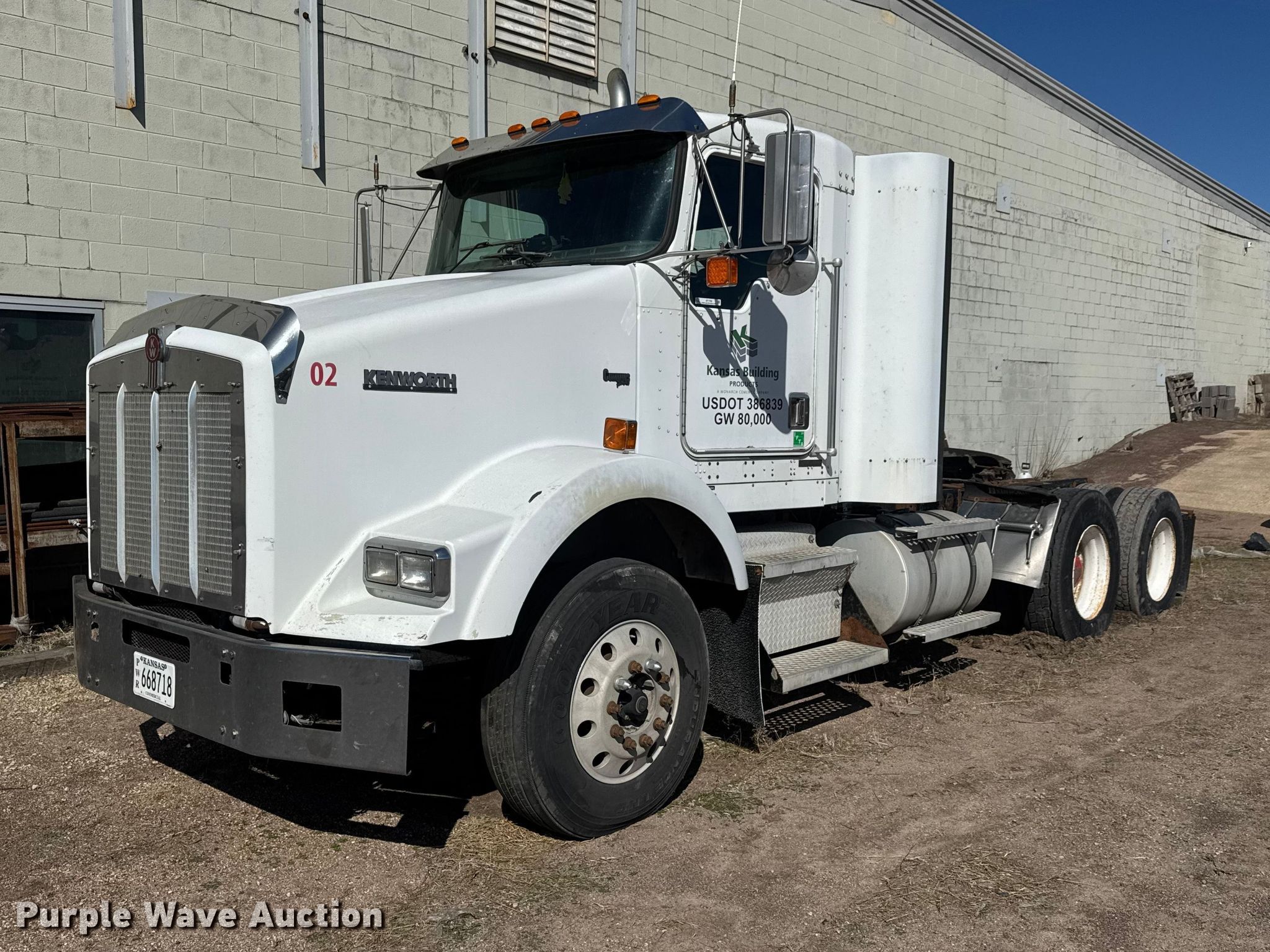 Purple Wave is selling a used Truck Tractor in Kansas. This item is a 2002 Kenworth T800 semi truck with the following: Miles: 78,250 on odometer, VIN: 1XKDD69XX2J886743, Unit #: 02