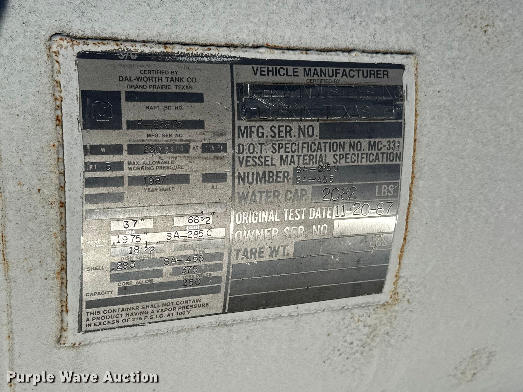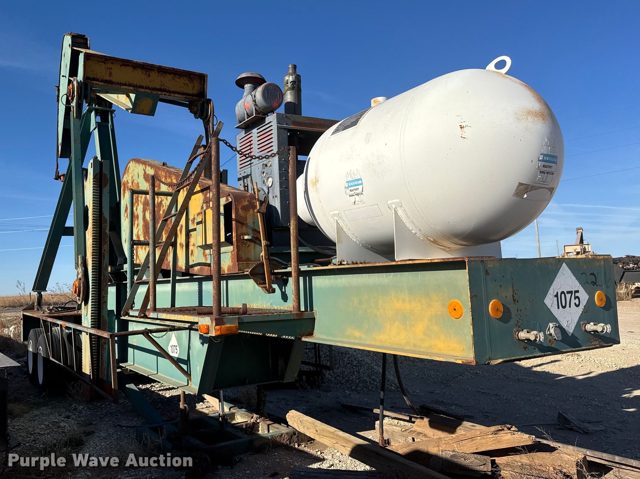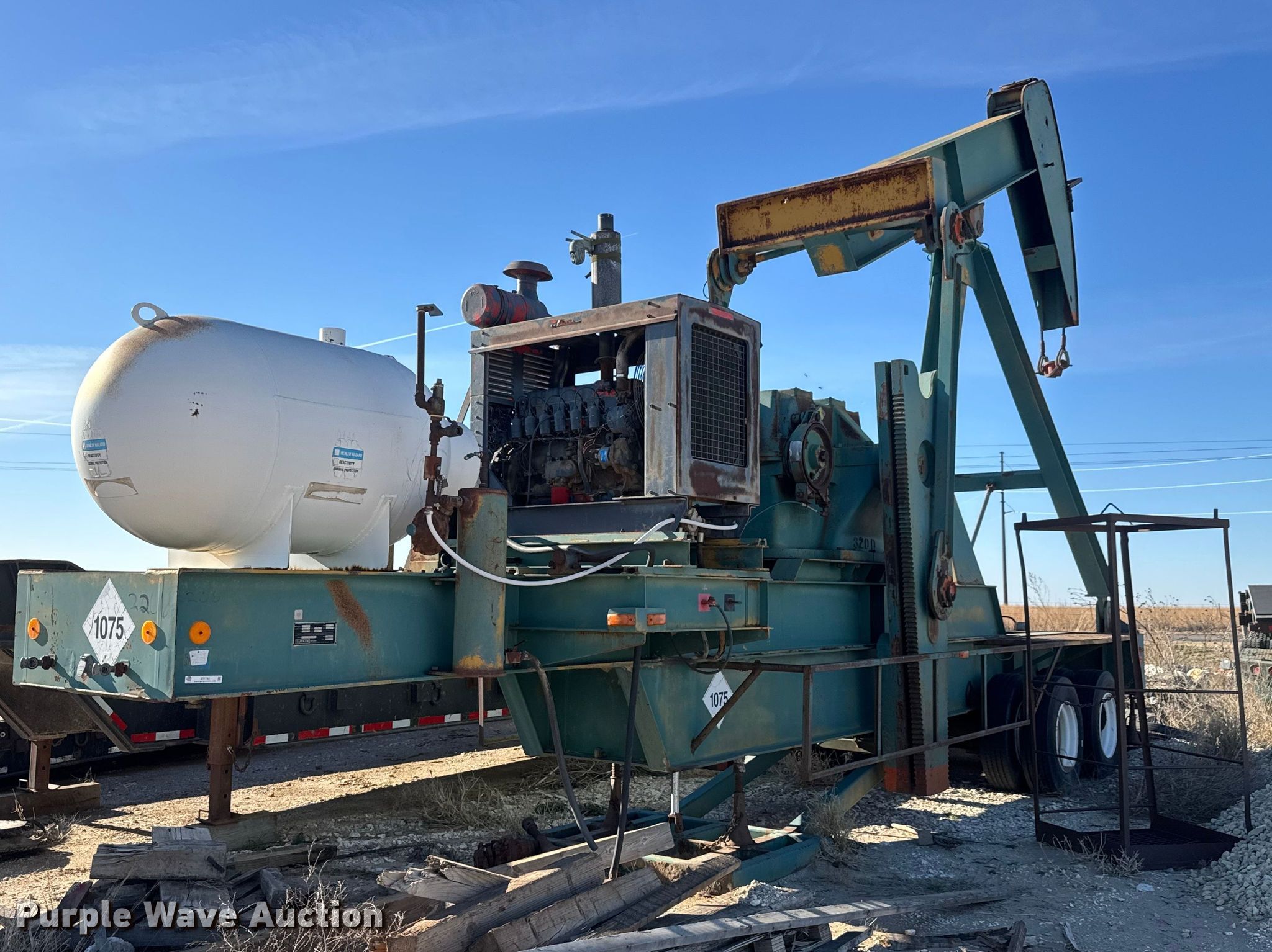 Lufkin CM-320D-305-100 pump jack. Hours: 6,943 on meter, Serial: E119924B-496388. Engine Cylinders: 6, Fuel type: Dual fuel. Features Gear ratio: 30.12. Trailer 1988 Lufkin Industries MPU, VIN: 1L01H3525J1080840, Overall length: 35', Overall width: 95", GVWR: 60,000 lbs, Axles: Tandem, Suspension: Spring, Brakes: Air, Tire size: 295/75R22.5. Notes Propane tank. This is worksite support equipment and will not come with a title. Transfer of ownership documentation will be a bill of sale. T&P Partners, LLC. Sawyer, KS 67134
