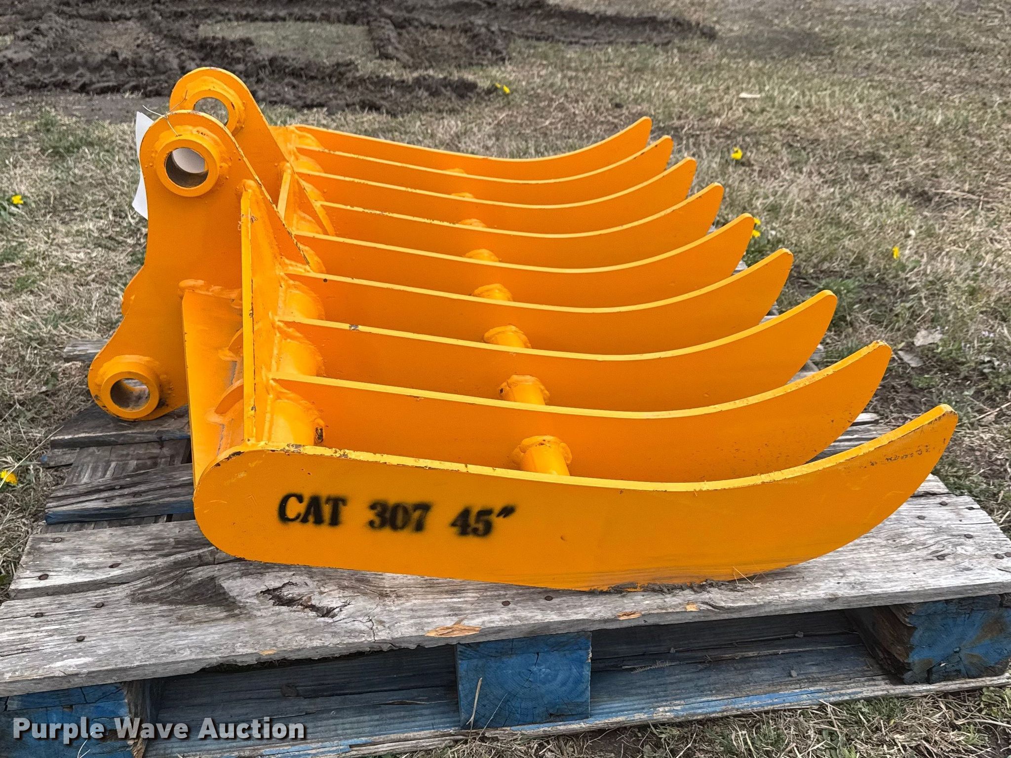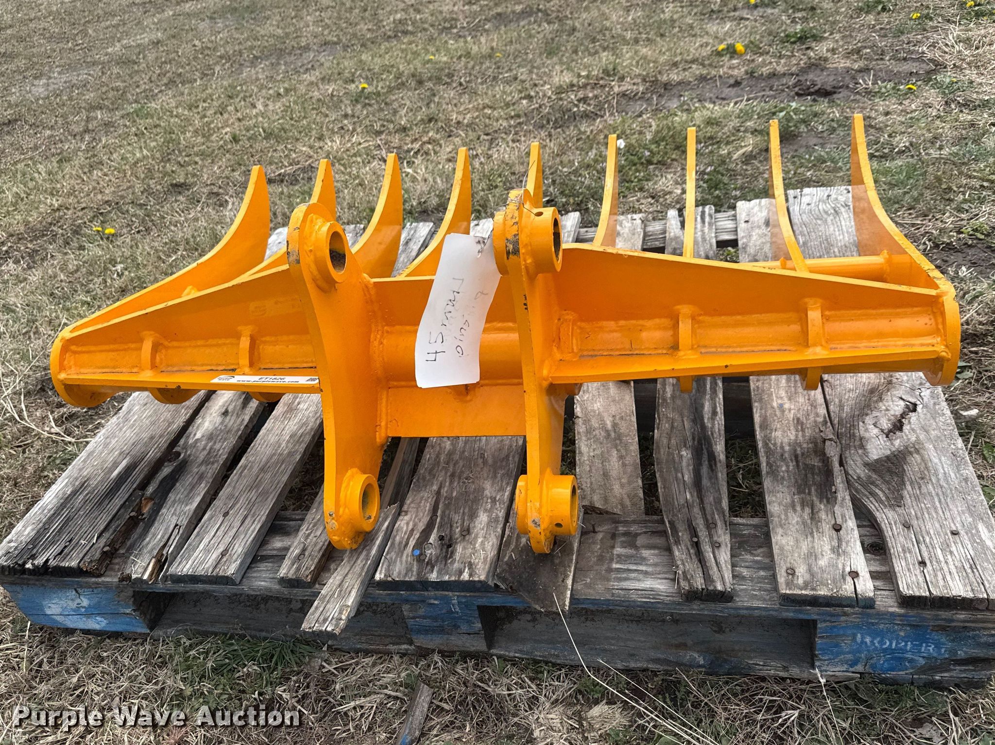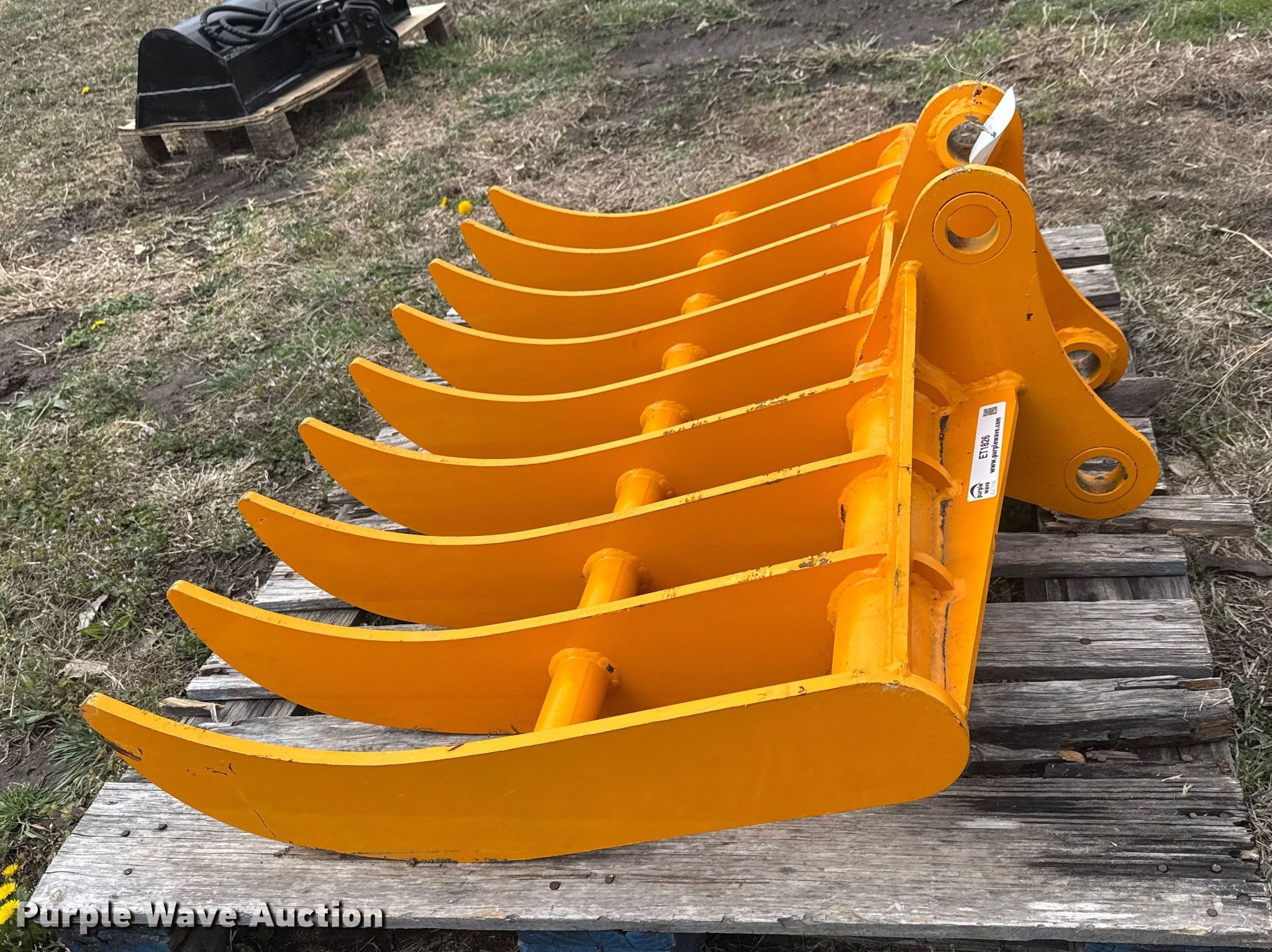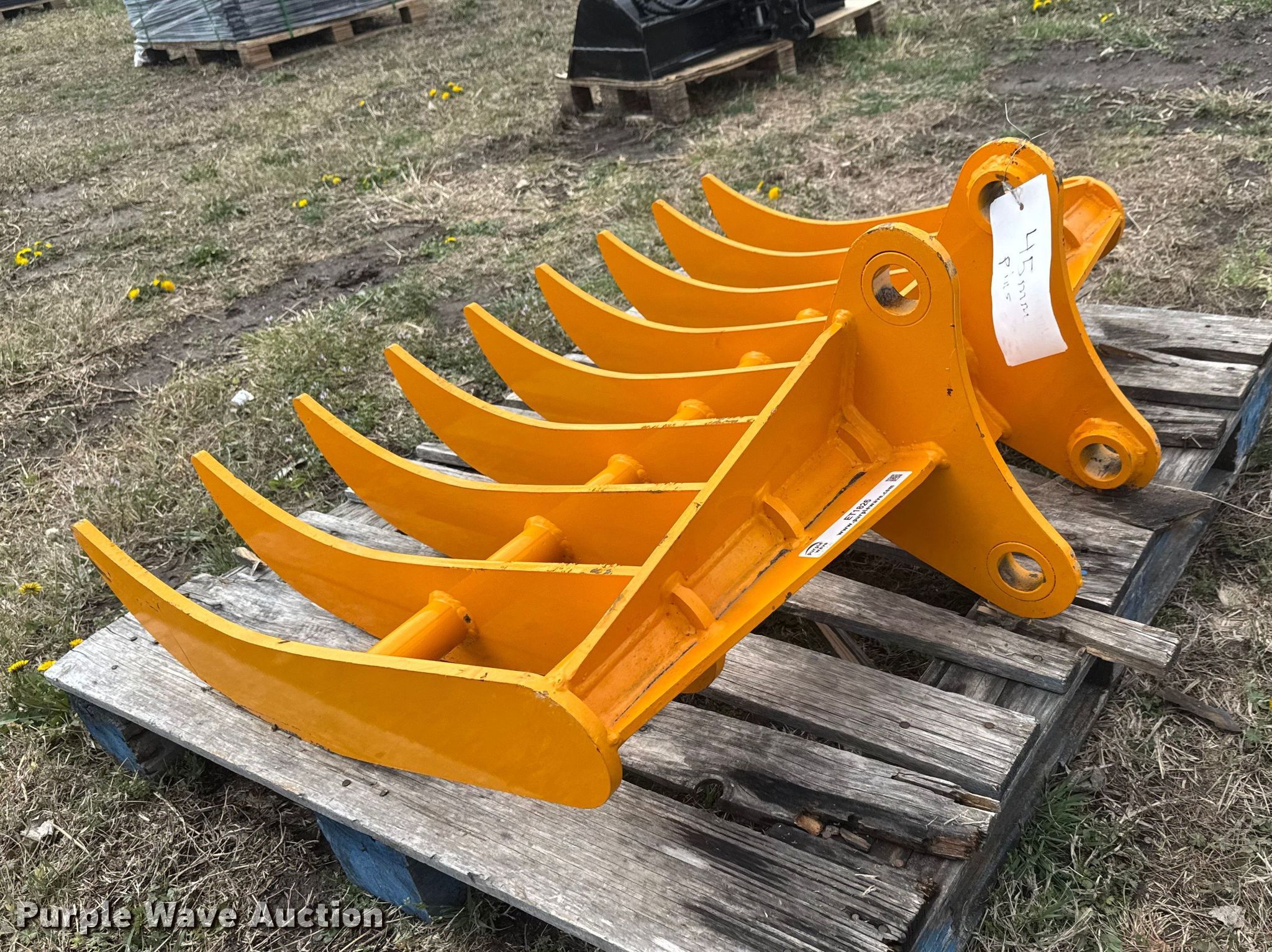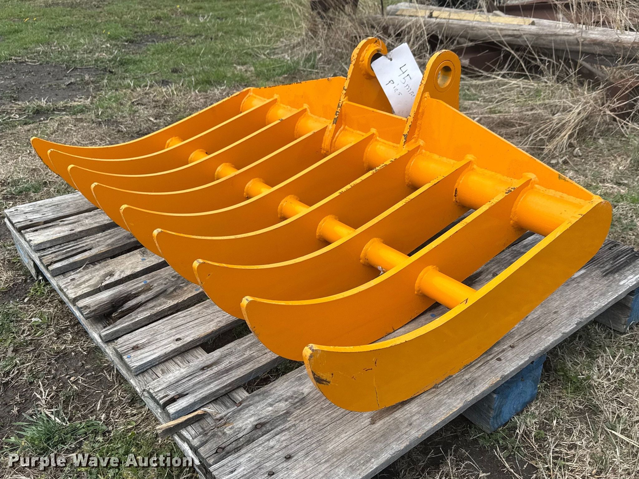 Purple Wave is selling a used Excavator Attach. in Kansas. This item is a Excavator rake with the following: Width: 45", Pins: 45mm, Unused