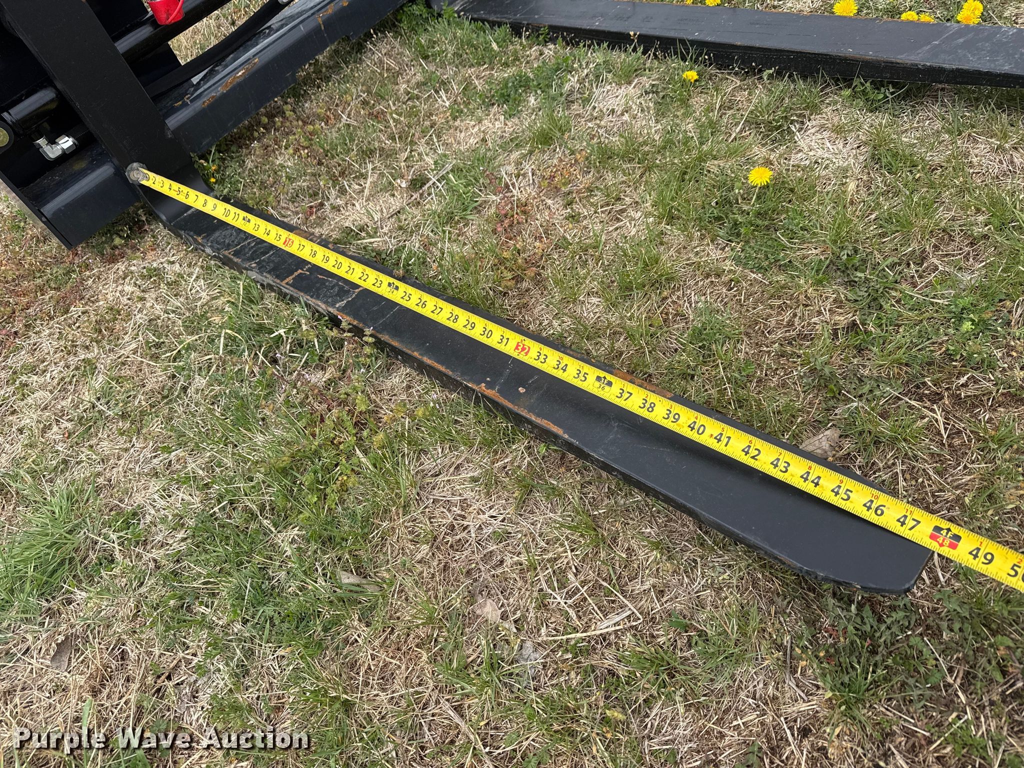 Purple Wave is selling a used Skid Steer Attach. in Kansas. This item is a 2025 Wolverine PFA-11-3300G skid steer forks with the following: Serial: ZW-03227, Length: 48", Fork positioner