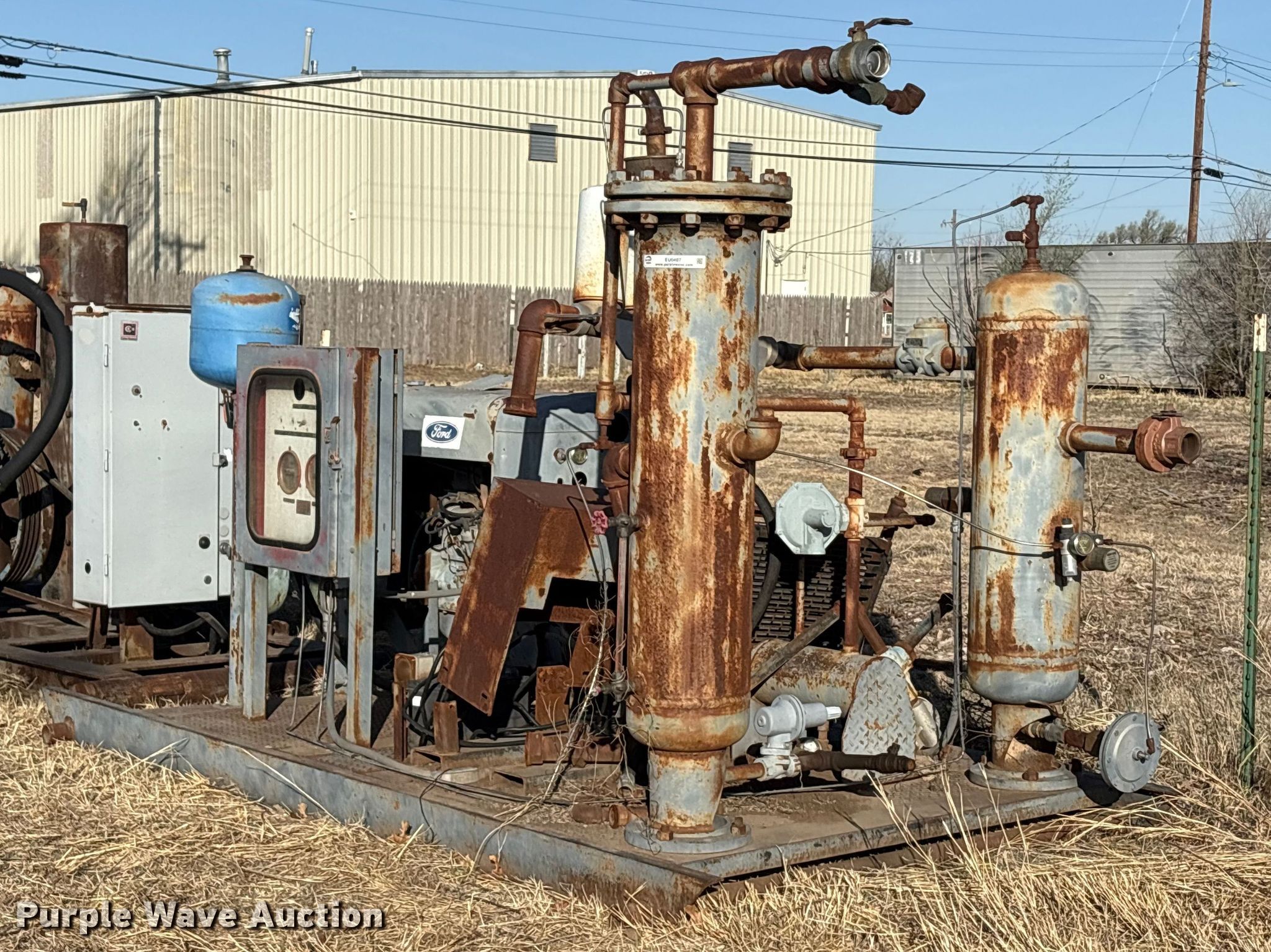 Murphy Matic air compressor. Hours: Unknown, Serial: 35-21-00-2978. Engine Ford, Cylinders: 6, Fuel type: Natural gas. Features Air compressor Skid mounted. Notes Parts missing , Non-operational unit. Helton Petroleum. Pampa, TX 79065