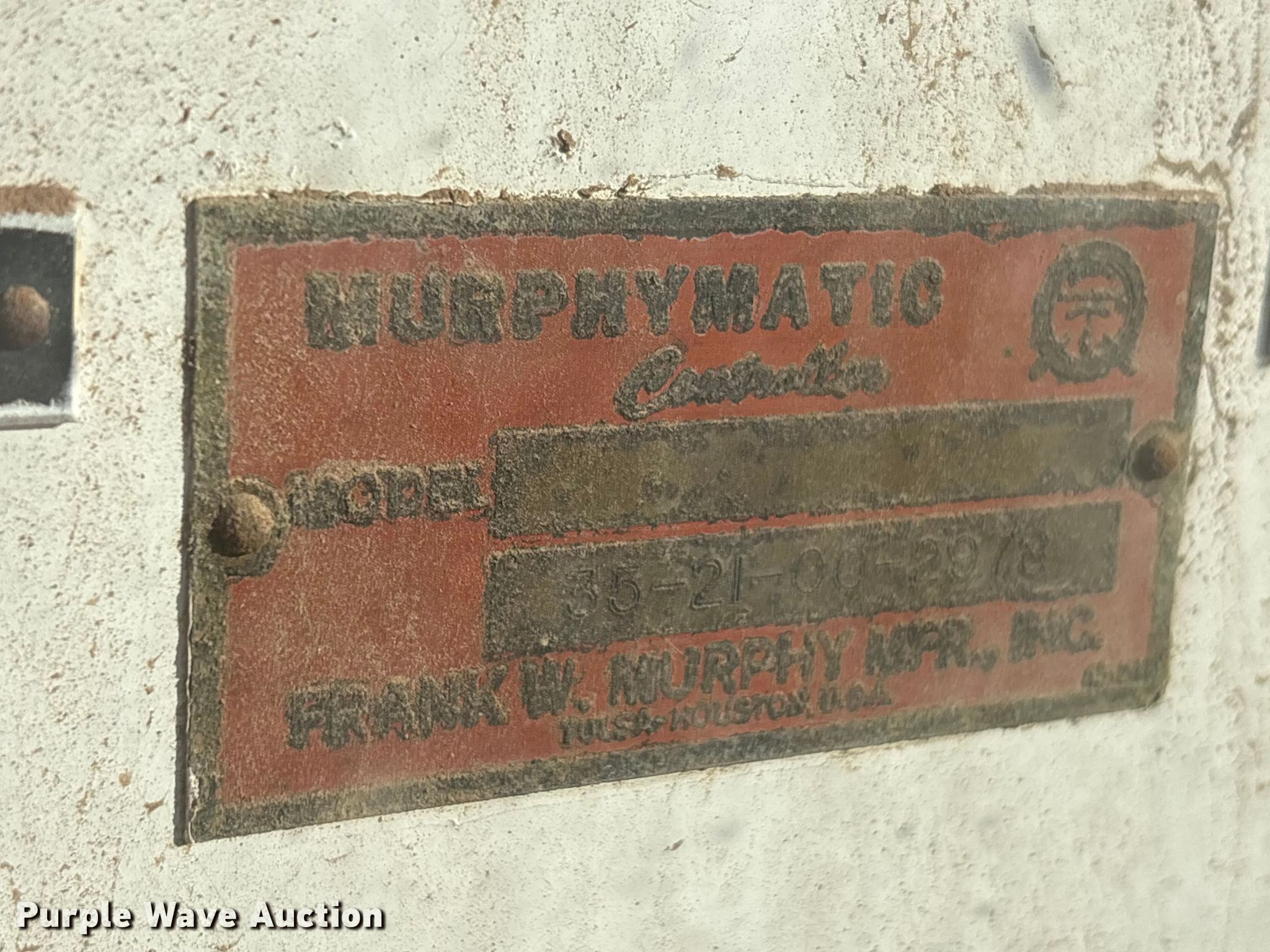Purple Wave is selling a used Air Compressor in Texas. This item is a Murphy Matic air compressor with the following: Hours: Unknown, Serial: 35-21-00-2978