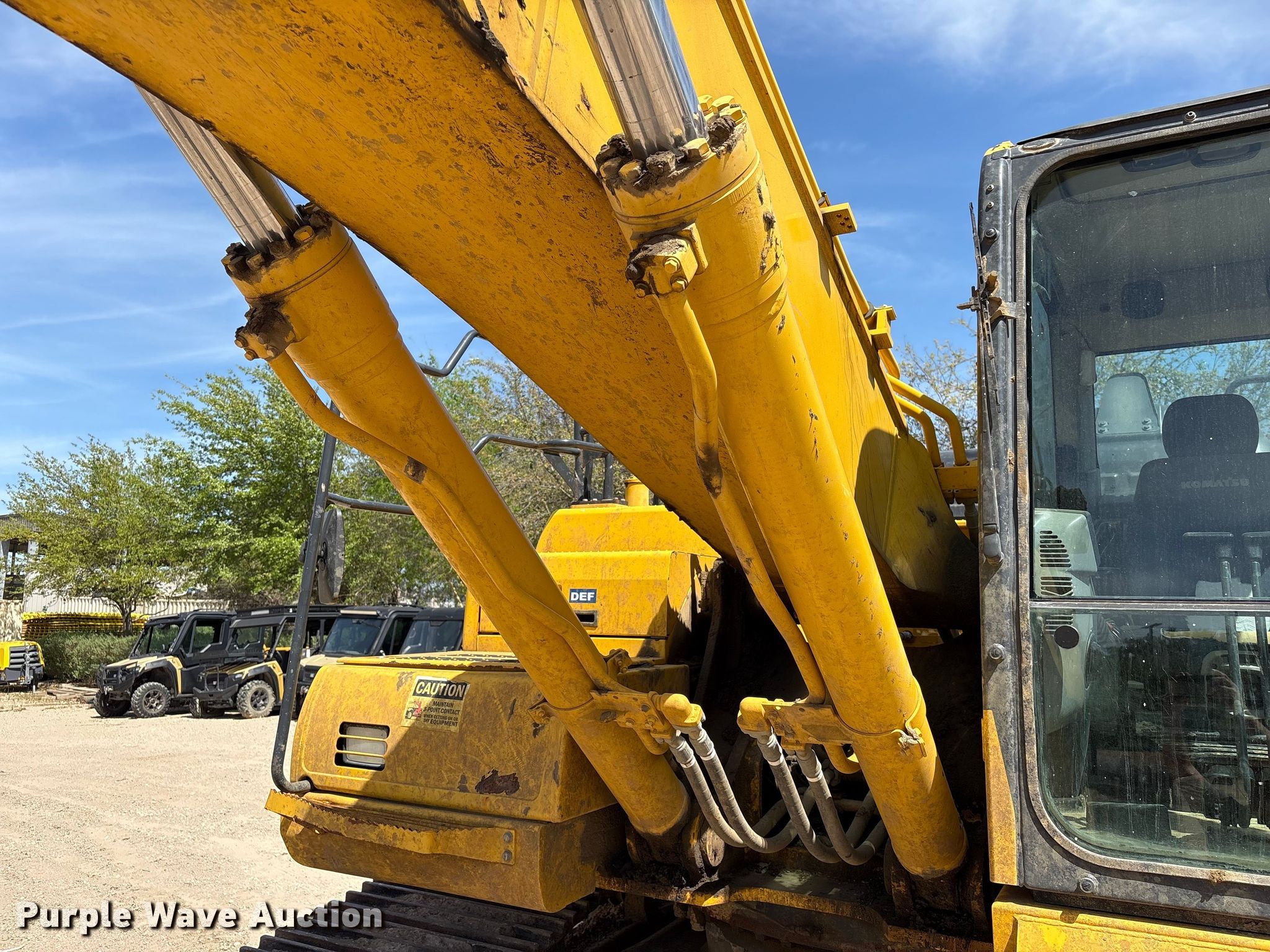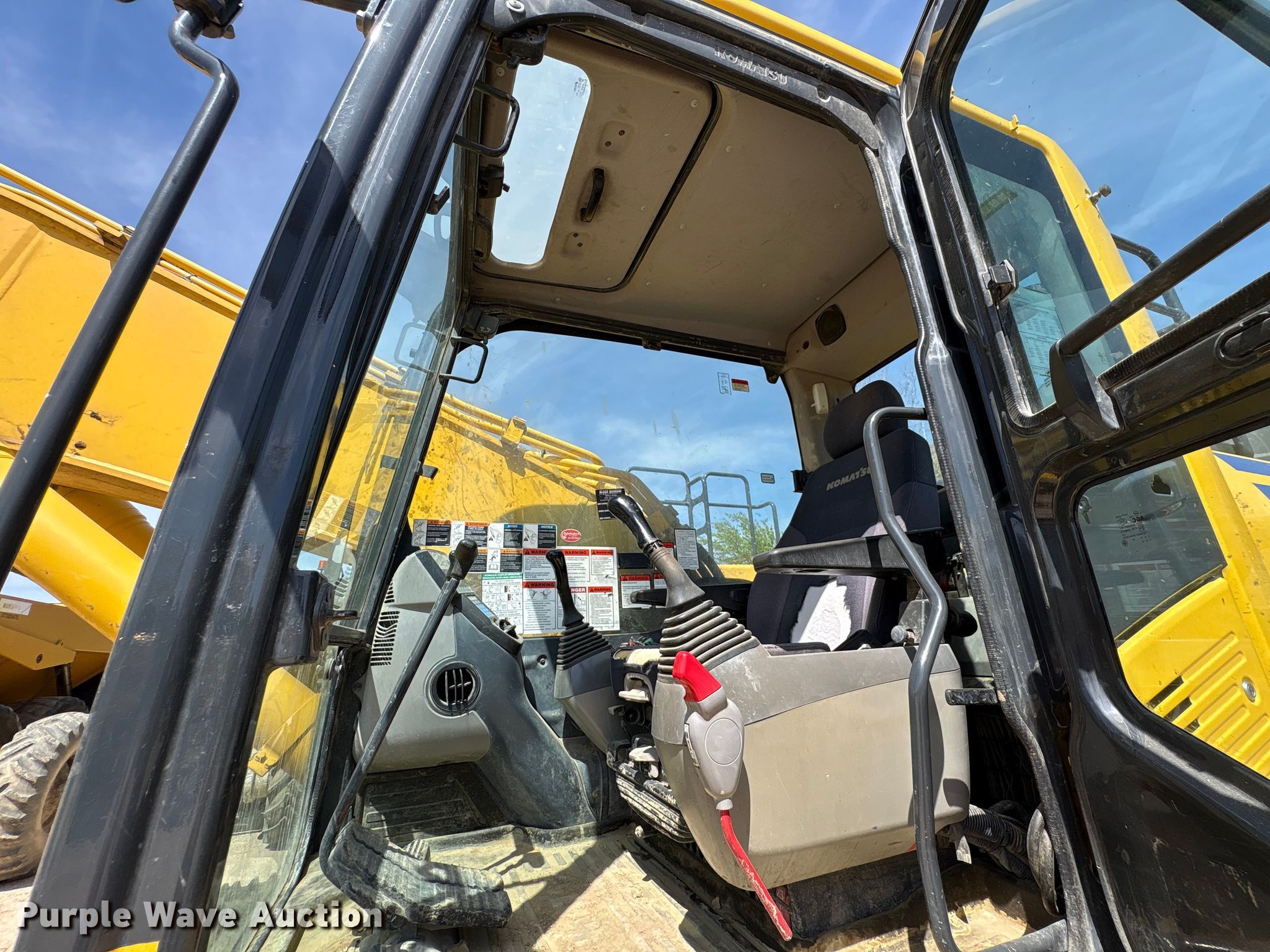 2021 Komatsu PC360LC-11 excavator. Hours: 9,033 on meter, Serial: KMTPC256ELWA38226. Engine Komatsu SAA6D114E-6, Serial: 74709850, Displacement: 8.9L, Cylinders: 6, Fuel type: Diesel, HP: 271. Transmission Hydrostatic. Operators station Enclosed cab, AC, Heat, Backup camera, Pattern changer. Features Standard, Boom Standard, Stick Stick length: 10' 5", Quick coupler: Hydraulic JRB, Bucket Hensley, Width: 61", Cutting edge: Weld-on, Teeth: 6. Tracks Width: 33", Steel, Grouser pads: Triple. Mustang CAT. Houston, TX 77040