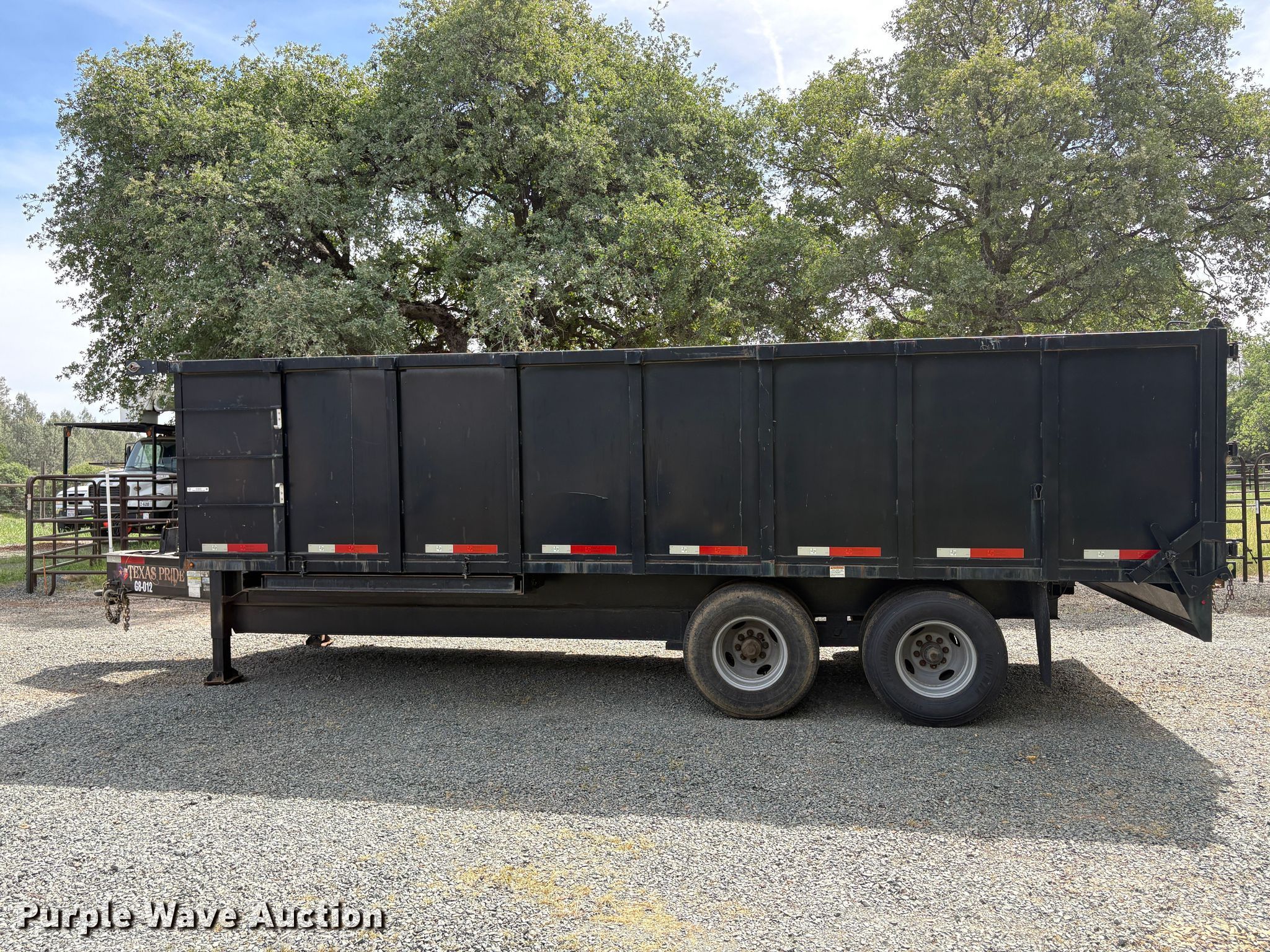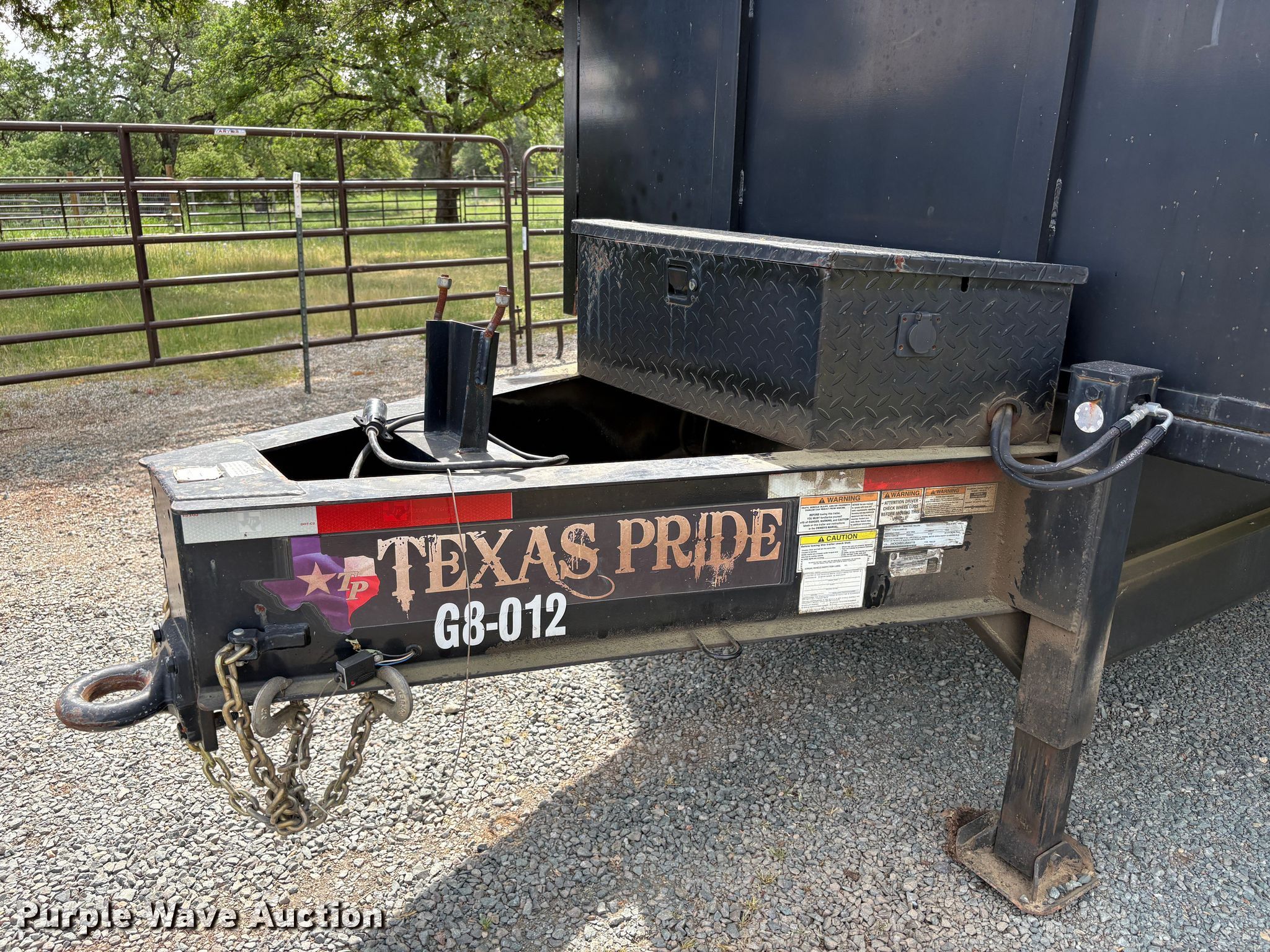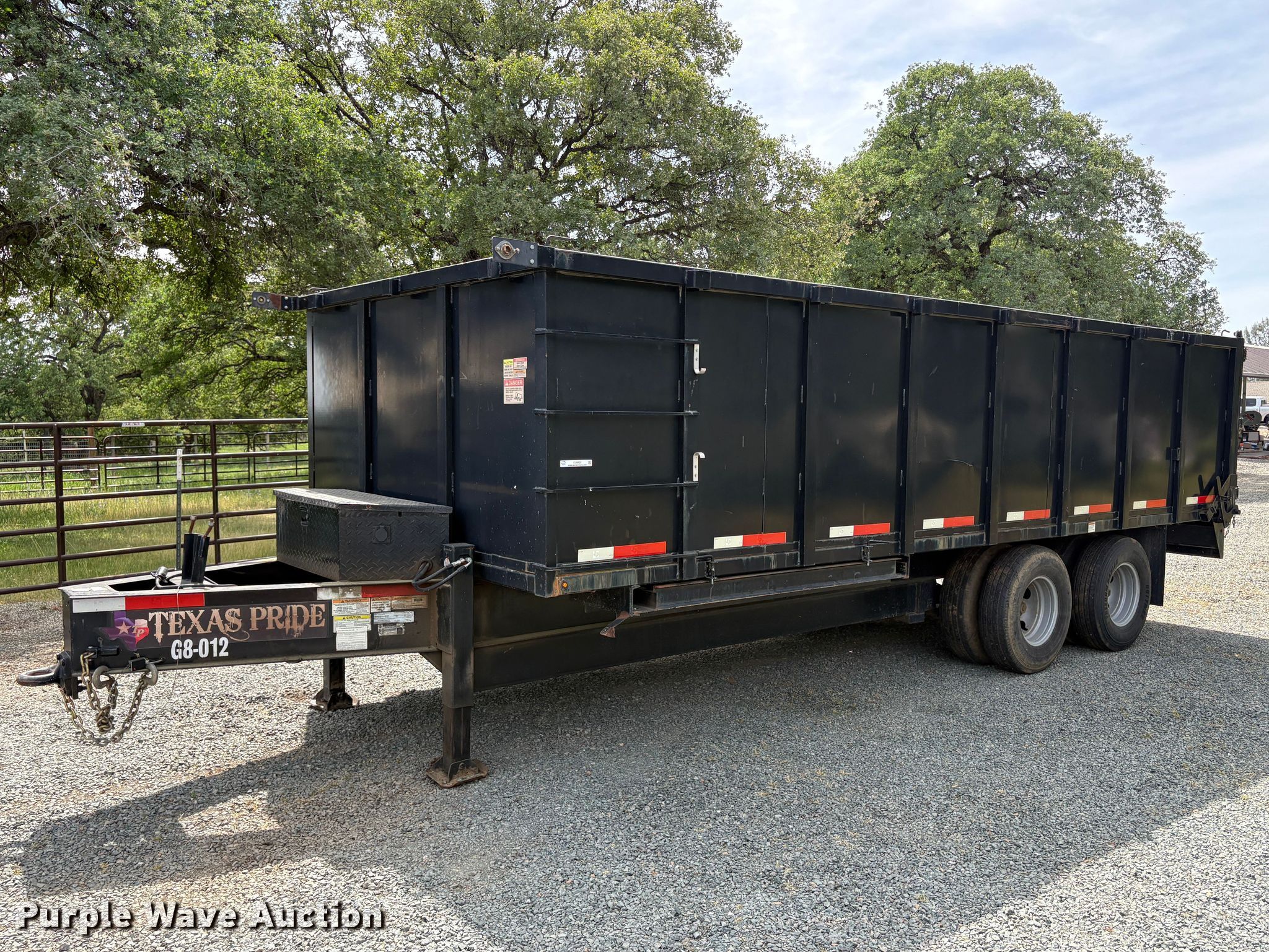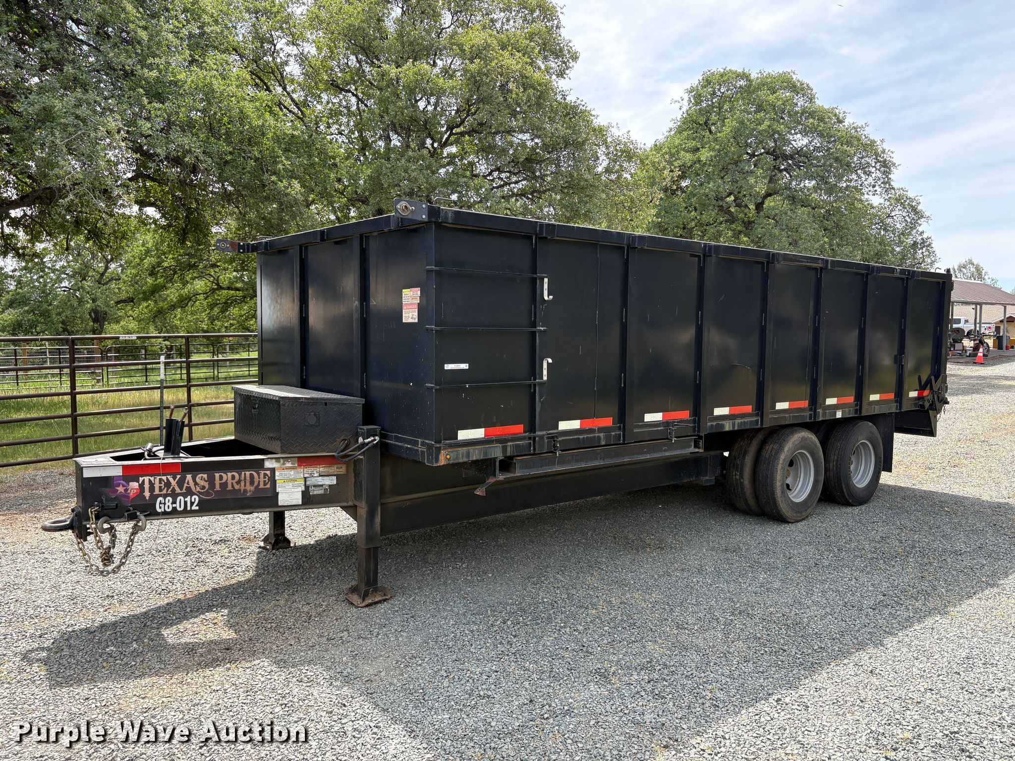 2018 Texas Pride DT82024KPH dump trailer. VIN: 7HCK2HBD2JB003778. Dimensions Overall Length: 26', Width: 8', Body Length: 20' 1", Width: 8', Side height: 4'. Features Body type: Steel, Ram: Dual, End gate: Manual, Trailer controls. Chassis Hitch: Pintle, Landing gear: Dual, Hydraulic, Suspension: Spring, Brakes: Electric, Axles: Tandem, GVWR: 26,000 lbs, GAWR: 12,000 lbs. Tires Aluminum wheels, Size: 235/85R16. Transfer of ownership documentation will be a bill of sale. Greentek Fleet Liquidation. Smartsville, CA 95977