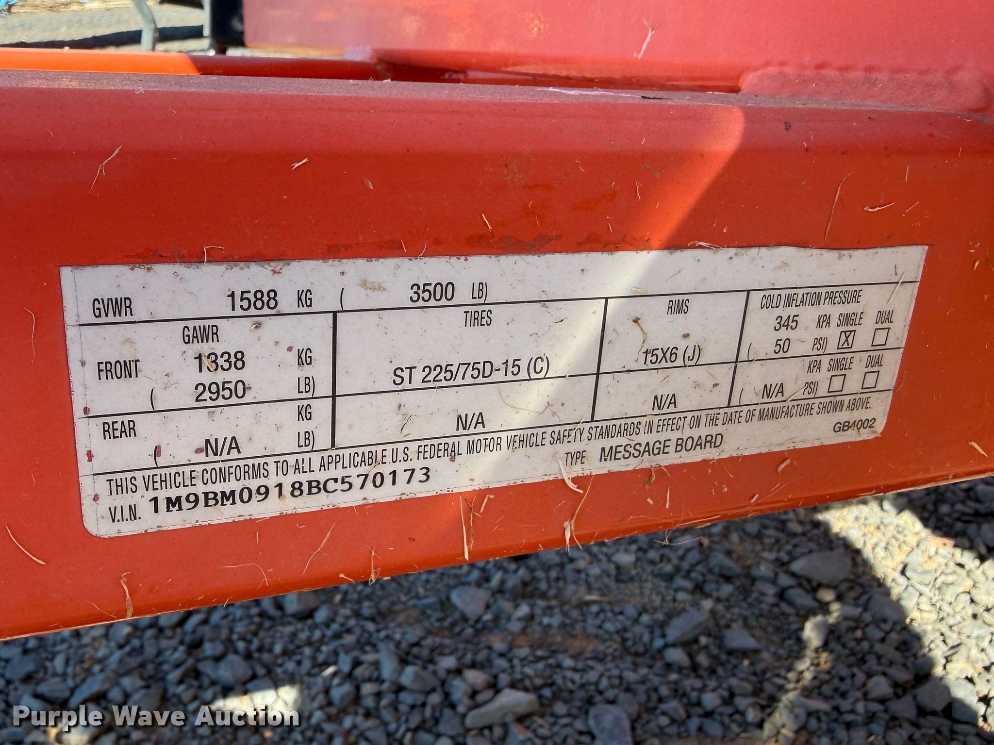 Purple Wave is selling a used Road Safety Equip. in California. This item is a 2011 WANCO Mini Matrix message board trailer with the following: VIN: 1M9BM0918BC570173