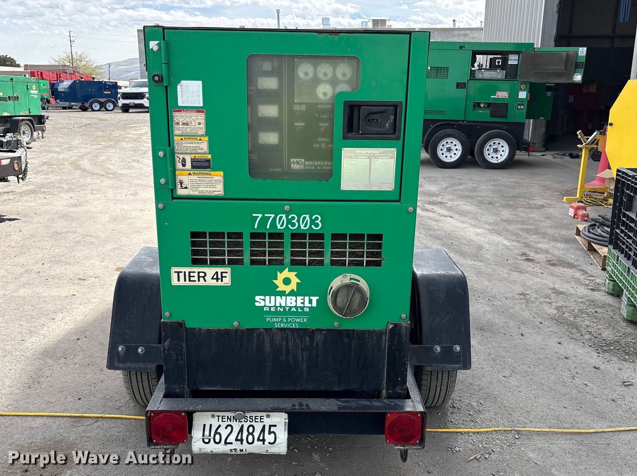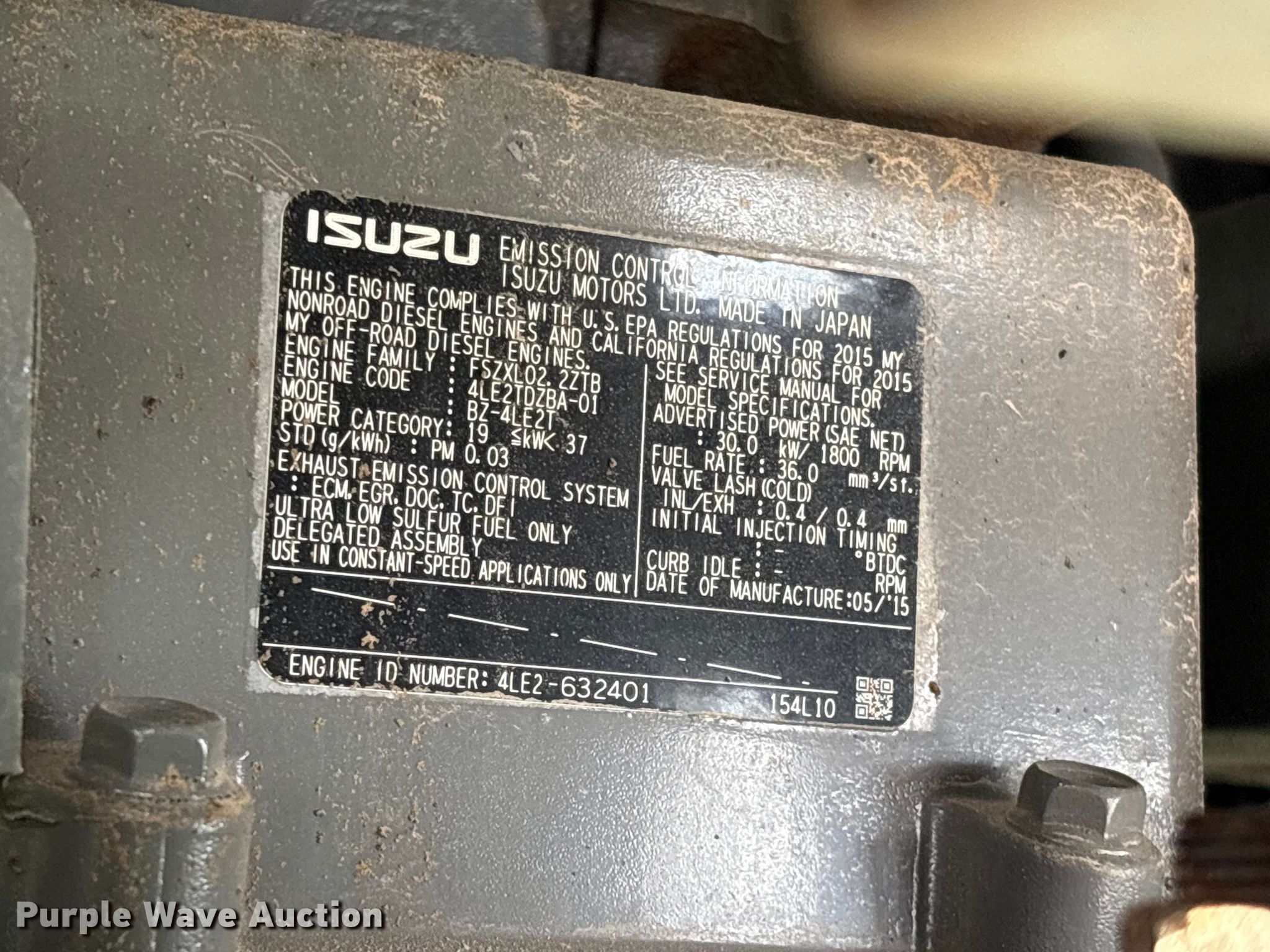2015 Multiquip WhisperWattDCA-25SSIU4F generator. Hours: 4,414 on meter Actual hours unknown, Serial: 7151266. Engine Isuzu 4LE2TDZBA-01, Serial: 4LE2-632401, Displacement: 2.1L, Cylinders: 4, Fuel type: Diesel. Features Generator Denying DF-0270I2, kVA: 25, kW: 20, Phase: Single, Three, Electric start, Fuel tank. Trailer 2015 Multiquip, VIN: 4GNBG0915FB039489, Hitch: Pintle, Suspension: Spring, Axles: Single, Tire size: 175/80R13, GVWR: 2,720 lbs. This is worksite support equipment and will not come with a title. Transfer of ownership documentation will be a bill of sale. Sunbelt Rental - Reno Power & HVAC. Sparks, NV 89431