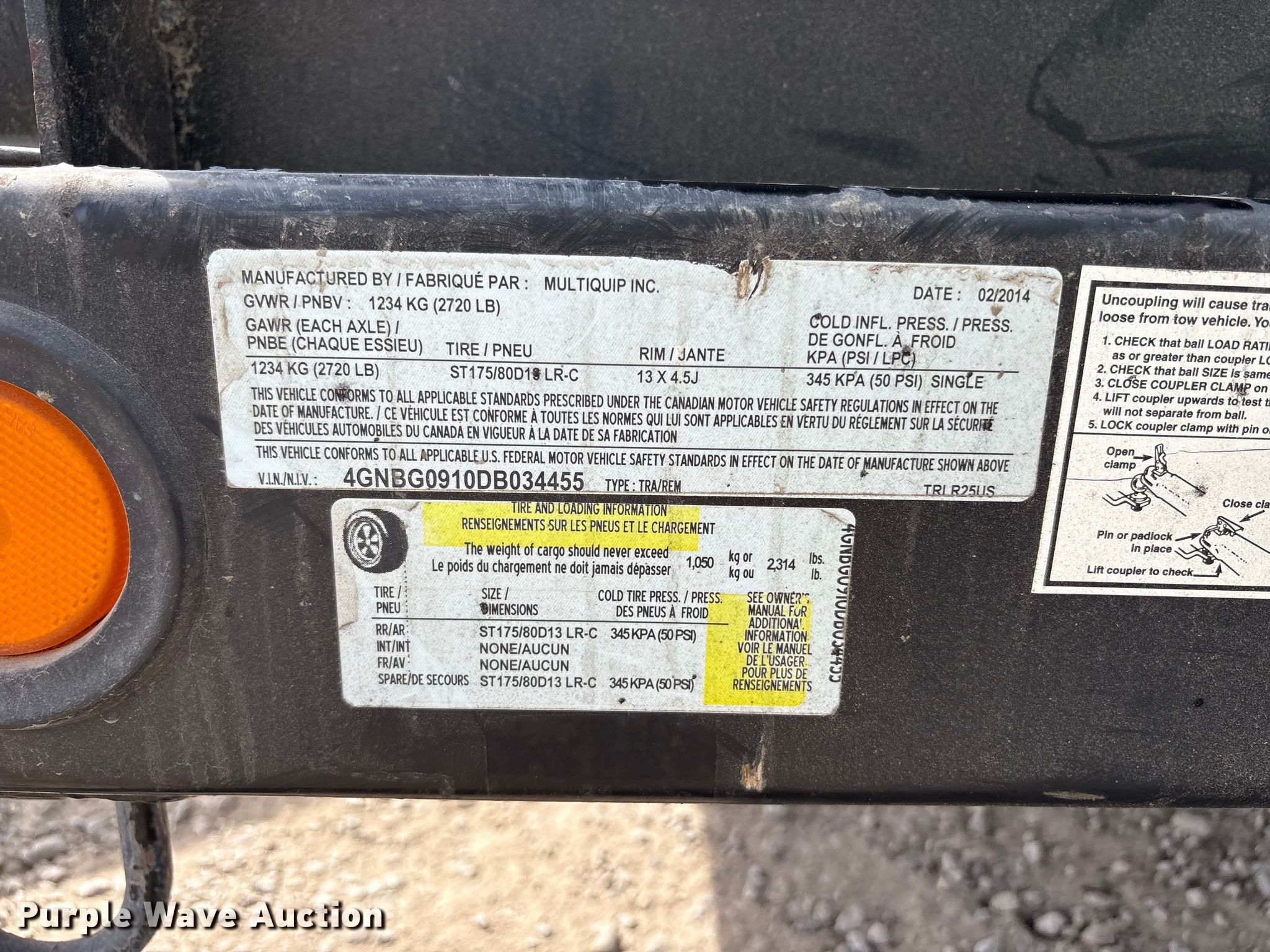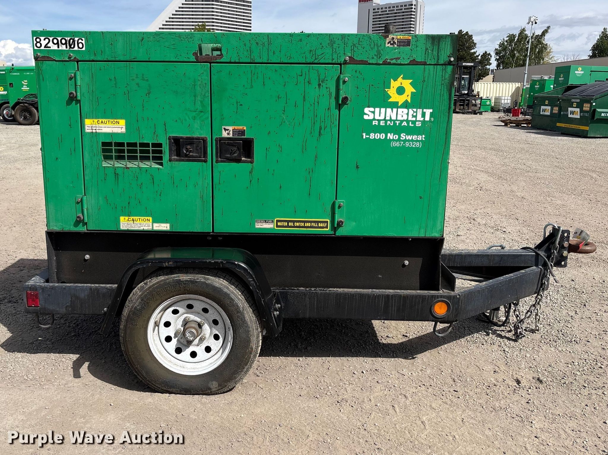 2013 Multiquip DCA-25SSIU4F generator. Hours: 2,883 on meter. Engine Isuzu BZ-4LE2T, Serial: 4LE2-638119, Displacement: 2.2L, Cylinders: 4, Fuel type: Diesel. Features Generator Denying DF-027012, kVA: 25, kW: 20, Phase: Single, Three, Electric start, Fuel tank. Trailer 2014 Multiquip TRLR25US, VIN: 4GNBG0910DB034455, 10' 5" L x 56" W, Hitch: Pintle, Suspension: Spring, Axles: Single, Tire size: 175/80R13, GVWR: 2,720 lbs. Notes Fuel leak, Jump start required during on-site data collection. This is worksite support equipment and will not come with a title. Transfer of ownership documentation will be a bill of sale. Sunbelt Rental - Reno Power & HVAC. Sparks, NV 89431