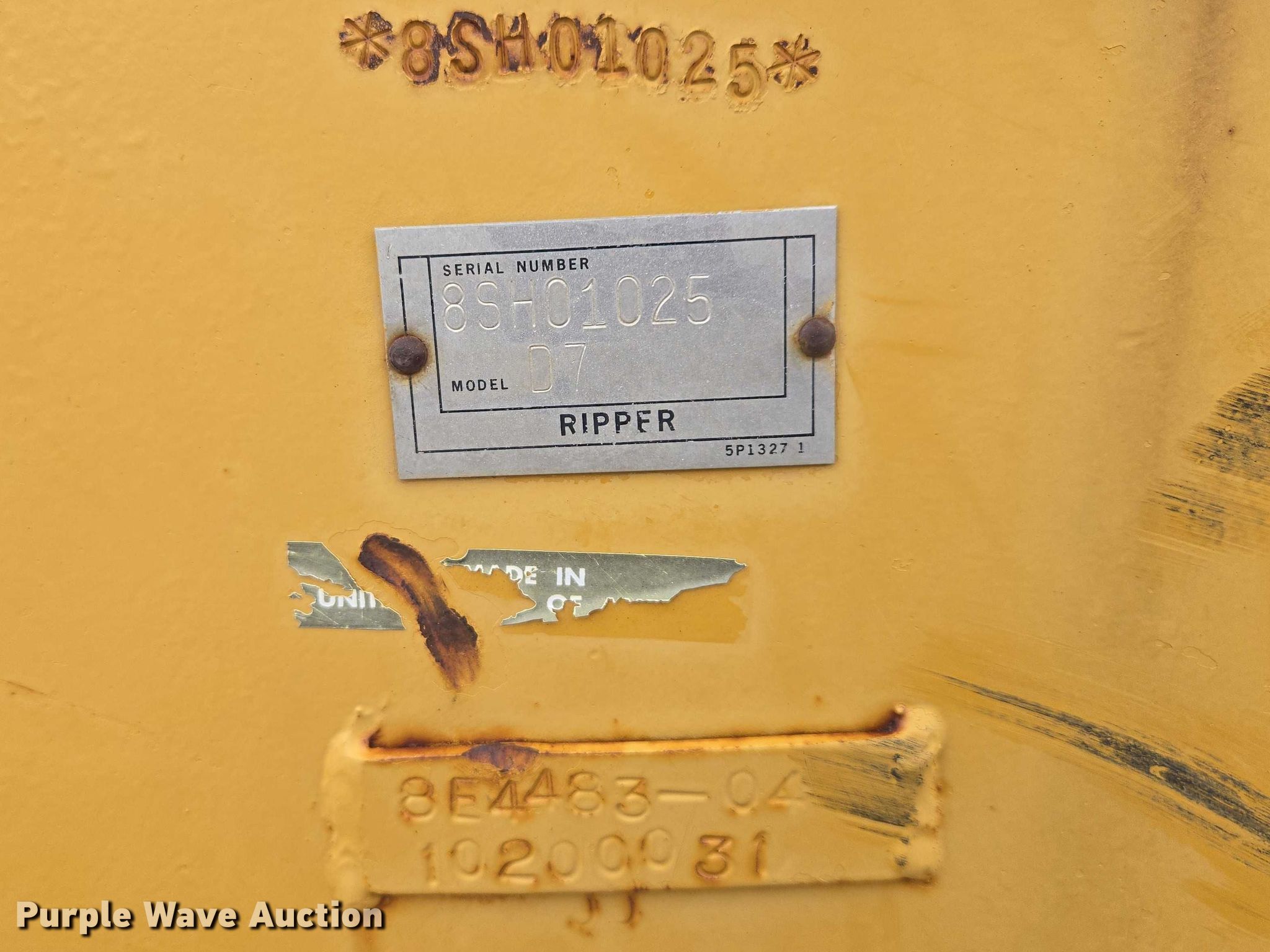 Purple Wave is selling a used Crawler Attach. in South Dakota. This item is a Caterpillar ripper with the following: Serial: 8SH01025