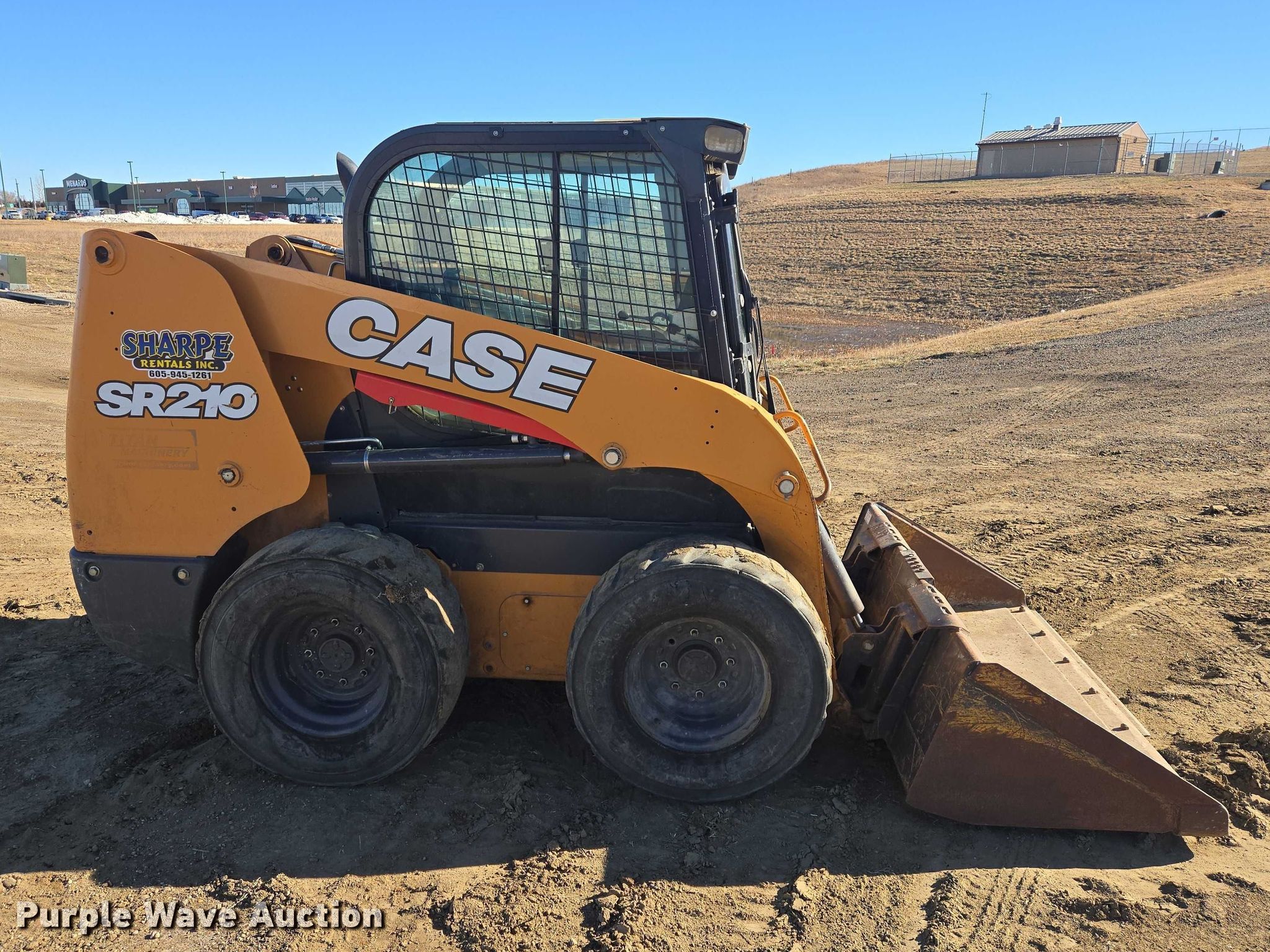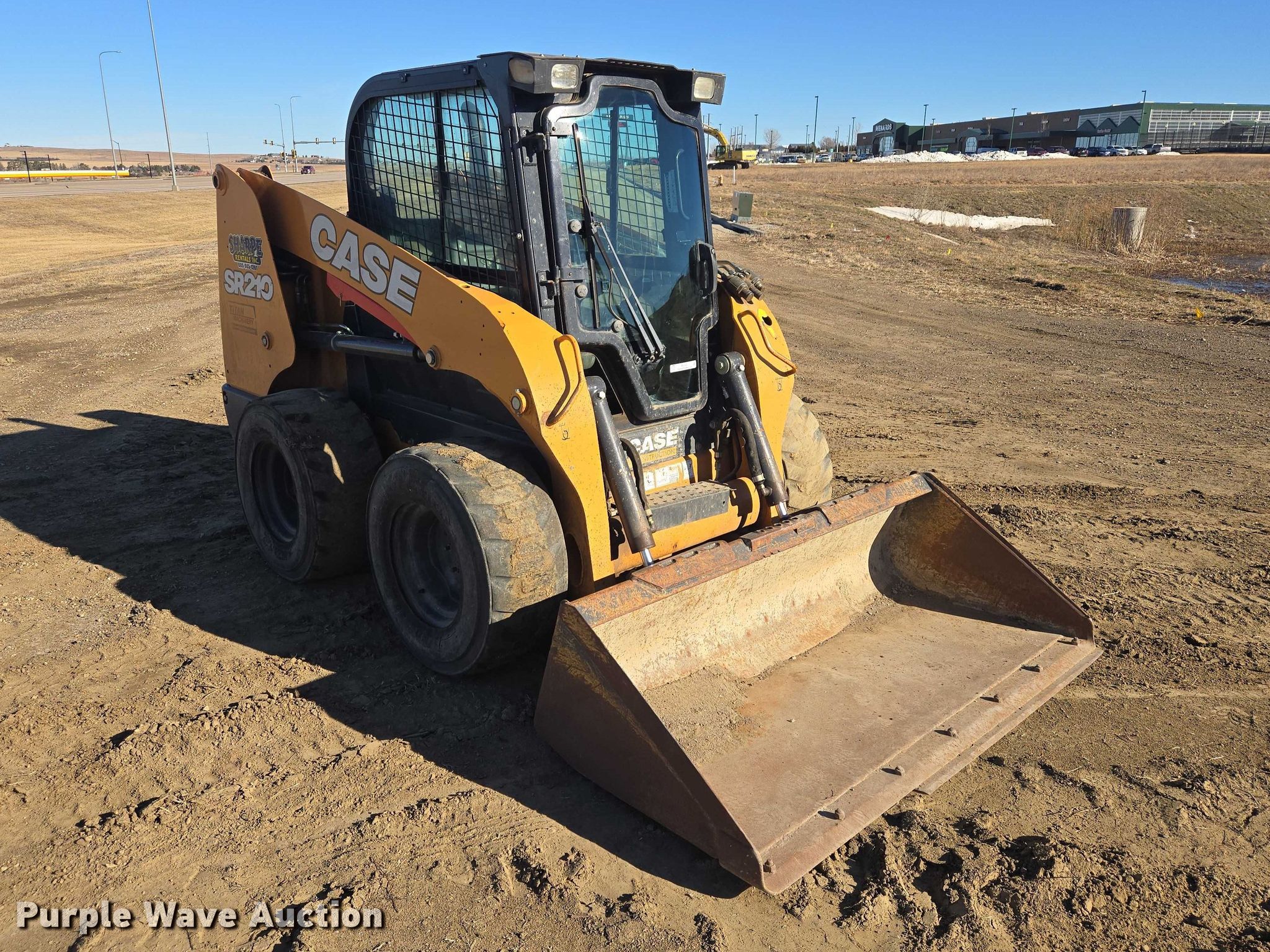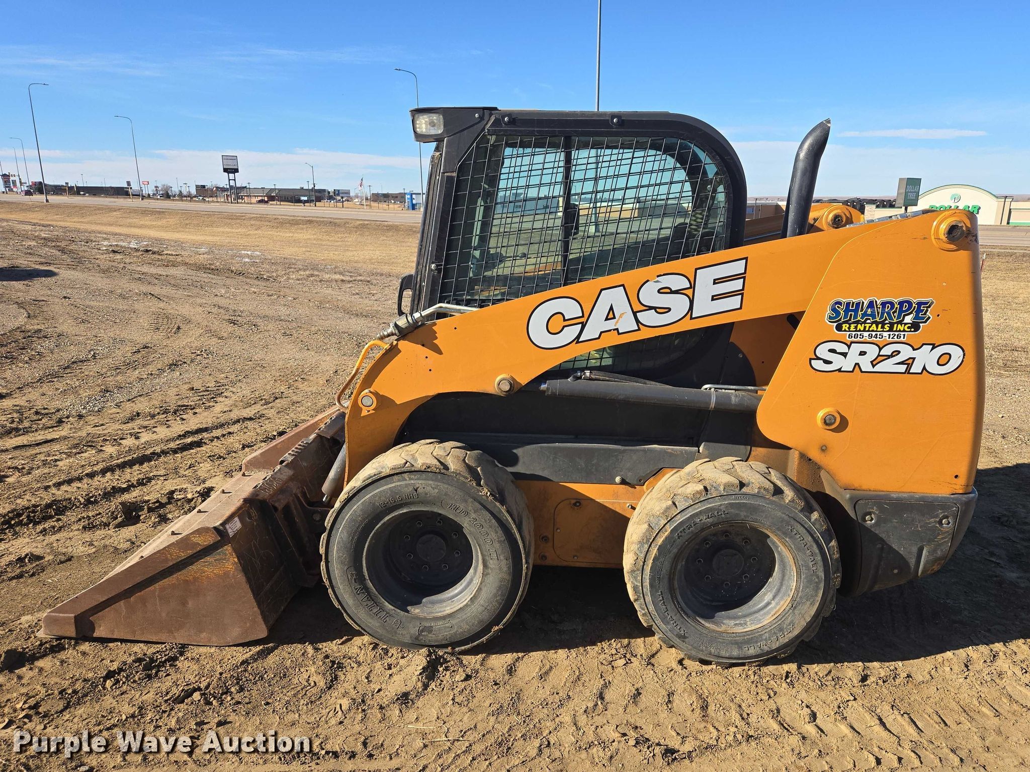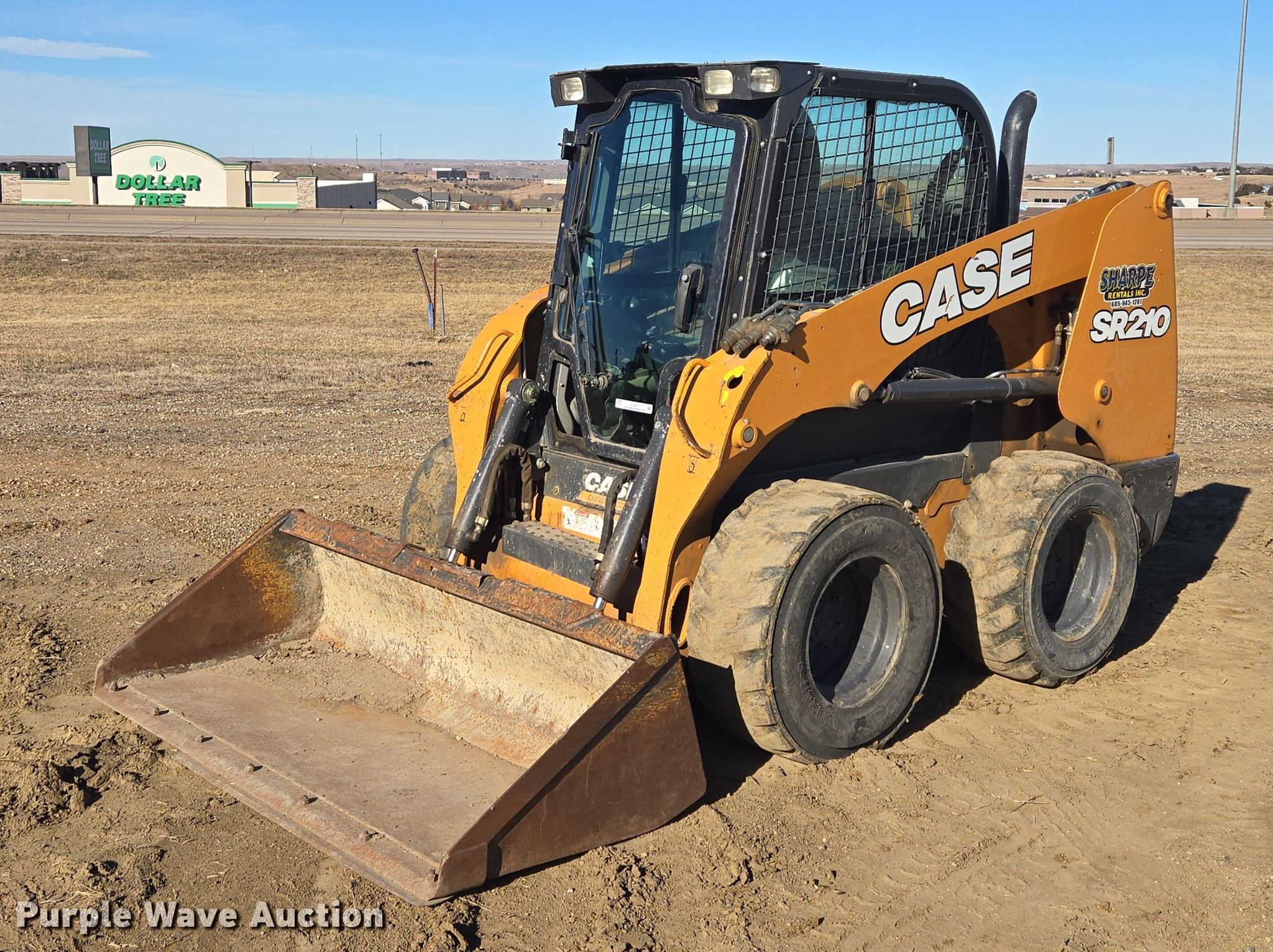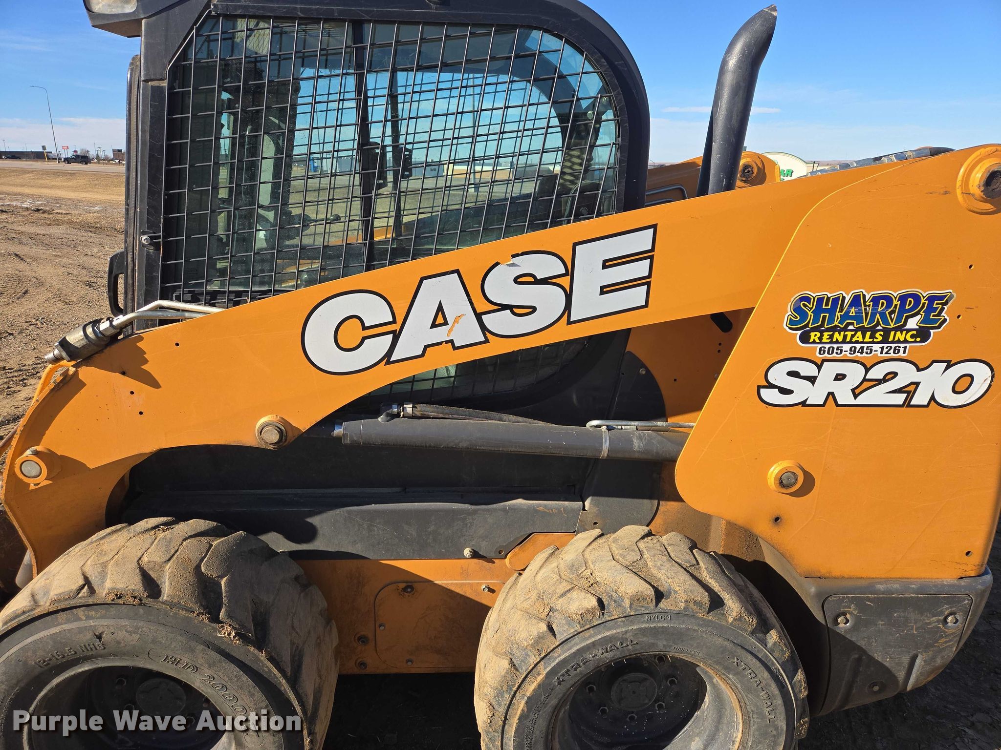 2019 Case SR210 skid steer loader. Hours: 3,677 on meter, Serial: JAFSR210PKM460857, Unit #: 61029. Engine Cylinders: 4, Fuel type: Diesel. Transmission Hydrostatic. Operators station Enclosed cab, AC, Heat, Bucket control: Hand. Features Auxiliary hydraulics, Quick coupler: Manual, Bucket CNH, Width: 72", Cutting edge: Bolt-on. Tires Size: 12-16.5. Sharpe Rentals, Inc.. Pierre, SD 57501