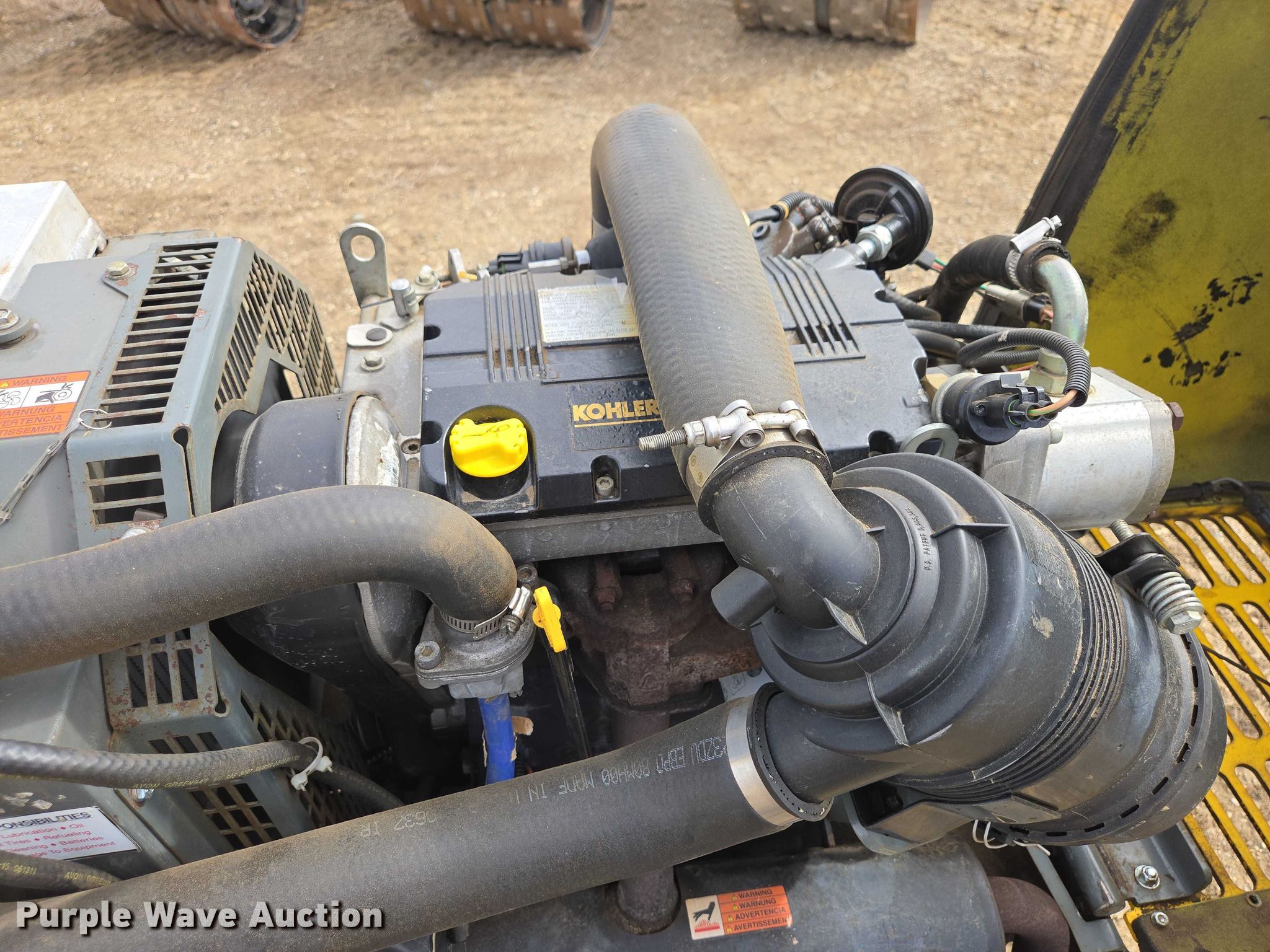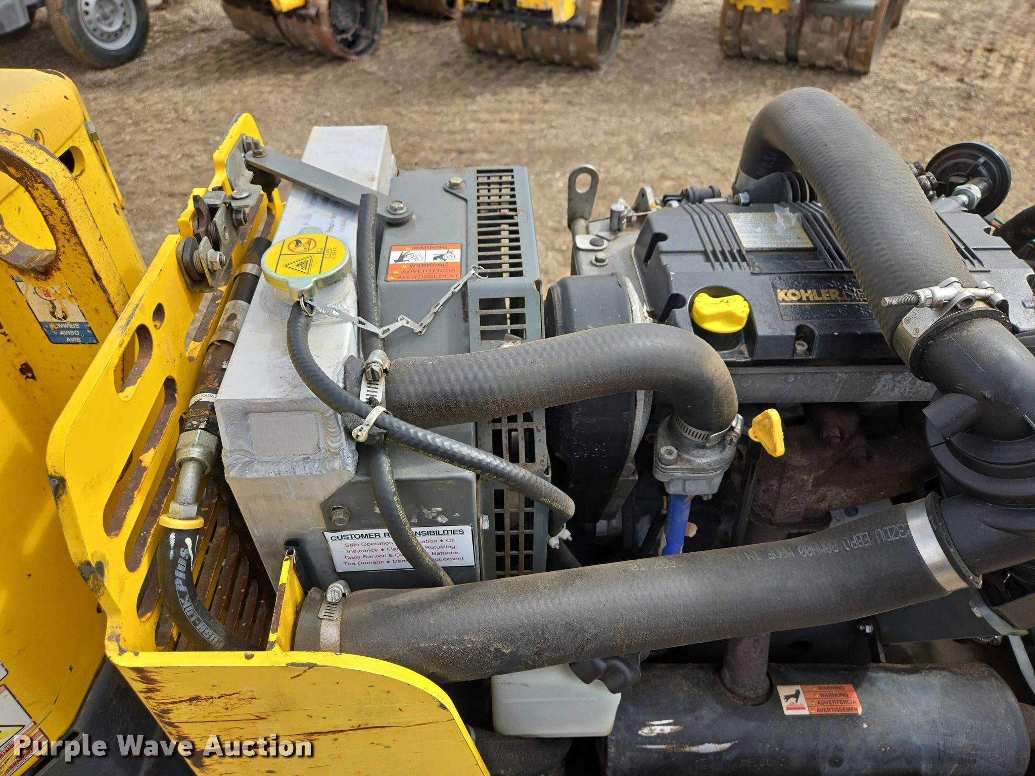 Wacker Neuson RTSC2 trench compactor. Hours: 915 on meter, Unit #: 41019. Engine Kohler, Cylinders: 3, Fuel type: Diesel. Transmission Hydrostatic, Two speed travel. Features Vibratory system Two speed, Drum: Padfoot Width: 32", Diameter: 20", Drum scrapers: Front, Remote control. Notes Drum scrapers missing. Sharpe Rentals, Inc.. Pierre, SD 57501