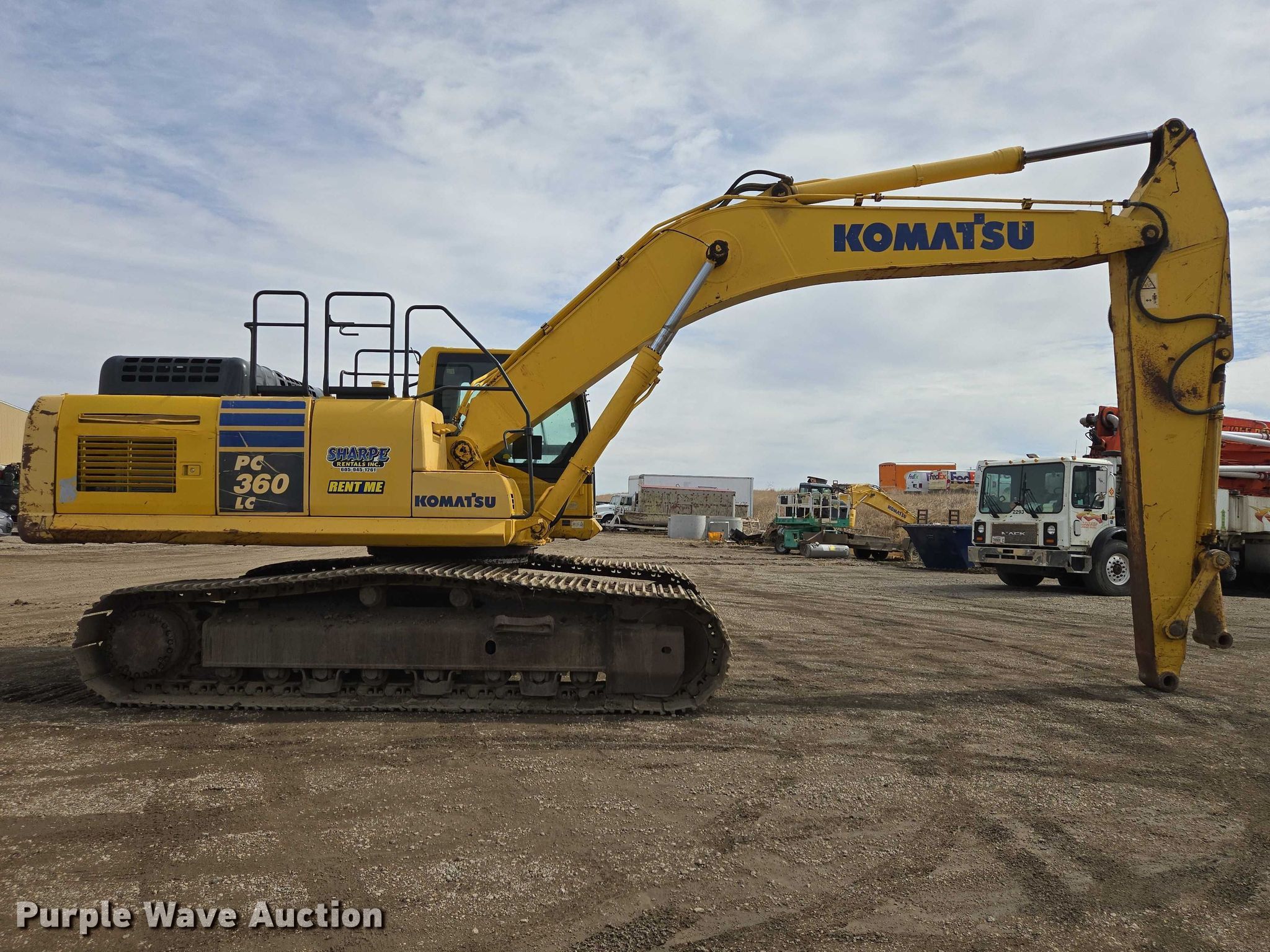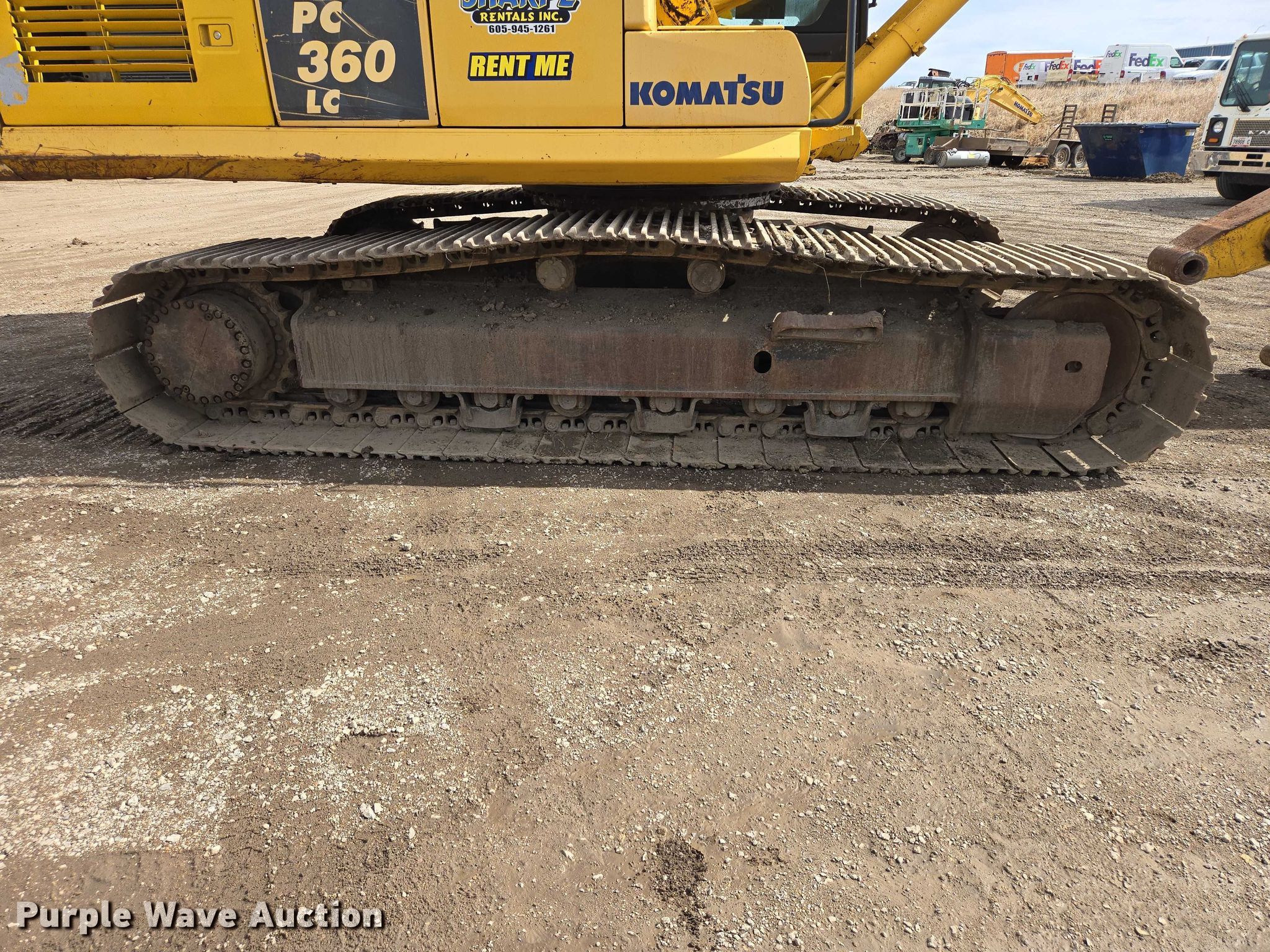 2013 Komatsu PC360LC-10 excavator. Hours: 7,964 on meter, Serial: KMTPC241C54A32870, Unit #: 63024. Engine Komatsu, Cylinders: 6, Fuel type: Diesel. Transmission Hydrostatic, Two speed travel. Operators station Enclosed cab, AC, Heat, Backup camera. Features Counter weights, Removable, Boom Standard, Stick Stick length: 13' 2". Tracks Width: 33", Steel, Grouser pads: Triple. Notes Warning indicator: L04, Glass cracked. Sharpe Rentals, Inc.. Pierre, SD 57501