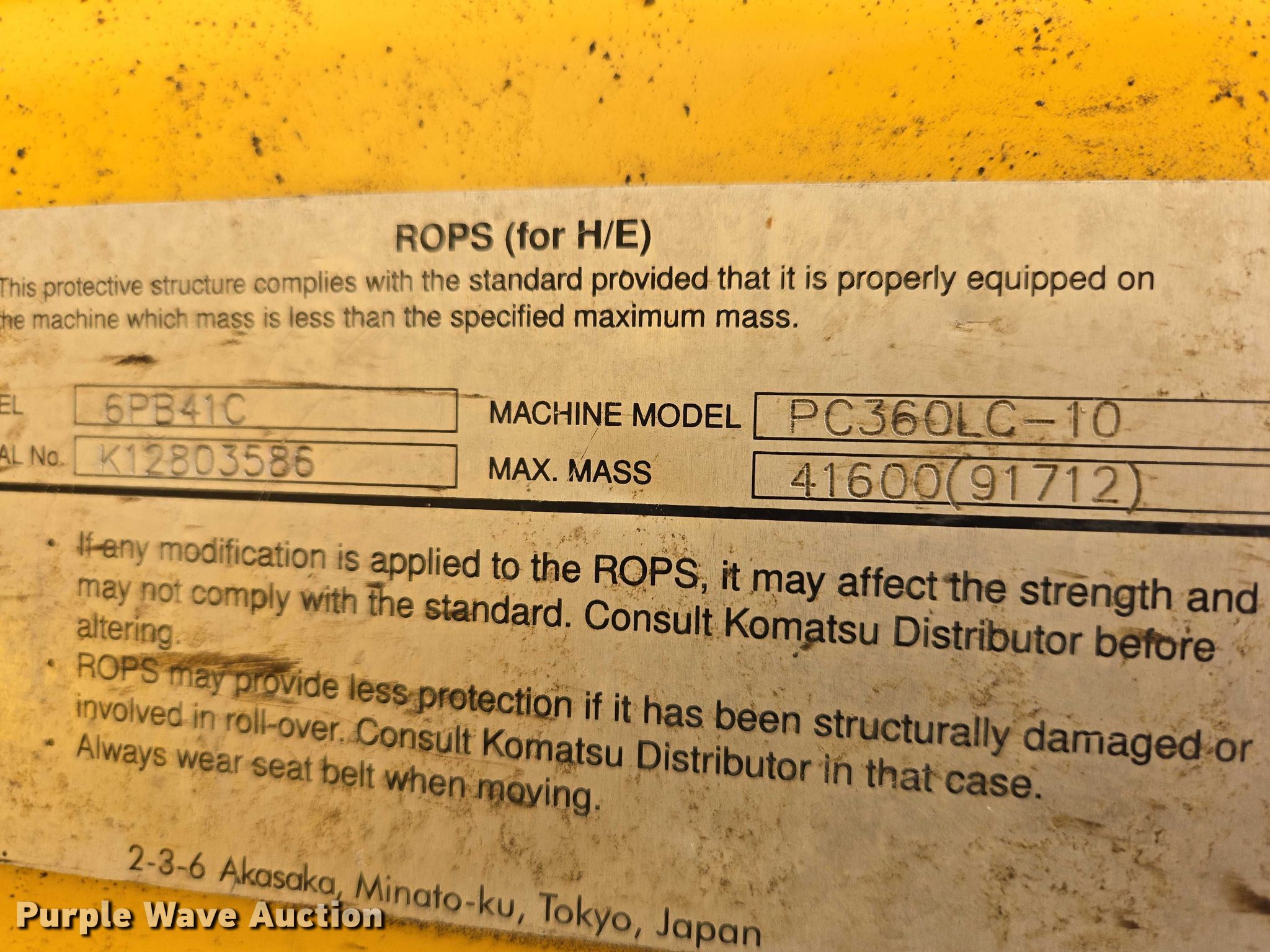 Purple Wave is selling a used Hydraulic Excavator in South Dakota. This item is a 2013 Komatsu PC360LC-10 excavator with the following: Hours: 7,964 on meter, Serial: KMTPC241C54A32870, Unit #: 63024