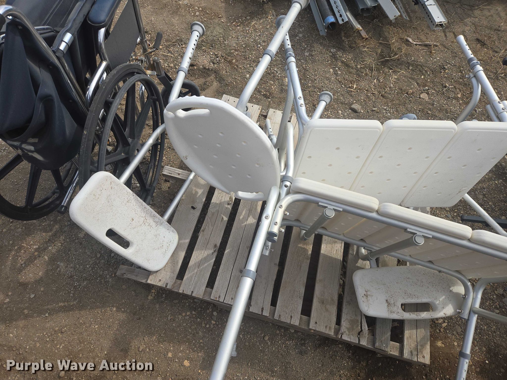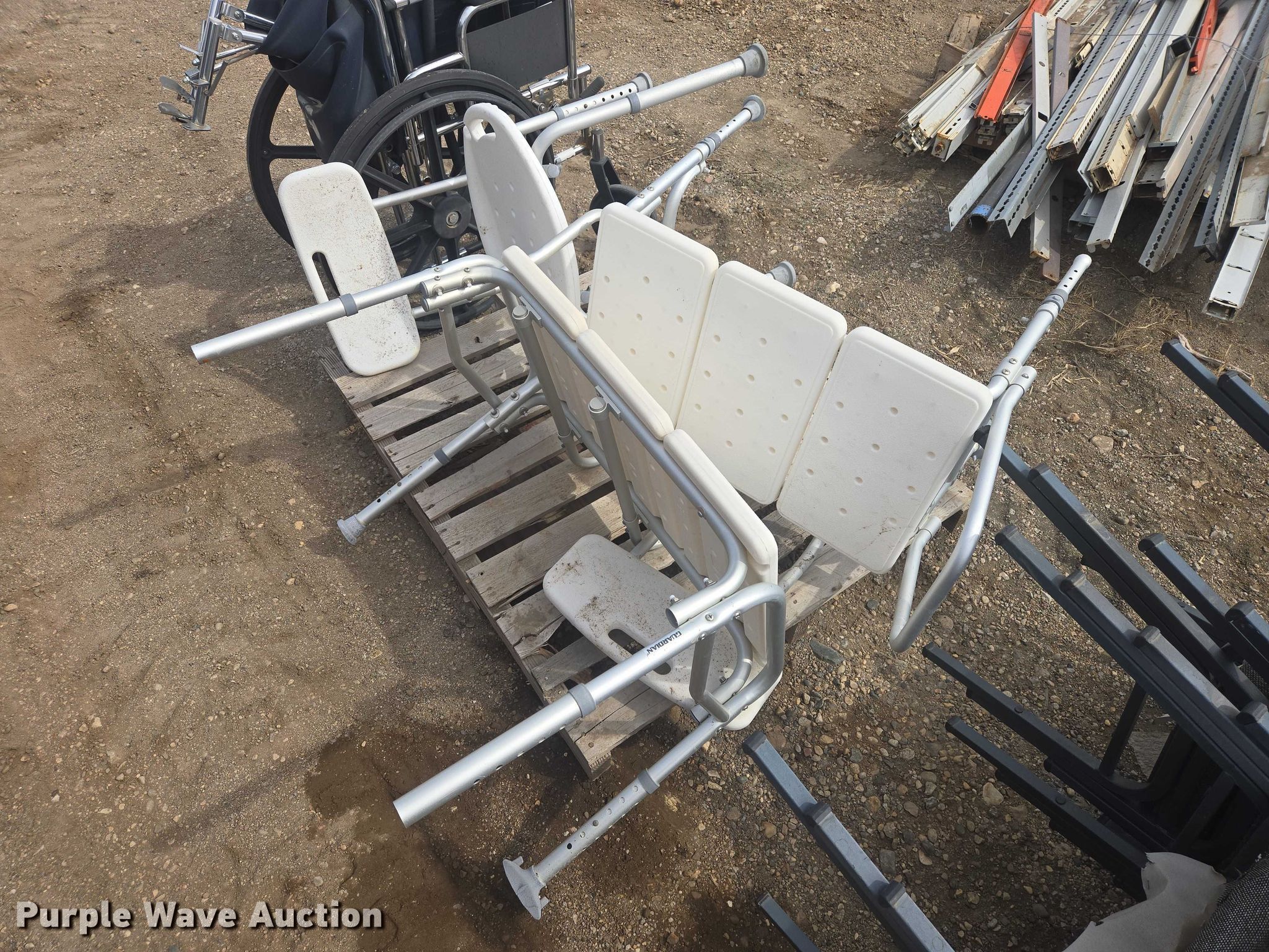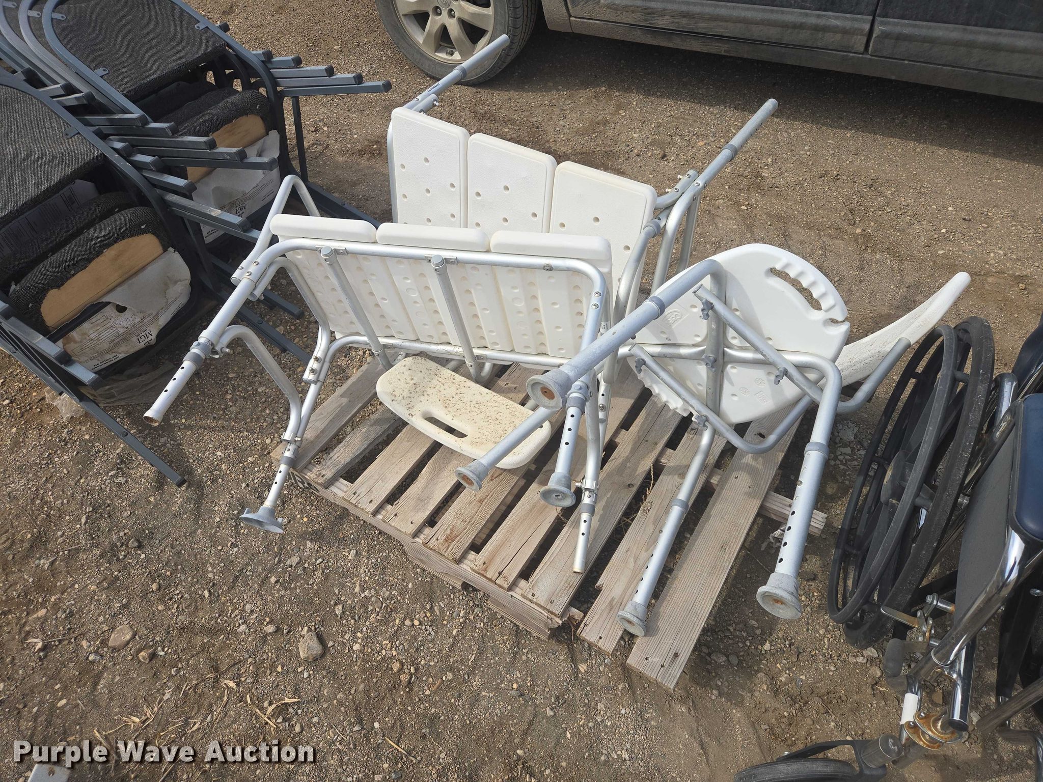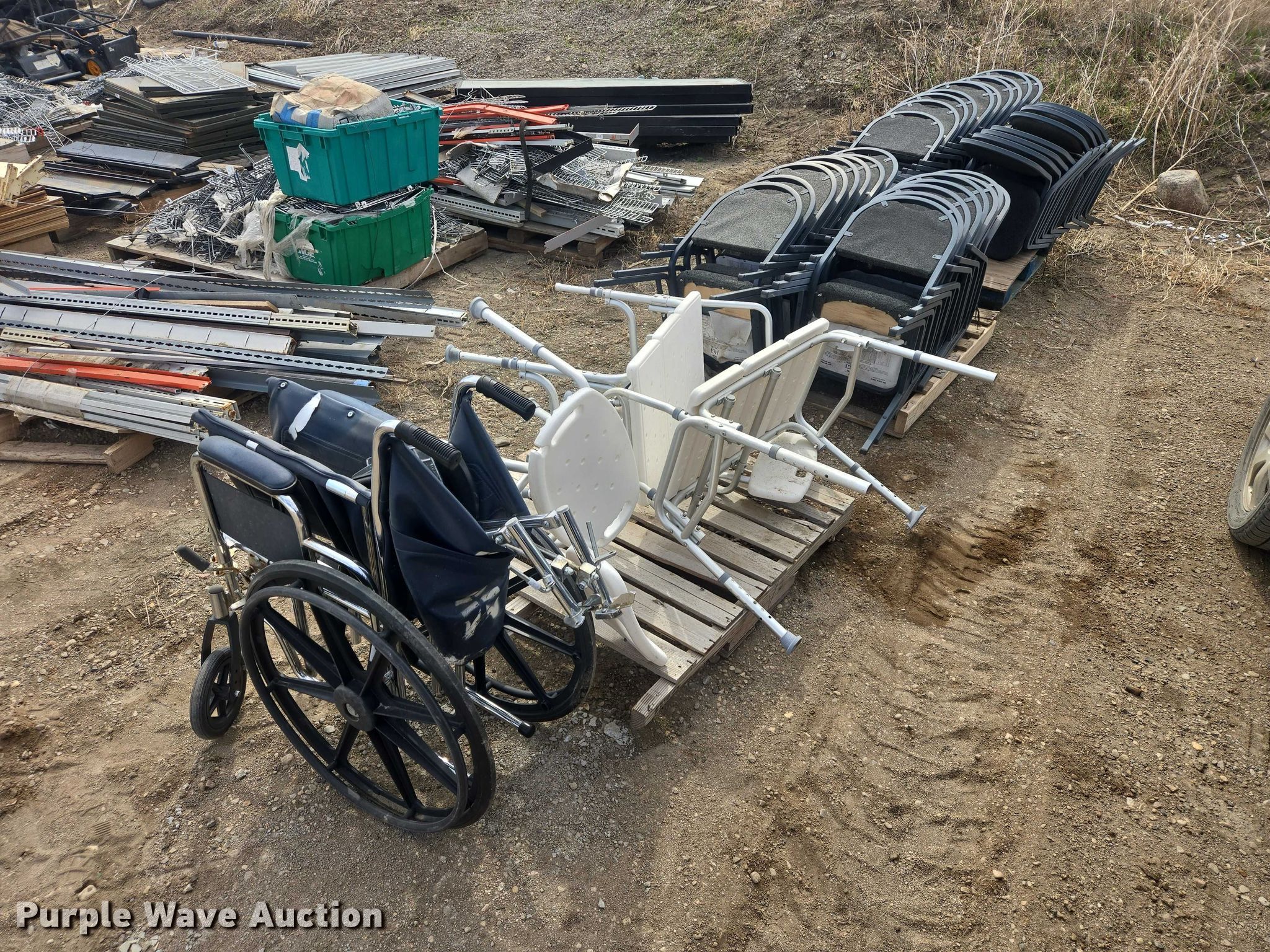 Purple Wave is selling a used Furniture in South Dakota. This item is a Assorted chairs with the following: Bath chairs, Wheel chair, Stackable chairs