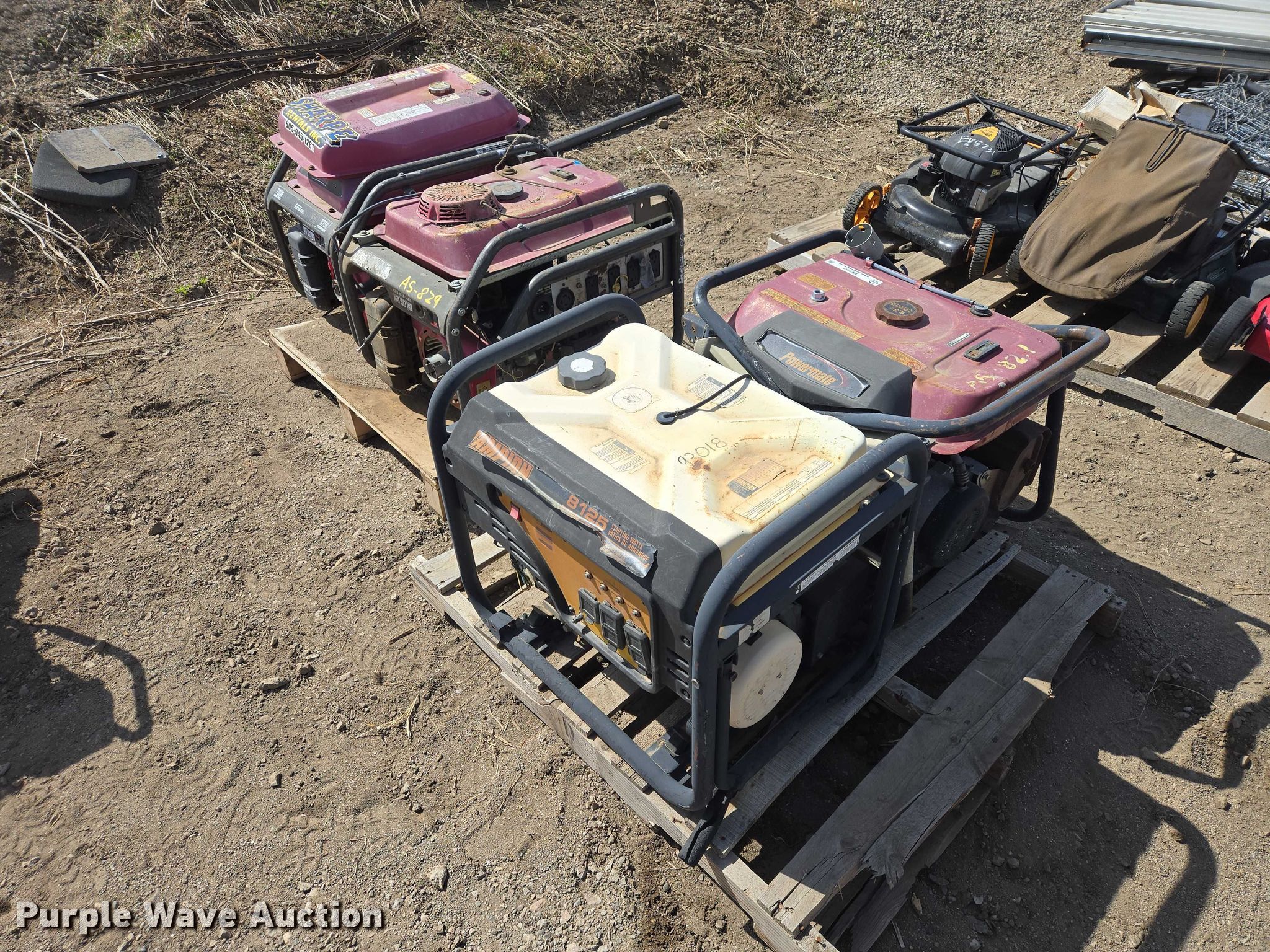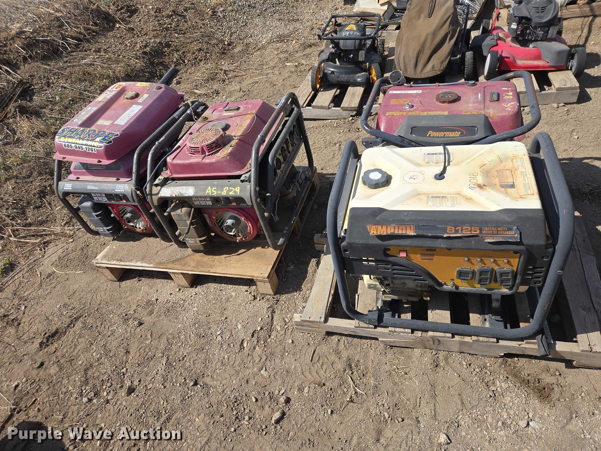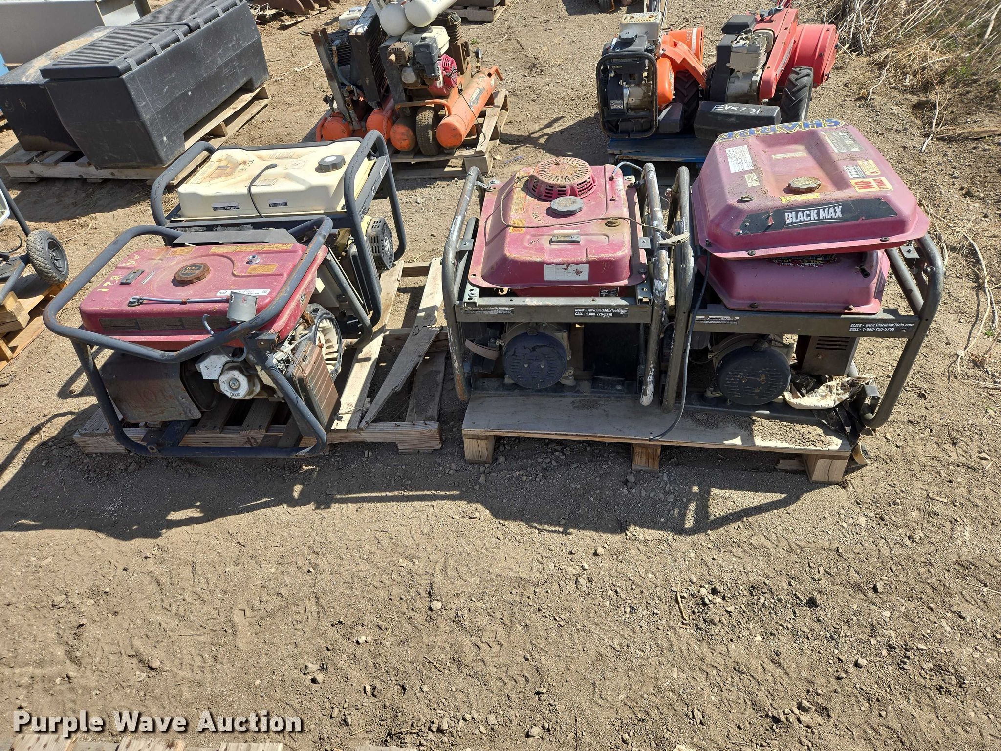 Purple Wave is selling a used Generator Set in South Dakota. This item is a (4) generators with the following: Champion 8125, Powermate, Black Max and more, Unknown operating condition